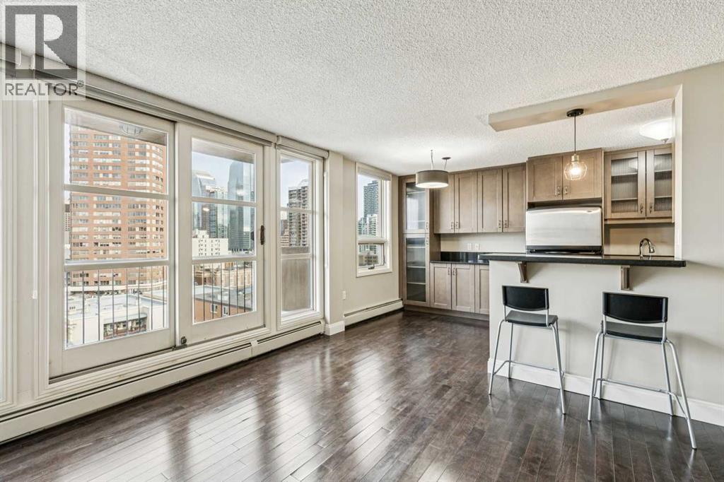 Located in the heart of the Beltline, this 2 bedroom condo at Centro 733 blends smart design with everyday livability. An open floor plan creates an effortless flow for everyday living while hardwood flooring adds warmth and durability for a low-maintenance lifestyle. Floor-to-ceiling windows frame sweeping views of downtown and the Calgary Tower, (brand new roller blinds) drawing natural light deep into the space and creating a dynamic backdrop from morning through evening. An inviting living area encourages relaxed evenings or lively gatherings, with patio doors extending the experience outdoors for a seamless indoor and outdoor lifestyle. A covered balcony becomes an extension of the home, offering space for summer barbeques while overlooking green space, city skylines and iconic tower views that elevate every moment. A dedicated dining area is well positioned for entertaining, with clear sightlines that support easy conversation and connection. A sleek, modern kitchen inspires culinary creativity with Amana stainless steel appliances, full-height cabinetry for efficient storage, stone countertops for everyday durability and a breakfast bar that invites casual meals or social interaction. 2 spacious bedrooms provide flexibility for rest, guests or a home office, while a modern 3-piece bathroom delivers clean lines, new shower and practical comfort. Centro 733 is a concrete building known for its quiet atmosphere and endless amenities including a well-equipped fitness room and a large party room with a full kitchen, ideal for hosting without sacrificing private space. Low condo fees enhance everyday value by including electricity, heat and water. A premier setting directly across from the historic Lougheed House places green space and heritage charm at your doorstep, while vibrant 17th Avenue sits just steps away with its nightlife, diverse boutiques, award-winning restaurants and cafés. Daily conveniences are equally close, with grocery stores, transit access, Me morial Park, the Elbow River pathways and the Talisman Centre all within easy reach, creating a walkable, connected lifestyle perfectly suited to professionals, downsizers or investors seeking function, location and long-term appeal. (31538766)