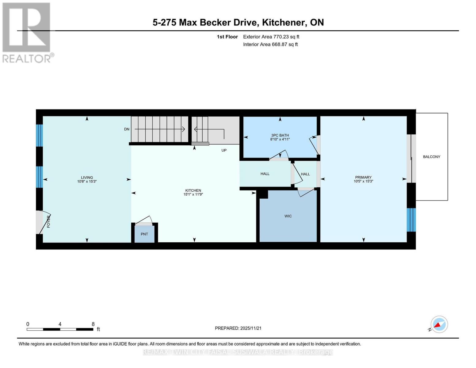 A BRIGHT, BOLD TOWNHOME THAT LIVES LIKE A HOUSE. #5-275 Max Becker Drive, Kitchener, with its brick exterior, sun-filled rooms, and smart split-level design, this Laurentian Hills townhome blends chic city styling with the practicality of true suburban living. From the moment you arrive, this charming brick-front townhome stands out with its timeless architecture, private front entry, and convenient garage with inside access - a rare advantage in this popular neighbourhood. Step inside and instantly feel the warmth. Sunlight pours through the oversized windows, enhancing the airy feel created by 9ft ceilings, crisp neutral tones, and laminate flooring. The open-concept living room is the heart of the home. At the center of the home sits a kitchen designed for real life-stylish and highly functional. Featuring granite countertops, stainless steel appliances, and a massive 10-foot island with extended seating. Your main-level primary suite feels like its own private retreat, complete with a spacious walk-in closet and a 3-pc ensuite. Slide open the door and step out onto your private balcony, an ideal spot for morning coffee or unwinding at the end of the day. Upstairs, the thoughtful layout continues with 2 generously sized bedrooms, a versatile family room, and a well-appointed 4-pc bathroom -ideal for kids, guests, or a home office setup. Convenience is key, and the second-level laundry makes daily living feel seamless. This layout stands apart with its attached garage and interior access, offering both practicality and added storage. Outside your door, you're steps from everything-highway access, schools, parks, transit, gym, restaurants, shopping, and every essential amenity Laurentian Hills is known for. This is a community designed for connection and convenience. Photos are virtually staged. (41963343)