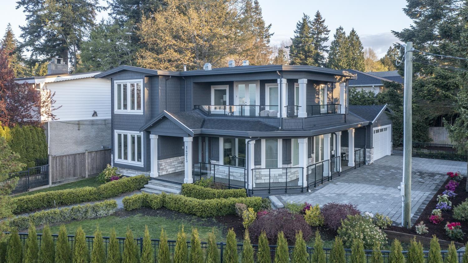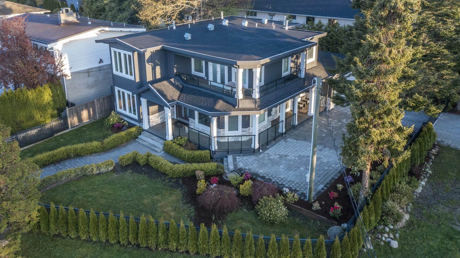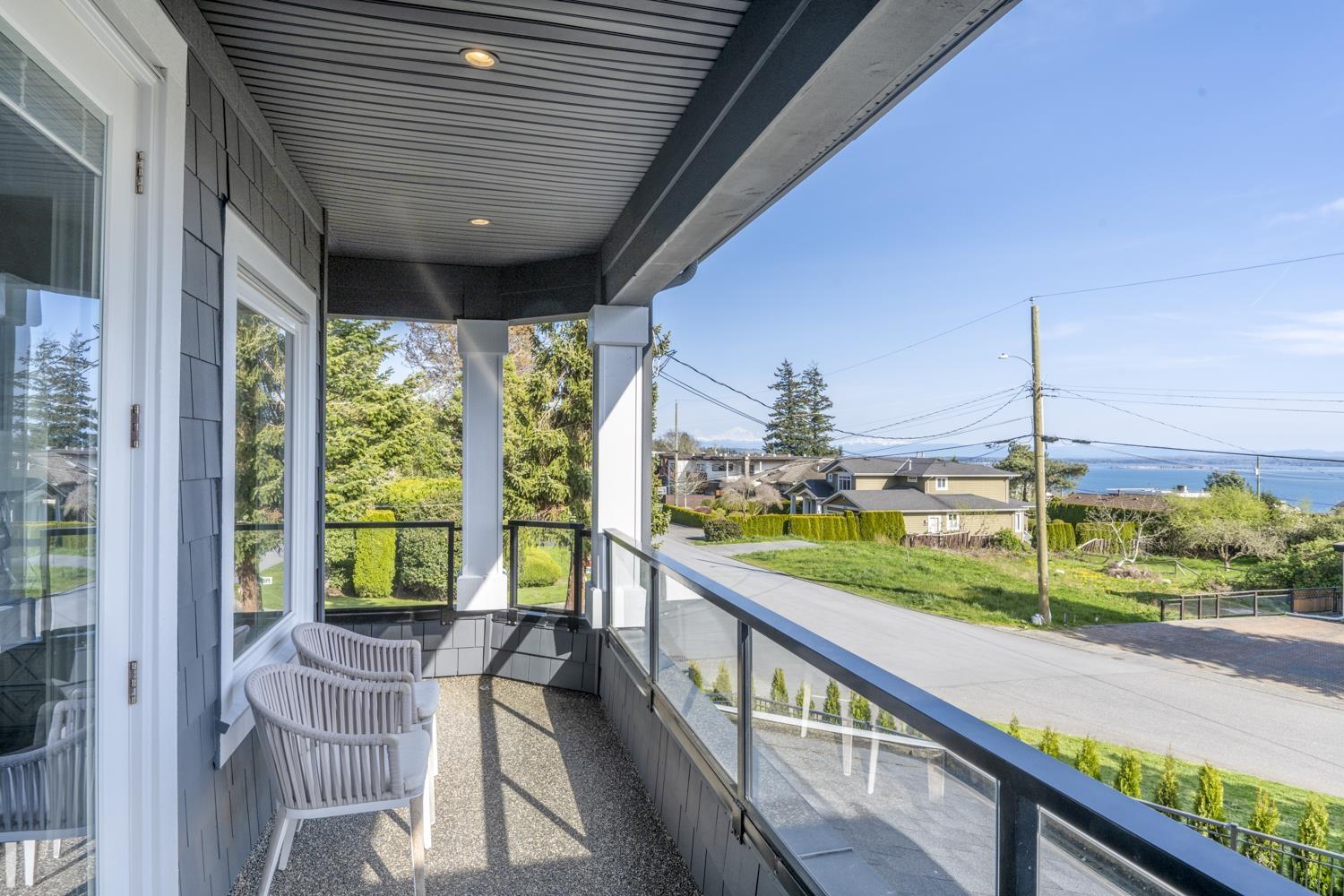 Welcome to this breathtaking Cape Cod inspired home situated in a quiet private neighborhood in White Rock! 5000 SF house with 6 bedrooms (includes 2 bedroom LEGAL SUITE) Large Office, Media Room, 3 Kitchens (including Wok Kitchen),7 bathrooms, Surrounded by beautiful trees, views of Ocean, Mount Baker and beyond. Bui1t in Entertainment Systems in Master, Living Room, Surveillance Camera System, automatic Blinds with Remotes, Air Conditioning, radiant Heat (3 levels) , Generator and Sprinkler system, auto gate, RV and boat parking. Endless Designer finishings, including hardwood and tile throughout. Semiahmoo Secondary Catchment. 5 minute drive to the Beach and is READY TO MOVE IN! (32340288)
