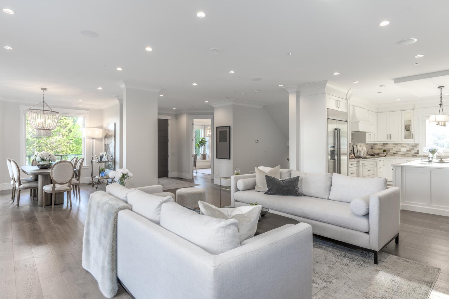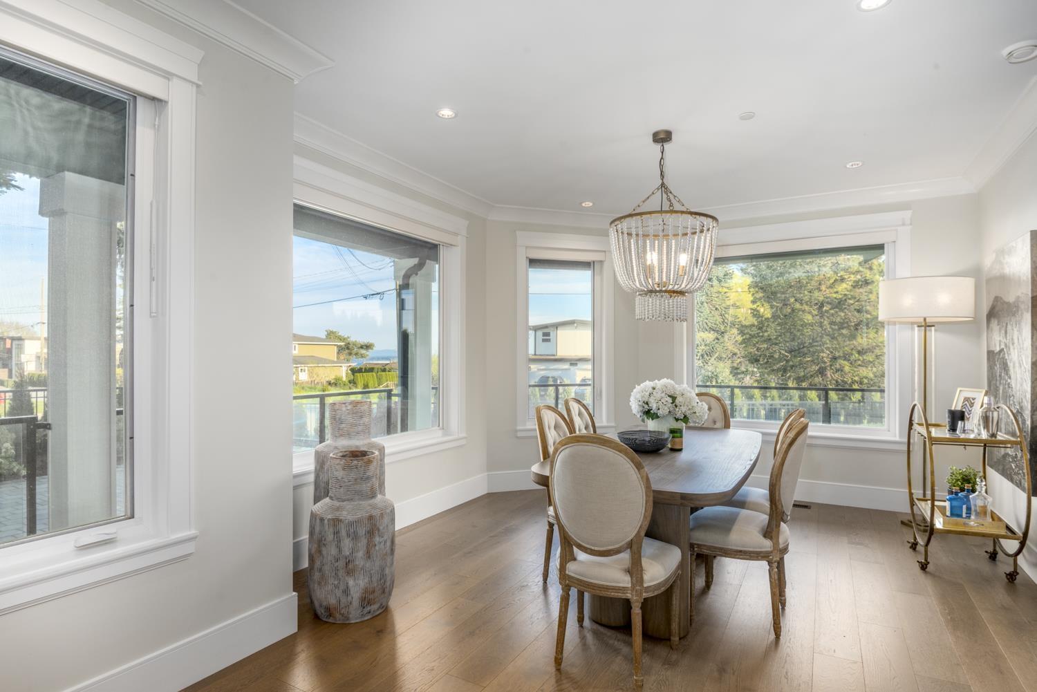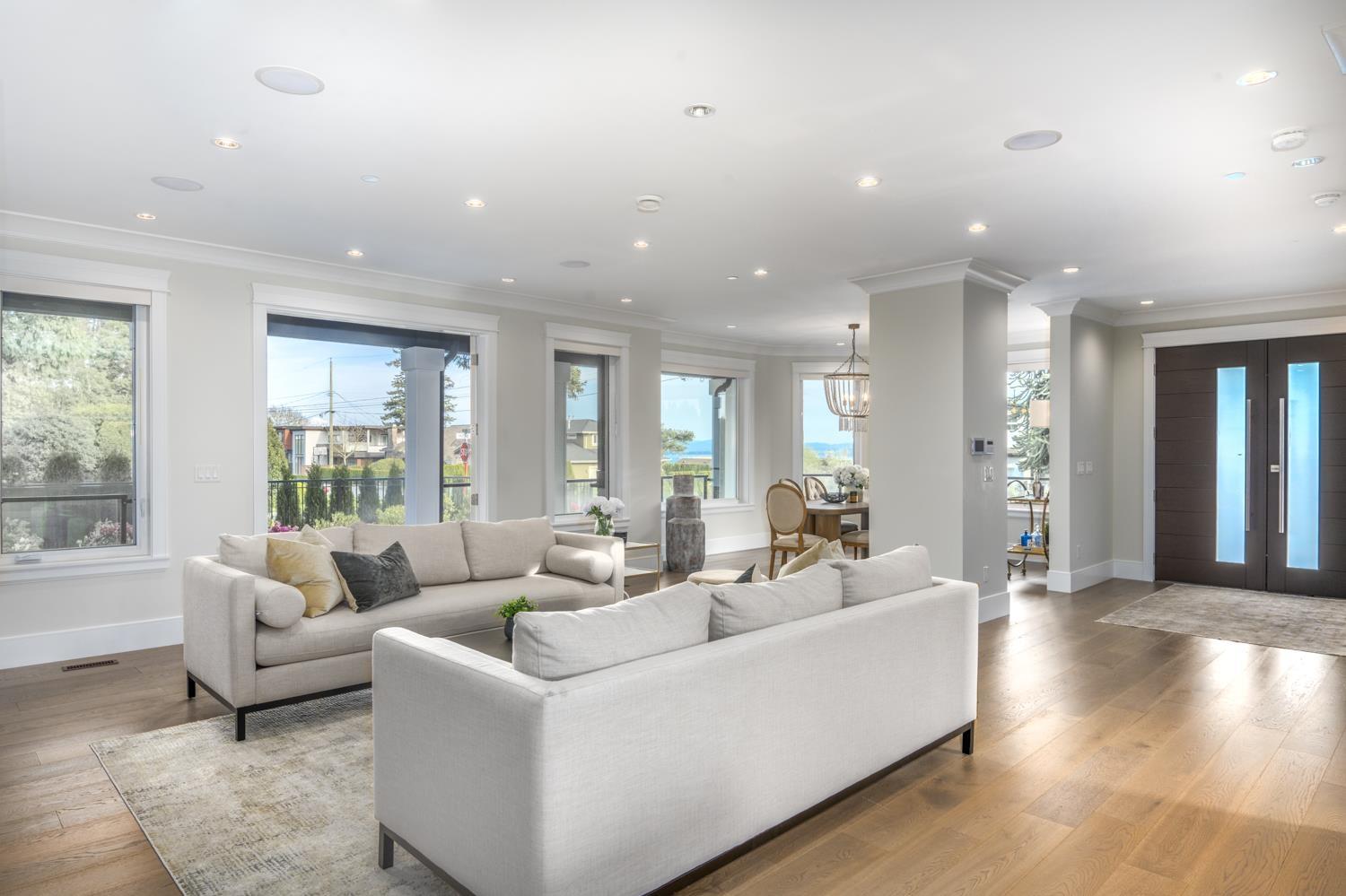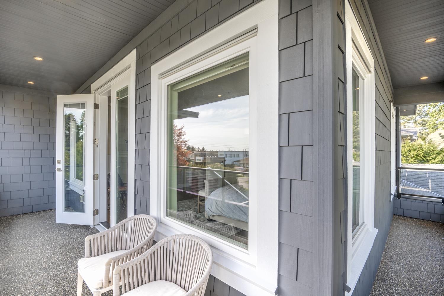 Welcome to this breathtaking Cape Cod inspired home situated in a quiet private neighborhood in White Rock! 5000 SF house with 6 bedrooms (includes 2 bedroom LEGAL SUITE) Large Office, Media Room, 3 Kitchens (including Wok Kitchen),7 bathrooms, Surrounded by beautiful trees, views of Ocean, Mount Baker and beyond. Bui1t in Entertainment Systems in Master, Living Room, Surveillance Camera System, automatic Blinds with Remotes, Air Conditioning, radiant Heat (3 levels) , Generator and Sprinkler system, auto gate, RV and boat parking. Endless Designer finishings, including hardwood and tile throughout. Semiahmoo Secondary Catchment. 5 minute drive to the Beach and is READY TO MOVE IN! (32340288)
