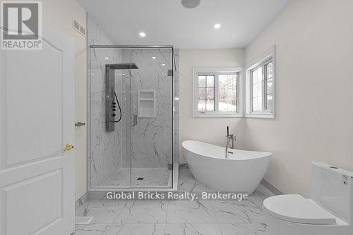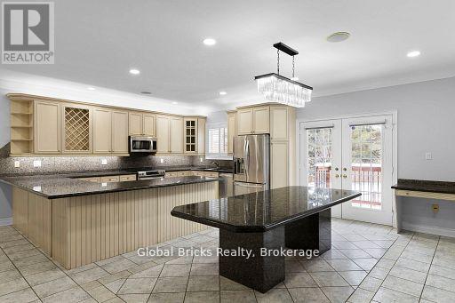 Welcome to one of Everett's finest custom-built estates, offering nearly 7,000 sq. ft. of fully finished living space on a private, professionally landscaped lot with mature trees, an resort-style pool, and a full inground sprinkler system. This exceptional bungalow features 8 bedrooms, 5 washrooms, 3 kitchens, expansive principal rooms, and premium finishes throughout.The main level includes multiple chef-inspired kitchens, a formal dining area, a spacious living room with gas fireplace and large picture windows, a private office with built-ins, and a convenient laundry room with 2-pc washroom and access to the triple car garage. The bedroom wing offers a king-sized primary suite with 6-pc ensuite, walk-in closet, sitting area, and private deck, plus three additional large bedrooms including a second bedroom with its own 4-pc ensuite.The fully finished lower level is ideal for multi-generational living with a complete 3-bedroom in-law suite featuring a separate entrance, full kitchen, living area, private washroom, and oversized windows. Additional lower-level spaces include a games room with fireplace, wet bar, pool table area, theatre/play room, and an extra full washroom.A standout feature is the custom detached workshop/garage with high ceilings, its own kitchen and bar, shop area, and a full upper loft suitable for guests or additional living space.Located on one of Everett's most desirable, quiet streets, this property offers a rare combination of size, functionality, and quality craftsmanship. (41964049)
