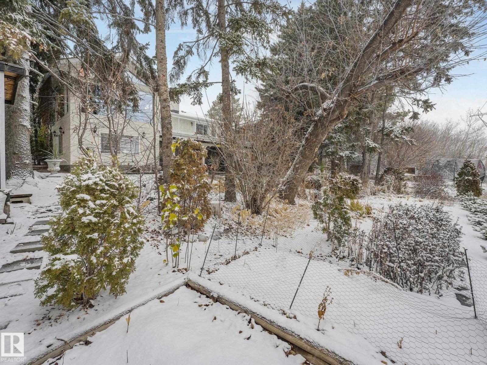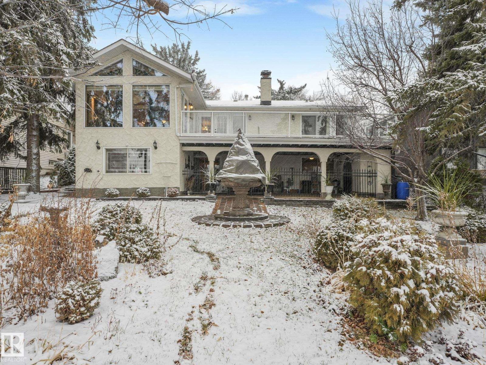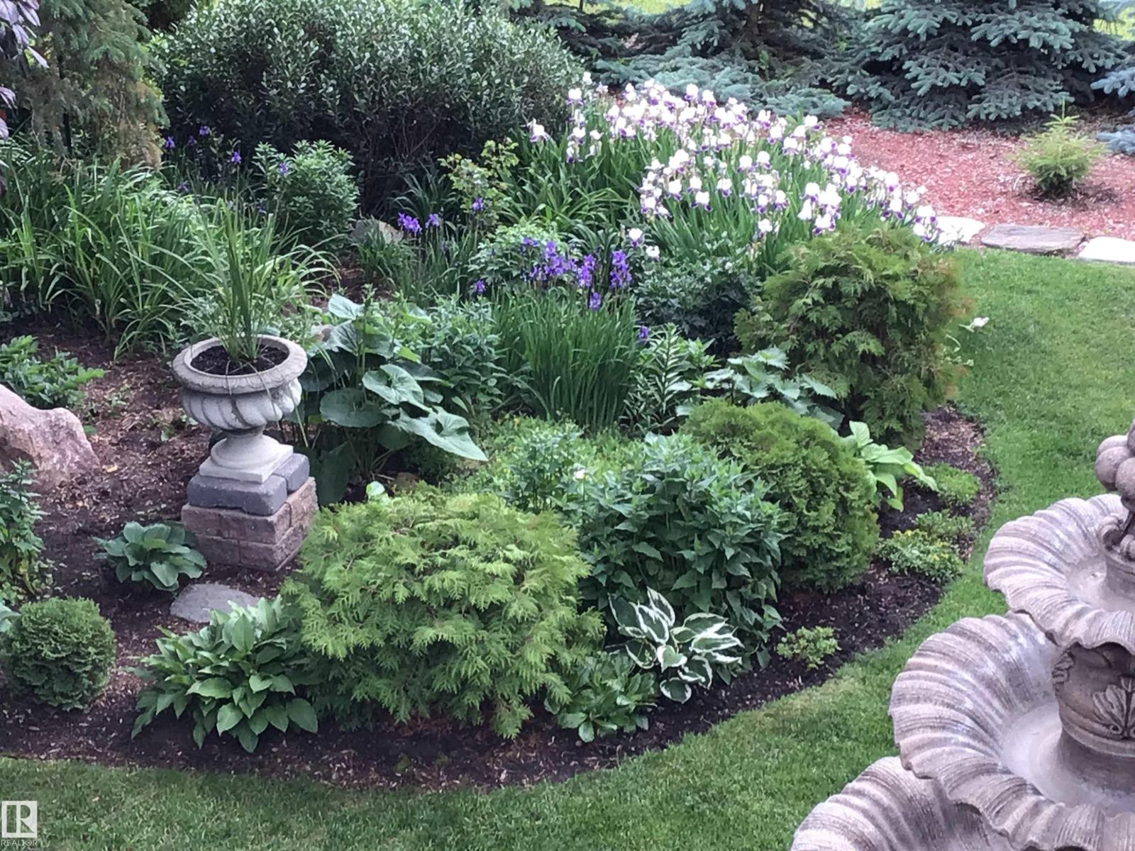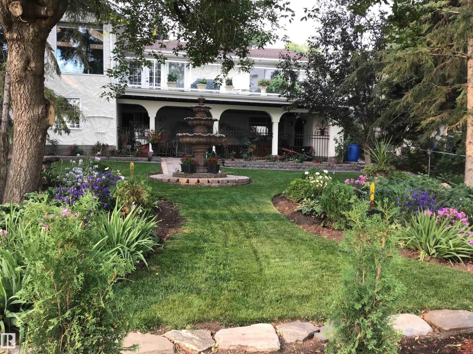 Welcome to The Gardens (formerly Grandin), a beautifully maintained walkout bungalow. The private courtyard is the ideal spot for a morning coffee, creating a lovely entrance to the home. The living room boasts a fireplace and leads into the dining room. The kitchen features a vaulted ceiling and granite countertops. The bonus room has 4 skylights that brighten the room even on cloudy days and doors onto the deck. The primary bedroom has two closets, 4pc ensuite, and a patio door onto the deck. Two additional bedrooms and 4pc bathroom complete the main floor. Downstairs has finished walls, 3pc bathroom, a laundry area, a family room, and room to easily create 1 or 2 additional bedrooms. The walkout leads to a patio and a large workshop that any handyman would love. The south-facing landscaped yard is lush and colorful, featuring a large fountain, numerous trees, and privacy.Recent updates include newer interior and exterior paint, central A/C. Easy access to shopping, St. Albert Trail and so much more. (33730434)