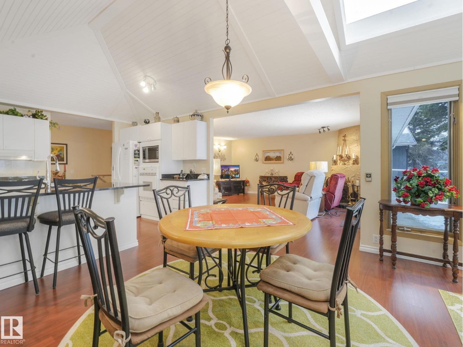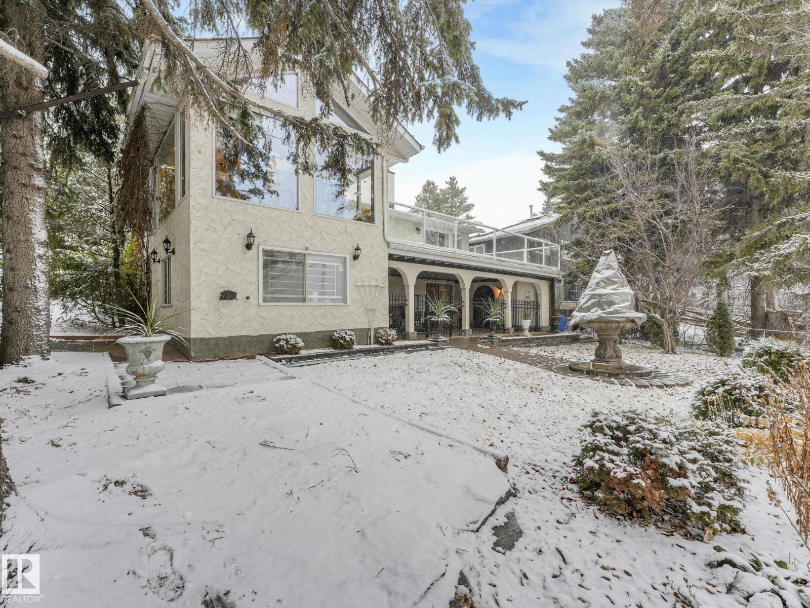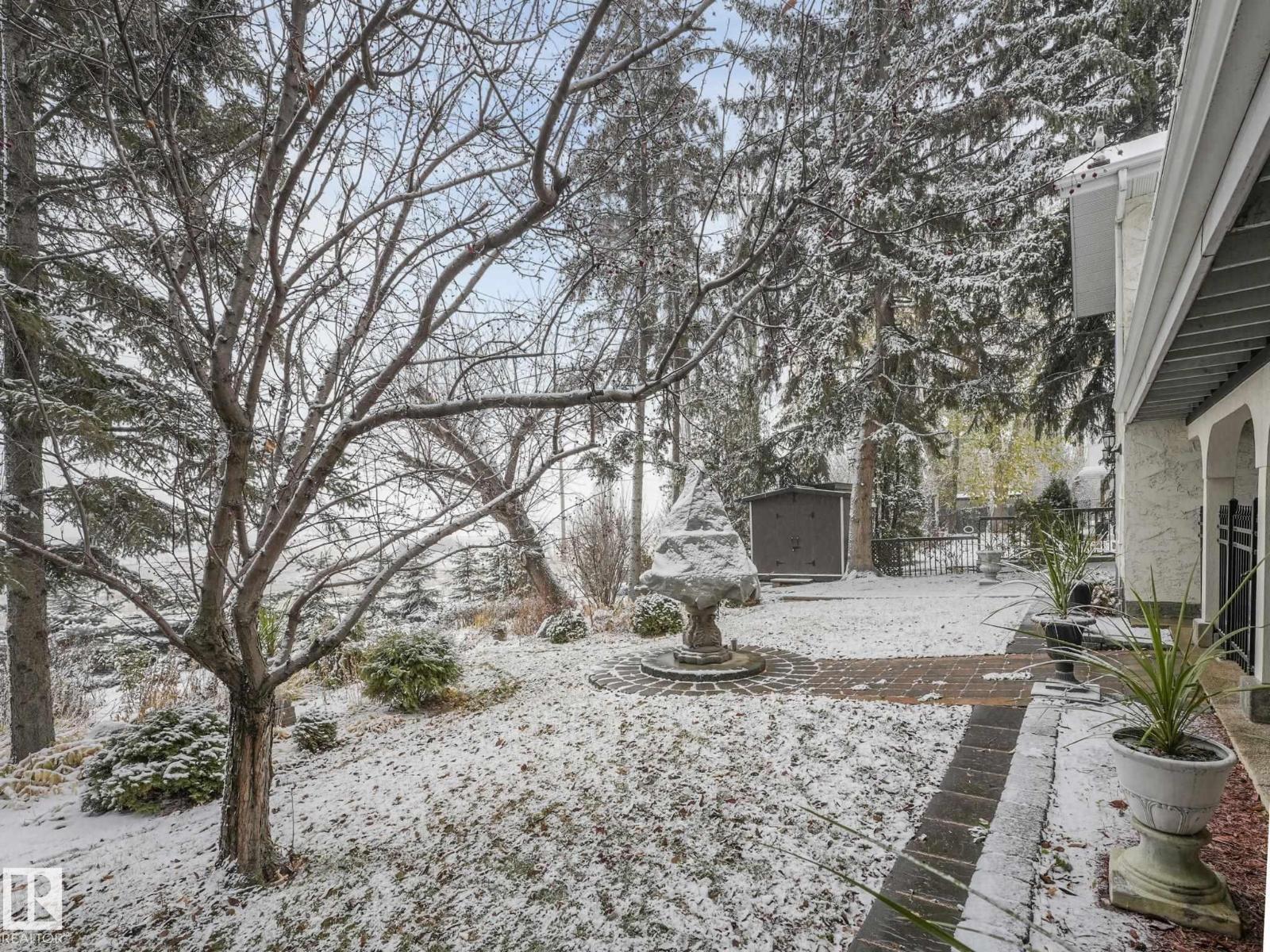 Welcome to The Gardens (formerly Grandin), a beautifully maintained walkout bungalow. The private courtyard is the ideal spot for a morning coffee, creating a lovely entrance to the home. The living room boasts a fireplace and leads into the dining room. The kitchen features a vaulted ceiling and granite countertops. The bonus room has 4 skylights that brighten the room even on cloudy days and doors onto the deck. The primary bedroom has two closets, 4pc ensuite, and a patio door onto the deck. Two additional bedrooms and 4pc bathroom complete the main floor. Downstairs has finished walls, 3pc bathroom, a laundry area, a family room, and room to easily create 1 or 2 additional bedrooms. The walkout leads to a patio and a large workshop that any handyman would love. The south-facing landscaped yard is lush and colorful, featuring a large fountain, numerous trees, and privacy.Recent updates include newer interior and exterior paint, central A/C. Easy access to shopping, St. Albert Trail and so much more. (33730434)