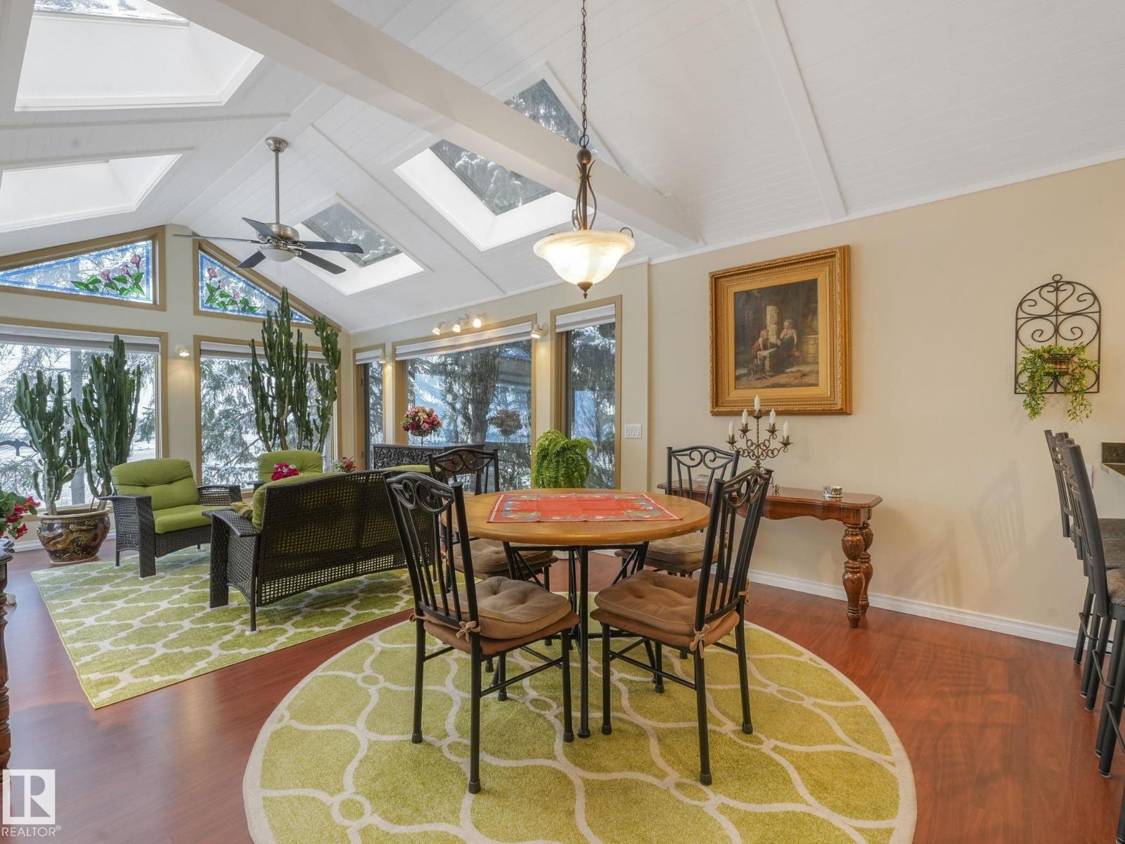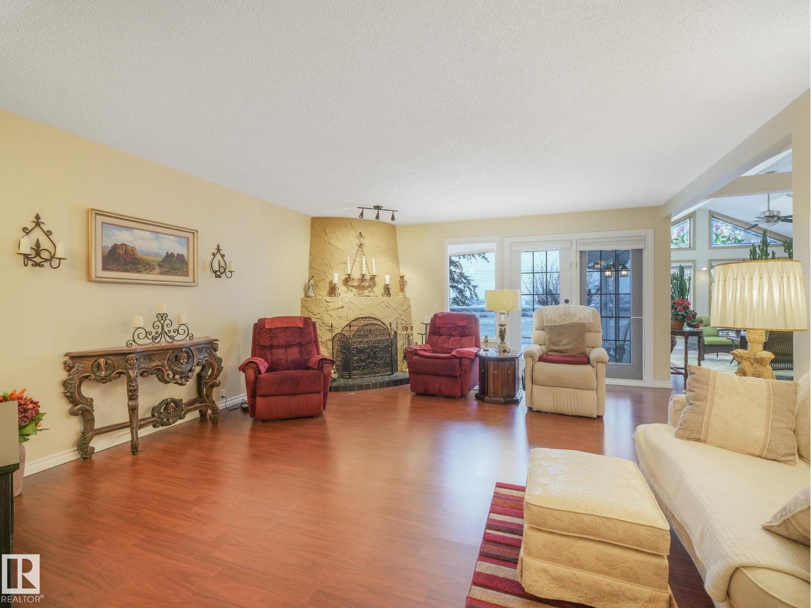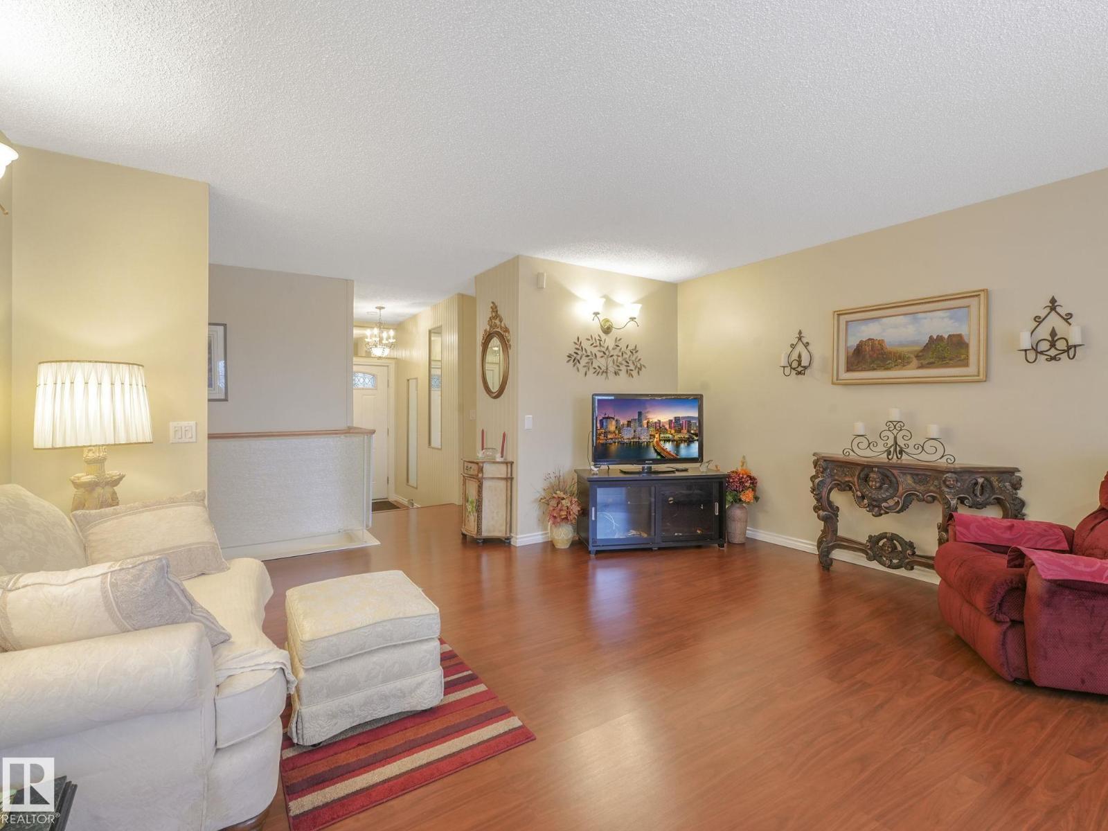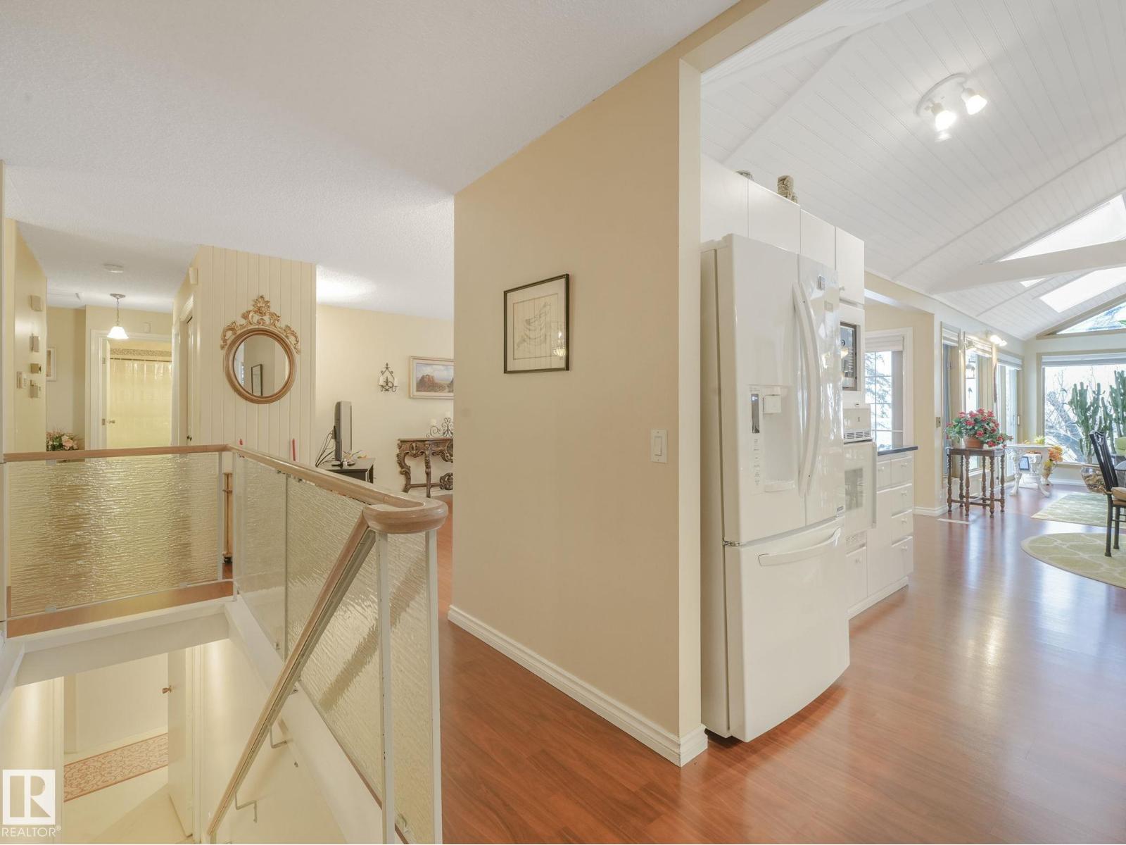 Welcome to The Gardens (formerly Grandin), a beautifully maintained walkout bungalow. The private courtyard is the ideal spot for a morning coffee, creating a lovely entrance to the home. The living room boasts a fireplace and leads into the dining room. The kitchen features a vaulted ceiling and granite countertops. The bonus room has 4 skylights that brighten the room even on cloudy days and doors onto the deck. The primary bedroom has two closets, 4pc ensuite, and a patio door onto the deck. Two additional bedrooms and 4pc bathroom complete the main floor. Downstairs has finished walls, 3pc bathroom, a laundry area, a family room, and room to easily create 1 or 2 additional bedrooms. The walkout leads to a patio and a large workshop that any handyman would love. The south-facing landscaped yard is lush and colorful, featuring a large fountain, numerous trees, and privacy.Recent updates include newer interior and exterior paint, central A/C. Easy access to shopping, St. Albert Trail and so much more. (33730434)
