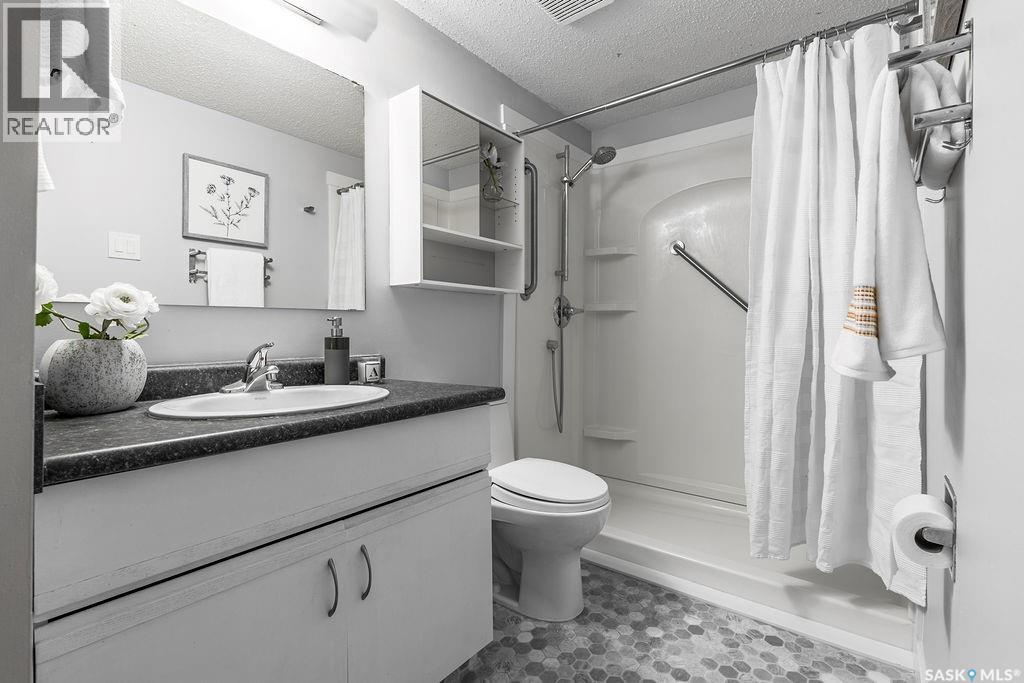 Welcome to Unit 107 at 209A Creek Place — a bright, sunny main-floor condo that checks all the right boxes for comfort and convenience. This spacious 936 sq. ft. unit offers two generously sized bedrooms and two bathrooms, making it ideal for first-time buyers, downsizers, or anyone who loves a smart, functional layout. The large living room is warm and inviting, featuring an electric fireplace and direct access to a private, oversized balcony (with outdoor storage)—perfect for morning coffee or relaxing at the end of the day. The kitchen is roomy and functional and opens to a large dining area. The in-suite laundry within the unit's huge storage room makes condo living easy and practical. The building is well maintained and thoughtfully designed, with an easy-access parking stall located close to an entrance plus plenty of visitor parking for guests. There is also a large amenities room for your use. Set in the neighbourhood of Lawson Heights, you’ll love being close to it all—grocery stores, restaurants, Lawson Heights Mall, schools, dental and medical services, and quick access to the river and Meewasin trails for walking, biking, or simply enjoying the outdoors. Bright, comfortable, and incredibly well located—this is main-floor condo living done right. (29287134)