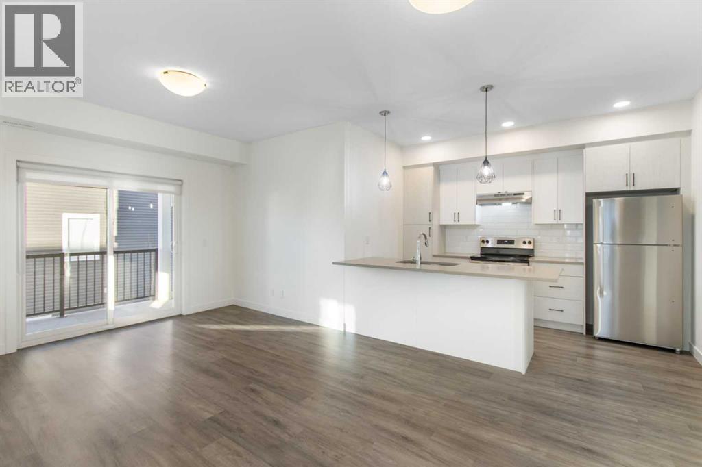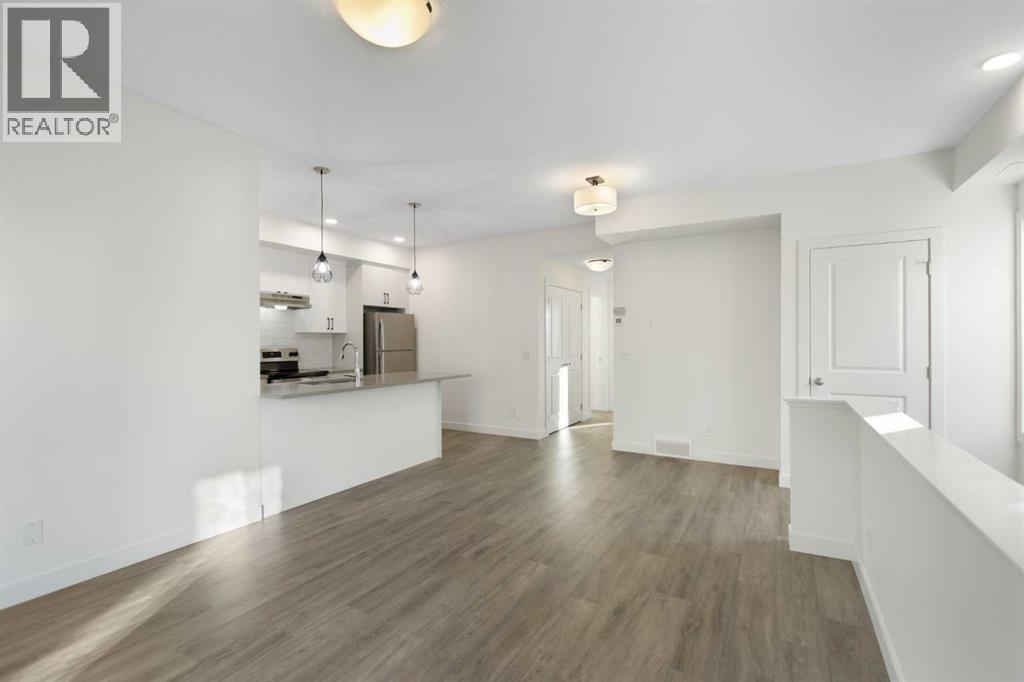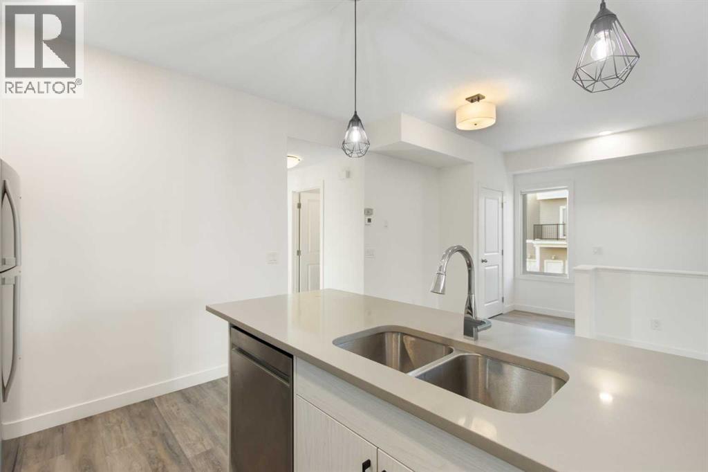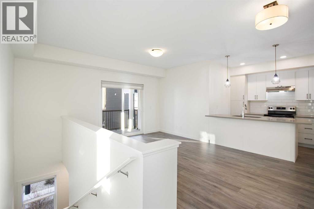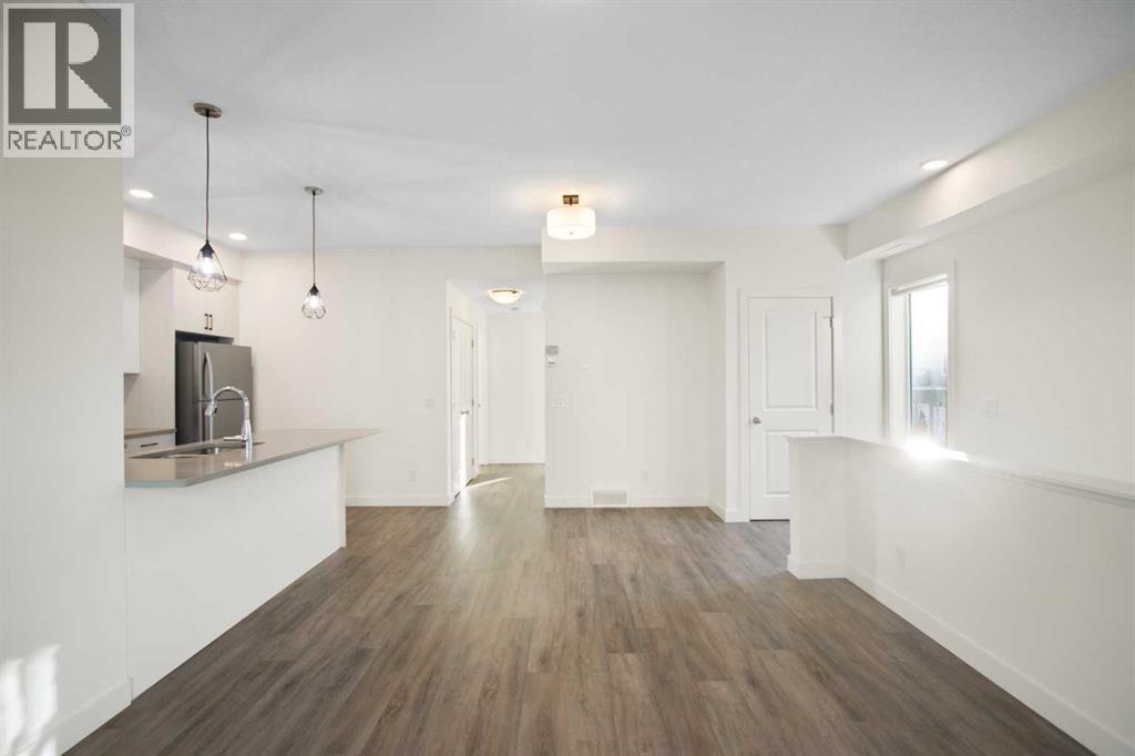 2 Bedroom 2 Bath END unit townhouse with a garage that offers the perfect blend of style and function, with most of the layout conveniently situated on a single level. Step inside and up 1 flight of stairs to the main floor and you will discover an open-concept living area with and a fully equipped kitchen boasting quartz countertops, soft-close drawers, and stylish two-tone cabinets highlighted by pendant lighting. An adjacent, flexible space is perfect for a spacious dining area or a home office. This home has two large bedrooms and two full bathrooms. The primary bedroom features a massive walk-in closet and a 4-piece ensuite. A spacious laundry room adds to the convenience. This unique floor plan is designed to feel like a modern apartment but with the added benefits of a main floor storage/flex area and direct access to an oversized, extended single-car garage.This home is perfectly situated to offer the best of both convenience and community. It's located right next to a future school site, with transit options directly at your doorstep for effortless commuting. Enjoy a short two-minute walk to Bow Valley High School, and a quick five-minute trip to the Spray Lakes Sports Centre for all your recreational needs. For bigger city amenities, you're only 20 minutes from South Calgary, and the mountains are within easy reach, with Canmore just a 40-minute drive away. (31540079)