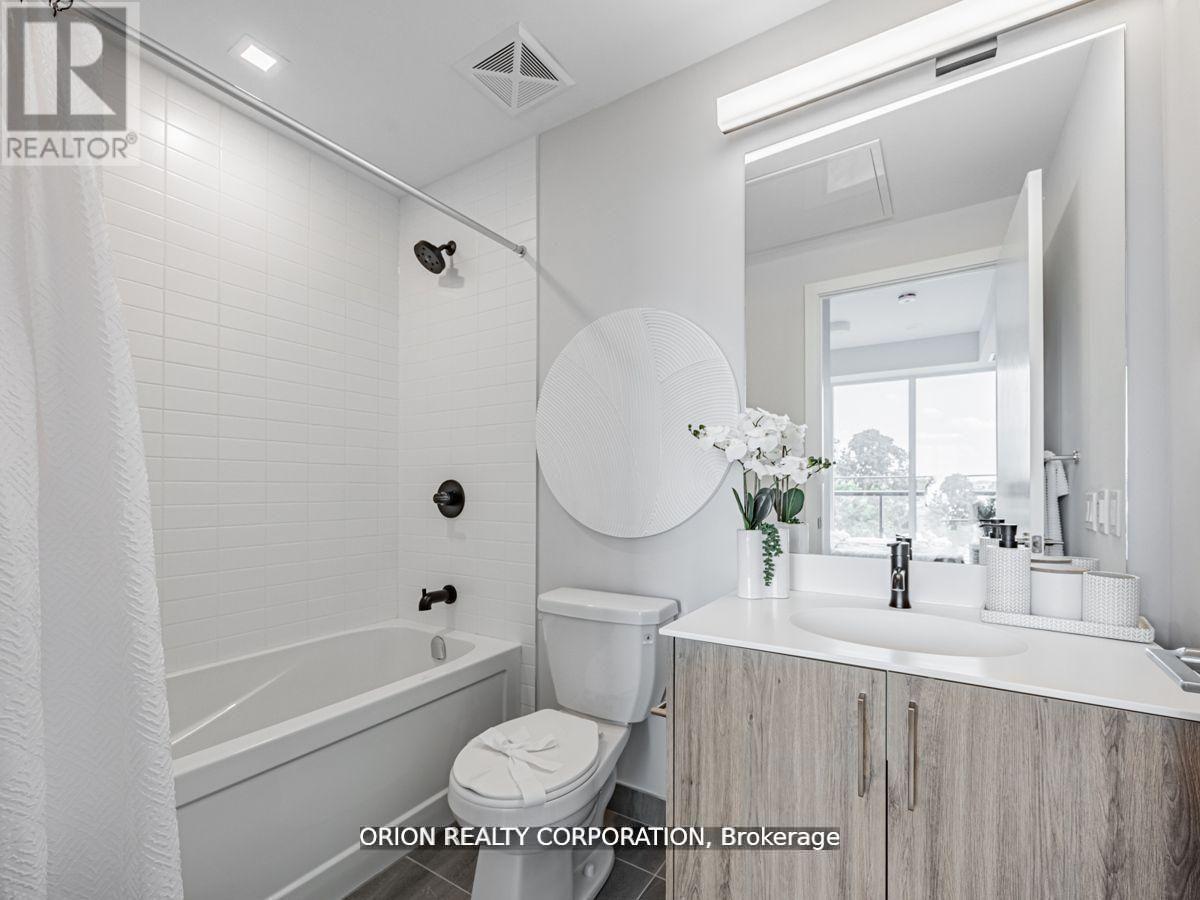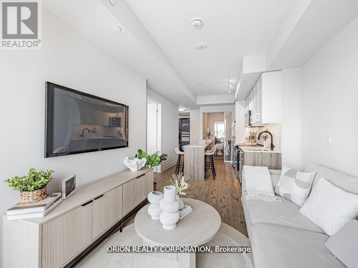 Welcome to the stunning "Colborne" suite, at Station No 3 condos in the heart of downtown Whitby.This open concept beauty offers 2-bedrooms, 2 full washrooms with soaring 10' smooth ceilings and panoramic views from the large interior windows and outdoor terrace. Do not miss your opportunity to own in this brand new boutique building by award-winning builder Brookfield Residential. Take advantage of over $100,000 in savings now that the building is complete & registered. Immediate or flexible closings available. 1 parking & 1 locker included.Enjoy beautiful finishes, including kitchen island with waterfall edge, quartz countertops, soft-close cabinetry, ceramic backsplash, upgraded black Delta faucets, wide-plank laminate flooring & Smart Home System. Incredible location, with easy access to highways 410, 407 & 412. Minutes to Whitby Go Station, Lake Ontario & many parks. Steps to several restaurants, coffee shops & boutique shopping. State of the art building amenities include, gym, yoga studio, 5th floor party room with outdoor terrace, BBQ & fire pit, 3rd floor south facing courtyard with additional BBQ's & loungers, co-work space, pet spa, concierge & guest suite. (41965036)