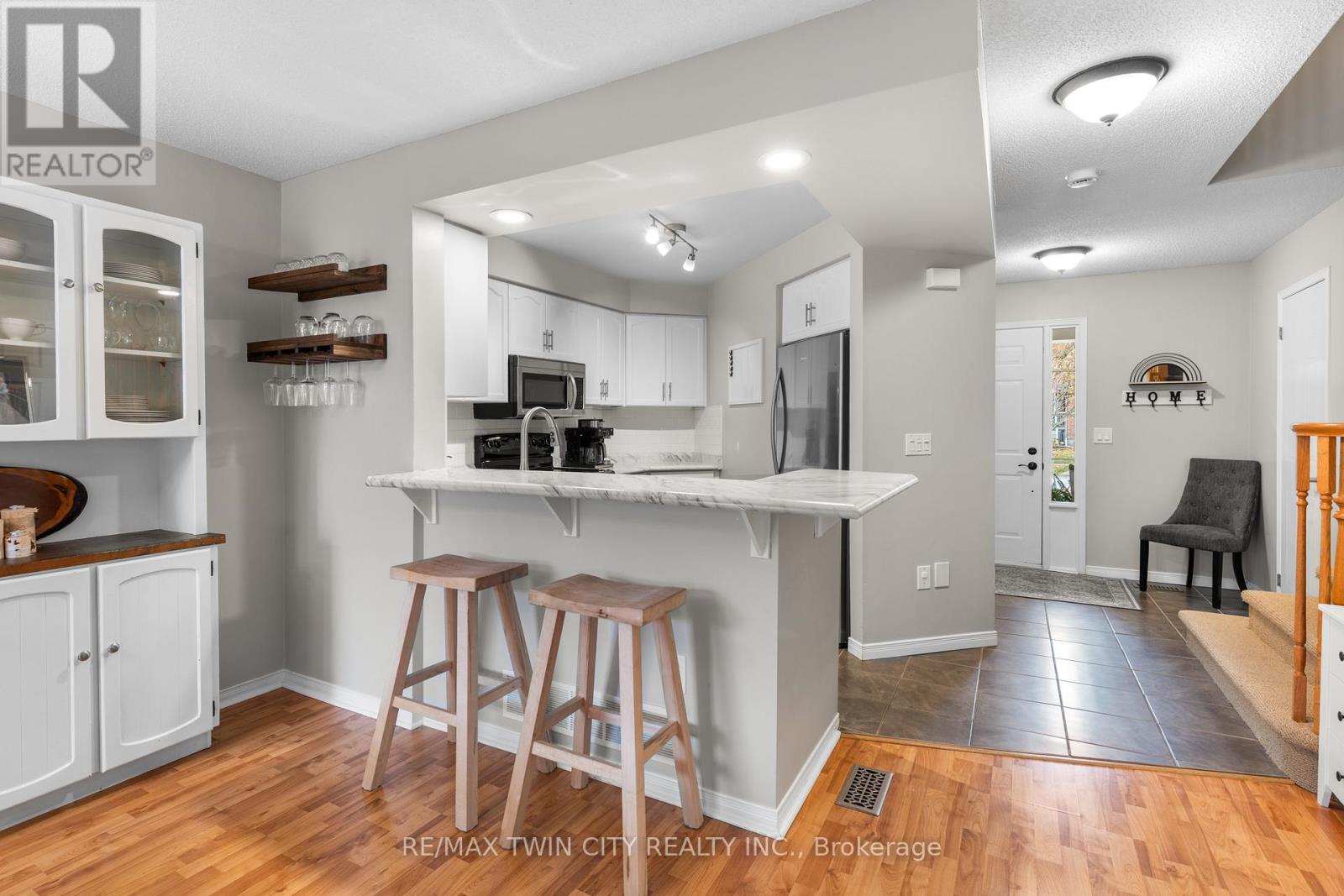 Welcome to Townline Estates! This well-maintained freehold townhome offers an ideal blend of comfort, functionality, and location. Featuring 3 bedrooms and 2 bathrooms, this home is perfect for families, professionals, or first-time buyers. The open-concept main floor is bright and inviting with a carpet-free layout, highlighted by a cozy electric fireplace in the family room. The modern kitchen boasts stainless steel appliances, a breakfast bar, and a built-in microwave, making it ideal for both everyday living and entertaining. Convenient garage access from the front foyer adds everyday practicality. Upstairs, the spacious primary bedroom offers ample room to unwind, while the cheater en-suite provides added convenience. Step outside through French doors to a private, fully fenced backyard featuring a deck with pergola-perfect for summer entertaining. Additional exterior highlights include an attached garage, private double driveway, and stamped concrete accents. The unfinished basement offers excellent future potential and includes rough-ins for a bathroom and central vacuum. Notable updates include: Fridge (3 yrs), Furnace (4 yrs), A/C (3 yrs), Owned water softener (6 yrs) and Roof (approx. 8 yrs)Ideally located minutes to Highway 401 access via Townline Road, and close to amenities, schools, and shopping. A fantastic opportunity to own in a desirable neighbourhood-move-in ready with room to grow. (41965237)