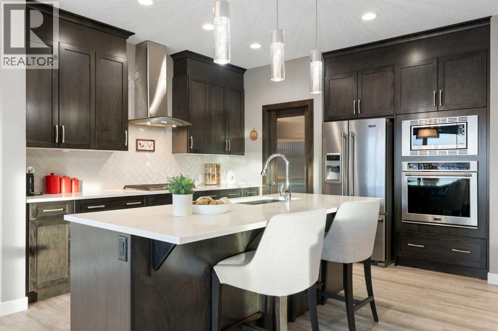 ** Open House: Saturday, Feb. 28th | 1:30 to 3:30 pm ** Backing onto peaceful greenspace and wetlands, this beautifully maintained two-storey home in Fireside offers a rare combination of privacy, functionality, and thoughtful upgrades throughout. With a fully finished walkout basement and partial mountain views, this home is designed to enjoy every season.The main level features luxury vinyl plank flooring, a bright & open layout anchored by a well-appointed kitchen with Maytag appliances, including a gas range, built-in oven, and fridge with ice and water. Six pot drawers, generous cabinetry, and a seamless flow to the upper deck make this space ideal for everyday living and entertaining. Step outside to the expansive 27' upper deck finished with durable Duradek flooring, privacy walls, a deck cover with sun roller blind, and a natural gas BBQ hookup, all overlooking tranquil greenspace.Upstairs, the thoughtful layout truly shines with four generously sized bedrooms, a large bonus room, and convenient upper-level laundry, making this home ideal for a growing or multi-generational family. The primary retreat offers a thoughtfully designed ensuite with double sinks, walk-in closet, and a deep soaker tub, creating a calm space to unwind at the end of the day. Additional bedrooms are well proportioned and versatile for kids, guests, or home offices, while the bonus room provides the perfect hub for movie nights, play space, or a second living area.The fully finished walkout basement extends the living space and truly sets this home apart with an extra bedroom and full bathroom. A Dry-Core subfloor keeps the basement warm and comfortable year-round, while the walkout leads to a beautiful sunroom designed for relaxation. With three sliding patio doors, this enclosed space creates a peaceful, wind- and bug-free environment, perfect for enjoying the hot tub or unwinding while taking in wetland views.The backyard has been professionally levelled with a retaining wa ll, is fully fenced with solar lighting, and backs directly onto green space, offering privacy and a strong connection to nature. Additional highlights include central air conditioning, built-in cabinetry in the garage, vessel sink in the powder room, and negotiable items such as a Broil King natural gas BBQ and additional fridges.Located in the family-friendly community of Fireside, close to schools, parks, pathways, and amenities, this home delivers a rare blend of lifestyle, comfort, and setting. (31540277)