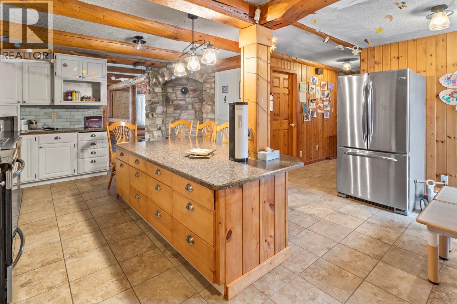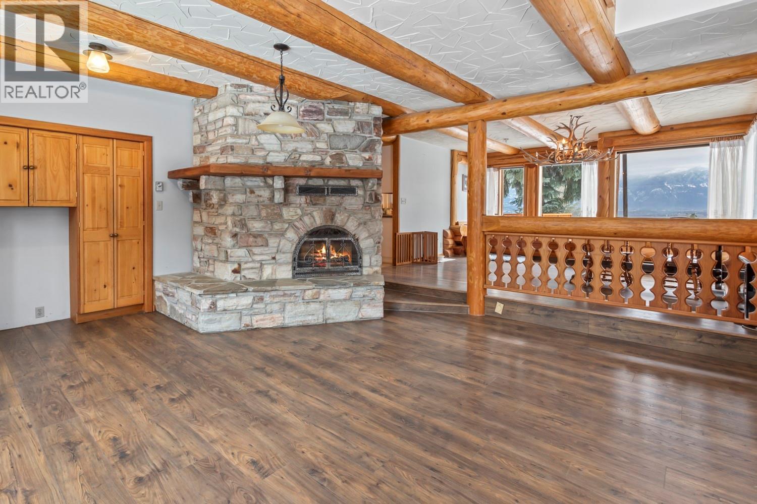 Set on 2.78 acres in sought-after West Creston, this spacious 2-storey home with full basement offers privacy, versatility, and sweeping valley and mountain views. With 5 bedrooms and 5 bathrooms, it’s an ideal fit for families, multi-generational living, or those craving room to spread out. Four bedrooms are located on the upper level for a functional family layout, while an additional bedroom on the main floor is perfect for guests, a home office, or extended family. Warm timber accents, exposed beams, and custom woodwork create a timeless lodge-inspired atmosphere. The main living and dining areas are anchored by a striking stone fireplace and large windows that frame the surrounding scenery. The kitchen offers ample cabinetry, a large central island, and easy flow to the dining area. Downstairs, the full basement adds exceptional flexibility with multiple bonus rooms for recreation, gym, hobbies, storage, or media space, plus a convenient summer kitchen—ideal for entertaining or extended family use. Adding further value is a detached shop-style building with parking space and a loft level above, offering great options for a workshop, studio, or extra storage. Outside, enjoy mature trees, open space for gardens or hobbies, and plenty of room to relax, play, or expand your rural lifestyle—without giving up the convenience of town close by. Rare West Creston acreage with views, character, and flexibility. (39633454)