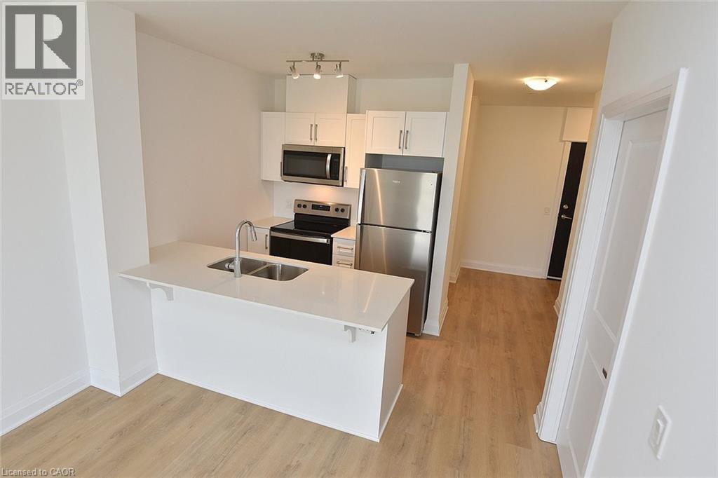 Welcome to PEAK Condos by Royal Living Development, a brand new condo located on the Upper Stoney Creek Mountain, blending modern living with nature directly across from the Eramosa Karst Conservation Area. This premium top-floor unit offers unobstructed views and a thoughtfully designed 1 Bedroom + Den layout, featuring 9 ft ceilings and a range of upgrades including quartz countertops, an undermount sink, pot lights, vinyl plank flooring, and in-suite laundry. Enjoy a modern kitchen with a stainless steel appliance package, a private balcony, and a bedroom with walk-in closet. Includes owned underground parking and a storage locker. The building offers outstanding amenities, including a rooftop terrace with BBQs, a fully equipped fitness room, a party room, bicycle storage, and landscaped green spaces. With shopping, parks, schools, restaurants, transit, and quick highway access all nearby, this move-in-ready condo is perfect for downsizers and professionals seeking a vibrant, low-maintenance lifestyle. (70059779)