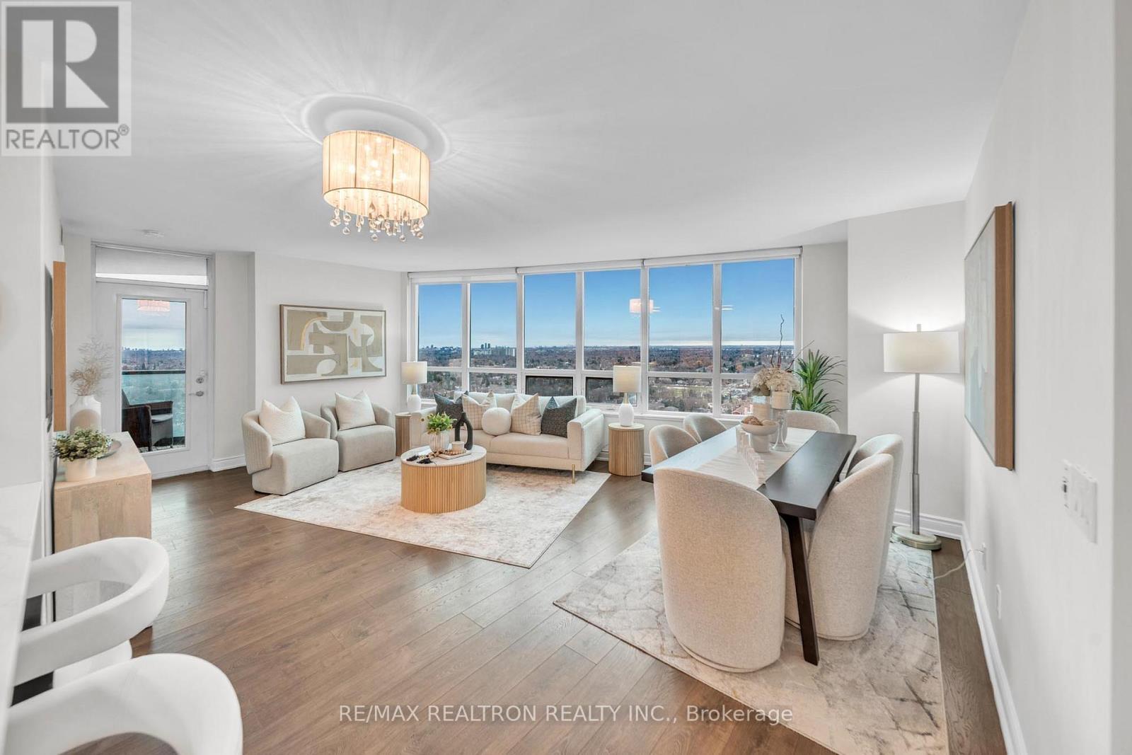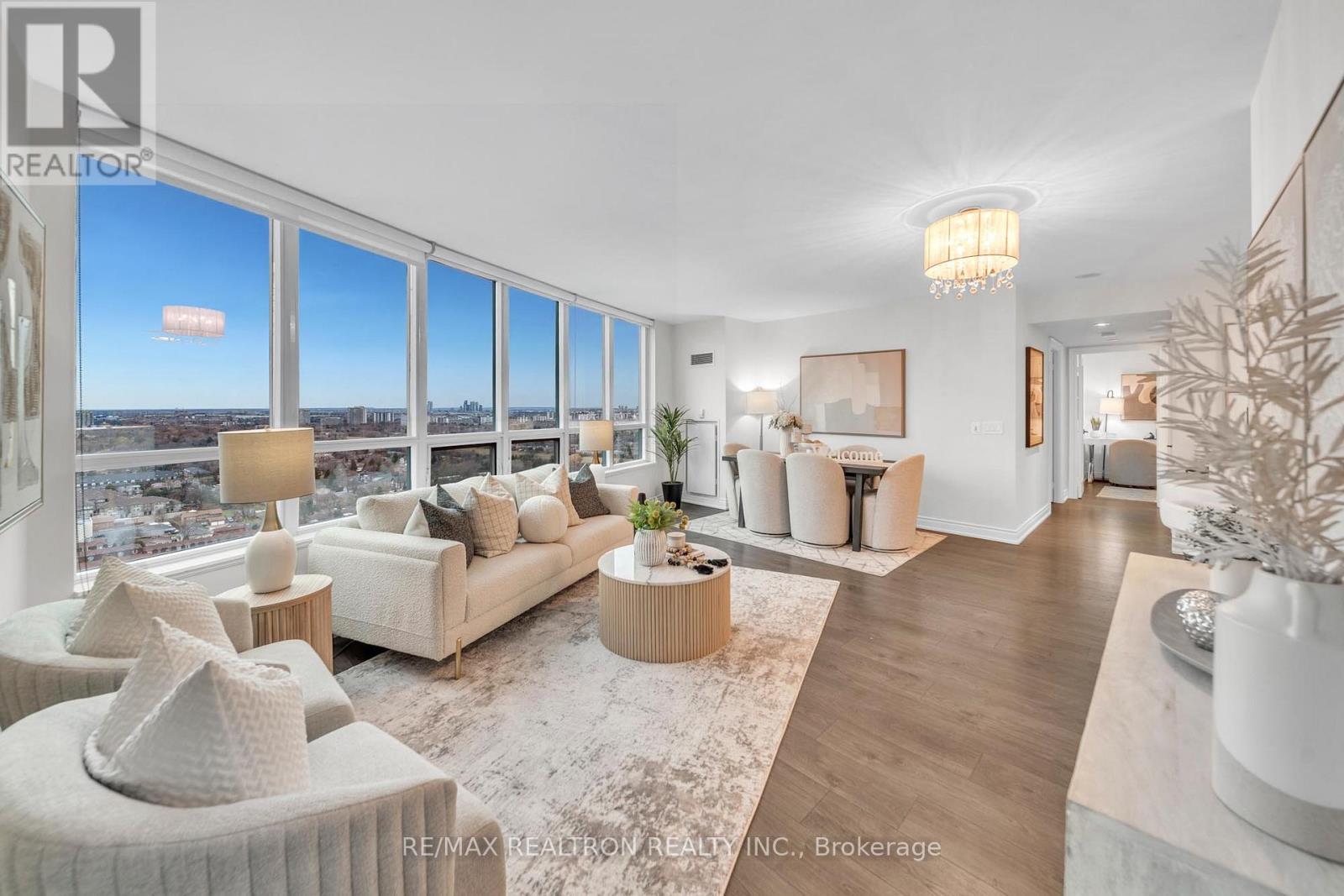 Welcome to sky-high living at Meridian by Tridel. Rarely available layout, standing proud on the 25th floor with a bright South-West exposure, this fully renovated corner suite offers over 1,000 sq ft of lush living space, delivering the perfect blend of elegance, comfort, and truly move-in-ready. Over $$100k$$ in upgrades and renovations have been invested to create a refined, designer feel throughout. From the moment you enter, pride of ownership is evident in every detail, with a crisp, polished presentation and new door hardware throughout. The living area features smooth ceilings- no popcorn-creating a clean, contemporary finish that instantly enhances the space. Expansive windows frame a stunning city backdrop, including a clear west-facing view toward Mississauga & a beautiful southern skyline where you can spot the CN Tower glowing in the distance. At the heart of the home is a chef-inspired kitchen, beautifully reimagined and extended to create a larger working area, ideal for everyday living and entertaining. The design feels seamless and custom, featuring no bulkheads, white custom wood cabinetry to the ceiling, & quartz countertops with an elegant waterfall edge, paired with a seamless custom quartz backsplash for a true designer finish. Newer appliances, including a brand new stove, complete the turnkey experience. Offering 2 spacious bedrooms plus a large den and 2 full bathrooms, the layout provides flexibility rarely found in condo living. The den easily functions as a third bedroom, home office, or guest space. Includes premium above-grade second-level parking and a large locker. Enjoy resort-style amenities: Indoor pool, hot tub, sauna, gym, library, party room, guest suites, concierge, visitor parking, and EV charging. Steps to Finch TTC Station, with quick access to Hwy 401 and DVP, and surrounded by excellent dining, shopping, and groceries. Rare opportunity to own a sophisticated, turnkey residence with exceptional space, views, and lifestyle. (41965442)