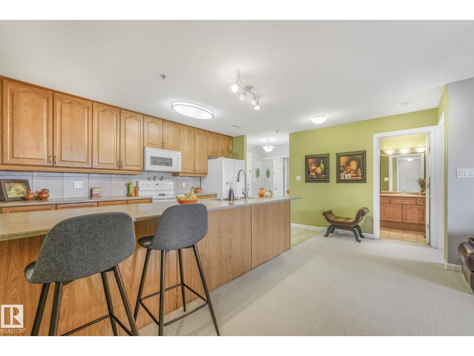 Perfect downsizing condo.IMMACULATE TOP FLOOR AND OVERLOOKING THE RAVINE! This modern 2 bedroom and 2 full bath, 18+ unit in the Ridge At Hermitage is immaculate! Features include: modern open concept kitchen with expansive breakfast bar, bright and warm ceiling height cabinets, spacious living room, large balcony, insuite laundry/storage, central elevators and underground parking stall with storage cage and an additional extra large storage unit (1.96x3.29), main bedroom has a walk-through closet and a 4pc ensuite. 2nd bedroom is next to a 4pc bath and has a custom murphy bed that converts to a desk and filing cabinet. Both bedrooms are on opposite ends of unit. Upgrades include Custom blinds. Parking is close to elevator. Extra features: A/C, visitor parking, car wash, Social and Exercise rooms. All utilities are included in the condo fees, except power. Pet friendly with board approval. Extensive walking/biking trails, skiing and golf nearby. Quick access to all amenities and major routes! (33731350)