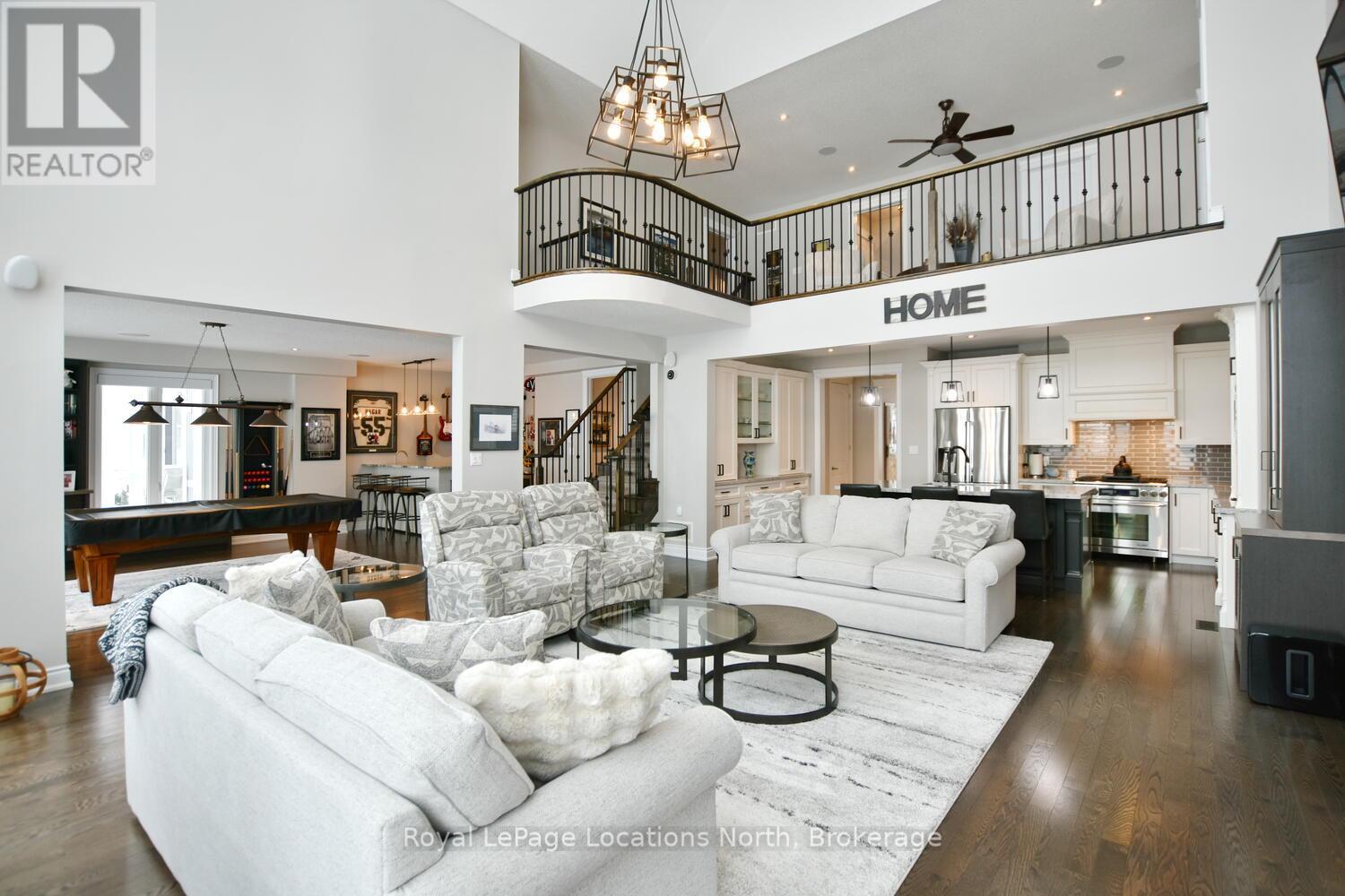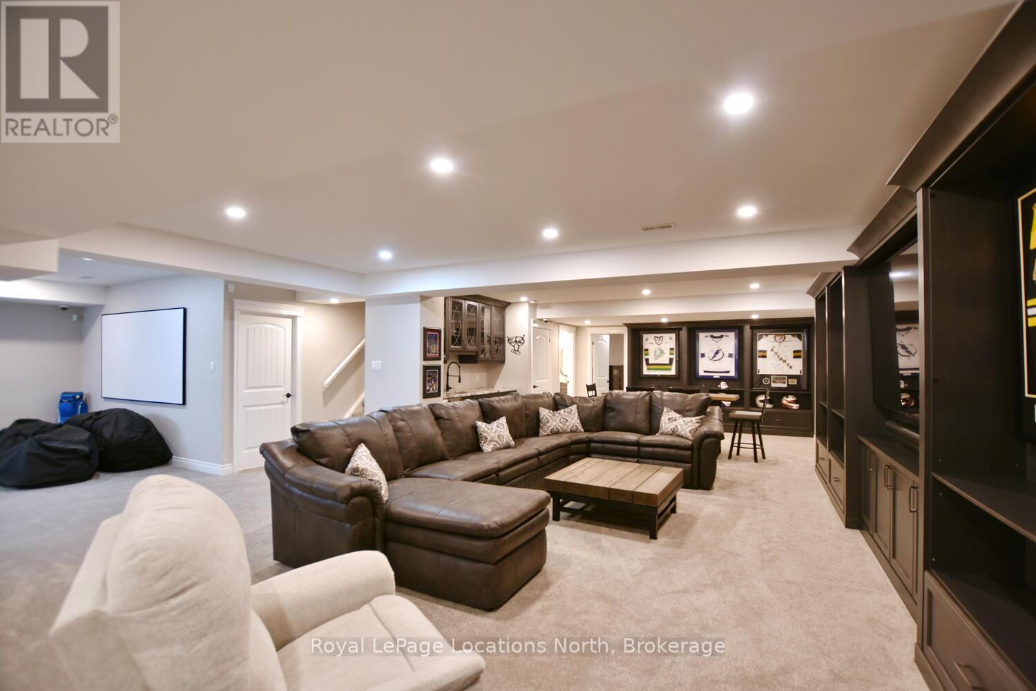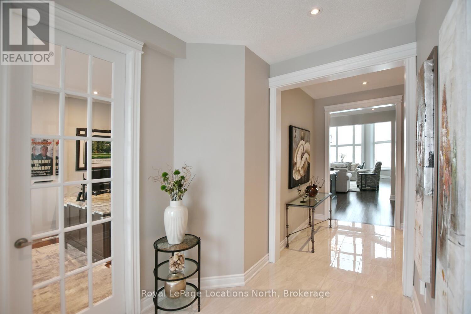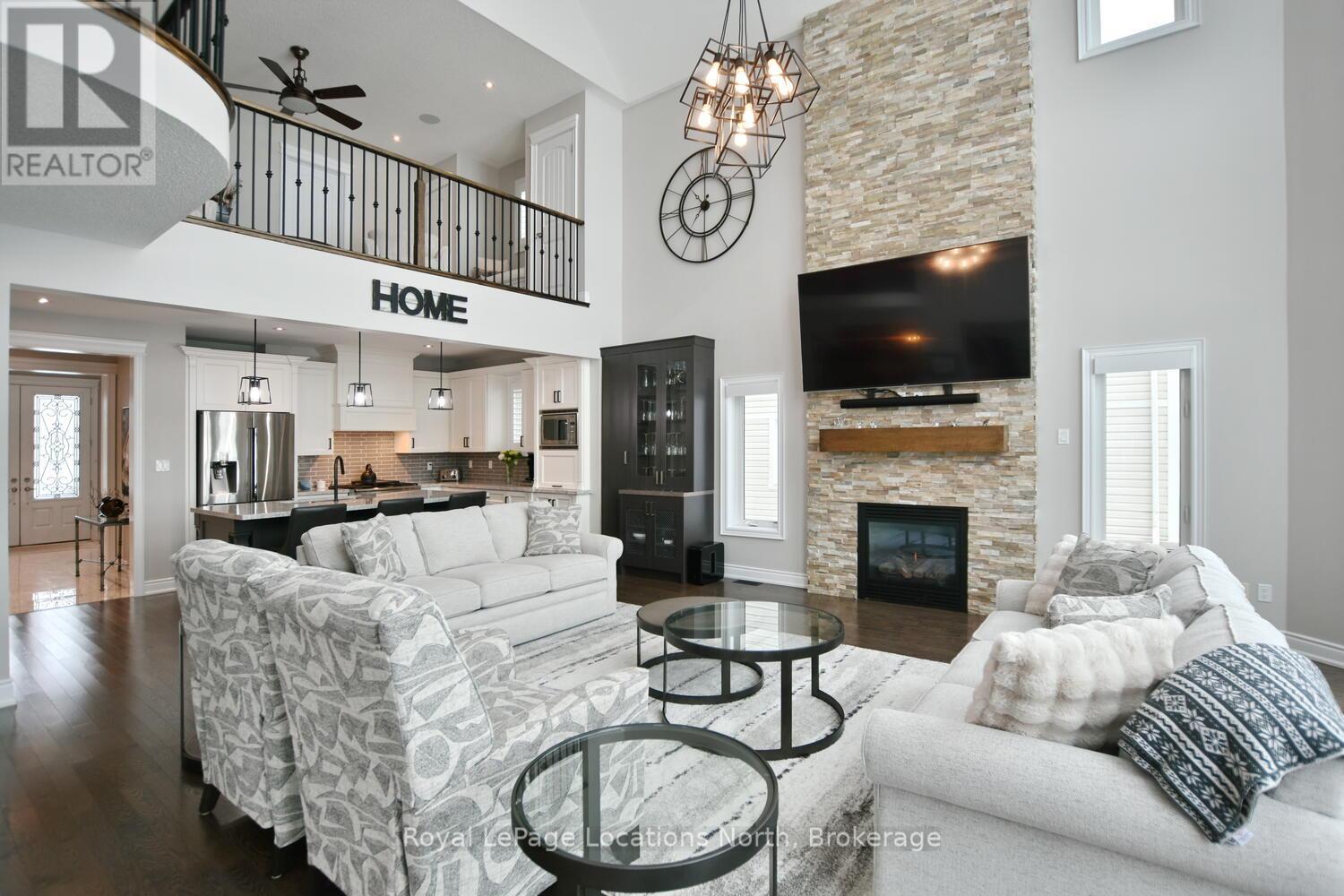 Wake up every day to breathtaking Georgian Bay views in this exceptional waterfront home, where thoughtful design, luxury finishes, & extensive upgrades come together seamlessly! With over $250,000 invested in renovations, this meticulously maintained property offers over 4400 sq ft of refined living space, making it ideal for both everyday living & entertaining. From the moment you step inside, floor-to-ceiling windows frame endless blue-water vistas & fill the home with natural light. The main level features rich built-ins throughout, a stylish den perfect for a home office, & an inviting living area anchored by a dramatic floor-to-ceiling stone gas fireplace. The updated gourmet kitchen is a showstopper with granite countertops, a large center island, stainless steel appliances, & a gas range-perfect for hosting family & friends. The main floor also features a bonus recreation space with a wet bar, pool table area, plus walkout access to the expansive deck & interlock patio overlooking the water. The primary suite is a true retreat, offering panoramic tranquil water views, & an updated spa-inspired ensuite complete with glass walk-in shower, & double vanity. Additional bedrooms are generously sized, providing space & comfort for guests or family. Designed for entertaining, the lower level is fully finished with a gorgeous rec room, bar, built-ins, guest bedroom & bath, as well as a flex space. Car enthusiasts & hobbyists will appreciate the fully finished garage with epoxy floors, custom organization, & a mounted TV-an ideal workspace or hangout. Outdoor living is further enhanced by custom driveway lighting & professionally installed interlock. Additional highlights include main-floor laundry, inside entry from the garage, & access to a private clubhouse with pool, fitness area, & waterfront deck. Located close to beaches, ski hills, & 4-season recreation, this waterfront gem offers luxury, lifestyle, & views that must be seen to be truly appreciated! (41966068)