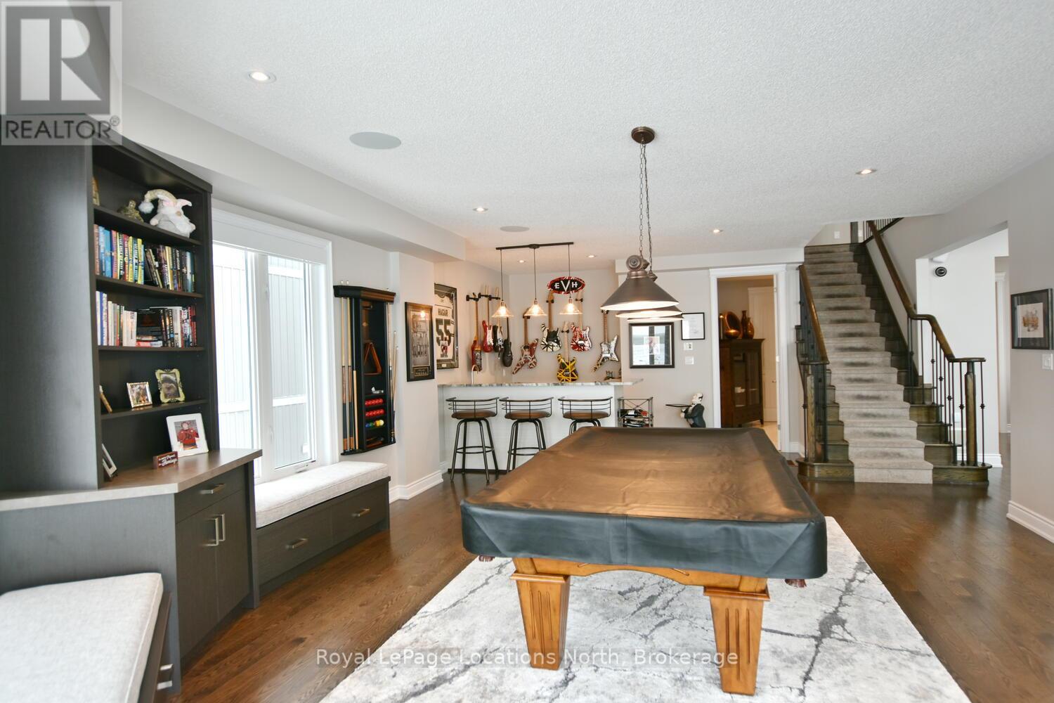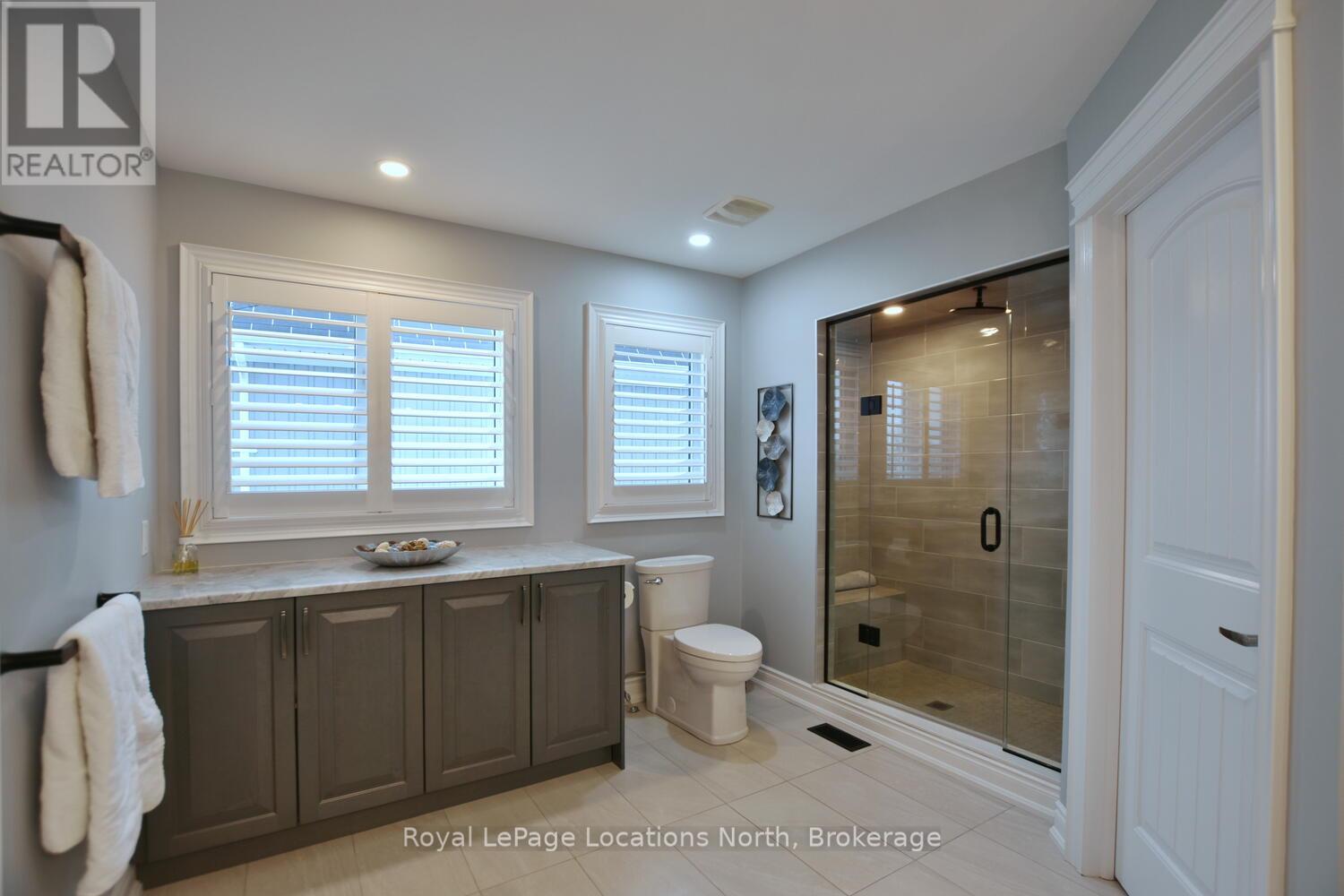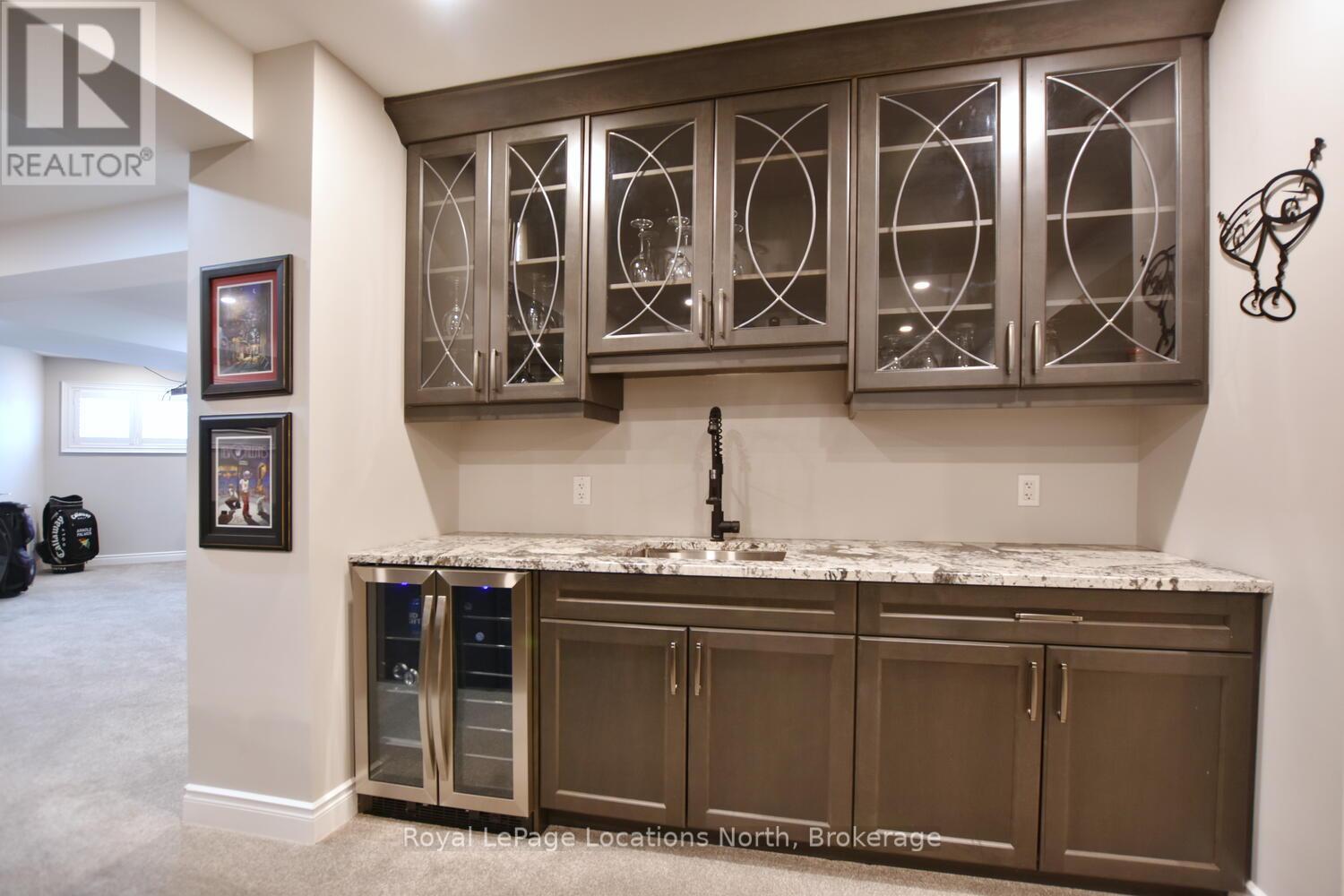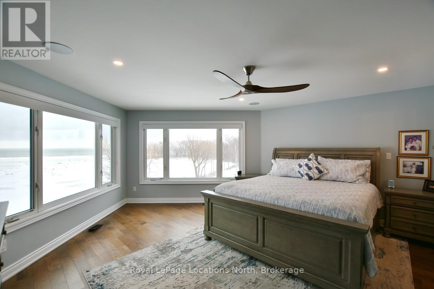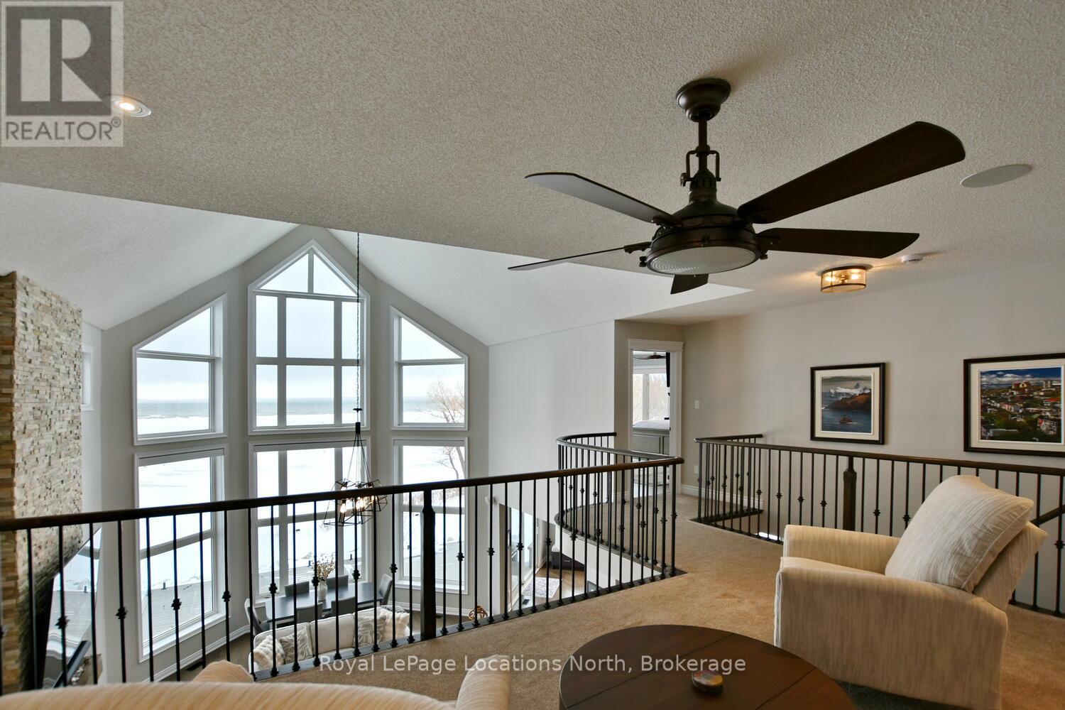 Wake up every day to breathtaking Georgian Bay views in this exceptional waterfront home, where thoughtful design, luxury finishes, & extensive upgrades come together seamlessly! With over $250,000 invested in renovations, this meticulously maintained property offers over 4400 sq ft of refined living space, making it ideal for both everyday living & entertaining. From the moment you step inside, floor-to-ceiling windows frame endless blue-water vistas & fill the home with natural light. The main level features rich built-ins throughout, a stylish den perfect for a home office, & an inviting living area anchored by a dramatic floor-to-ceiling stone gas fireplace. The updated gourmet kitchen is a showstopper with granite countertops, a large center island, stainless steel appliances, & a gas range-perfect for hosting family & friends. The main floor also features a bonus recreation space with a wet bar, pool table area, plus walkout access to the expansive deck & interlock patio overlooking the water. The primary suite is a true retreat, offering panoramic tranquil water views, & an updated spa-inspired ensuite complete with glass walk-in shower, & double vanity. Additional bedrooms are generously sized, providing space & comfort for guests or family. Designed for entertaining, the lower level is fully finished with a gorgeous rec room, bar, built-ins, guest bedroom & bath, as well as a flex space. Car enthusiasts & hobbyists will appreciate the fully finished garage with epoxy floors, custom organization, & a mounted TV-an ideal workspace or hangout. Outdoor living is further enhanced by custom driveway lighting & professionally installed interlock. Additional highlights include main-floor laundry, inside entry from the garage, & access to a private clubhouse with pool, fitness area, & waterfront deck. Located close to beaches, ski hills, & 4-season recreation, this waterfront gem offers luxury, lifestyle, & views that must be seen to be truly appreciated! (41966068)