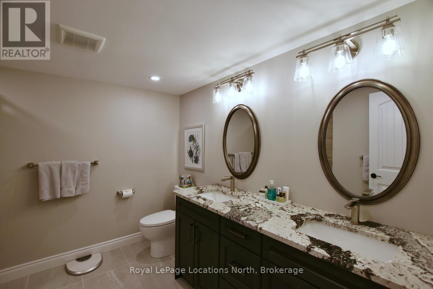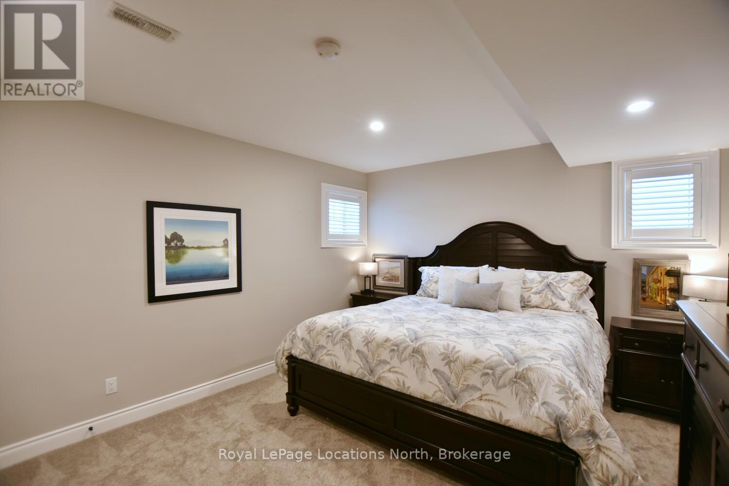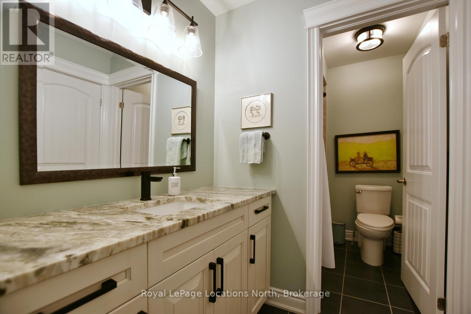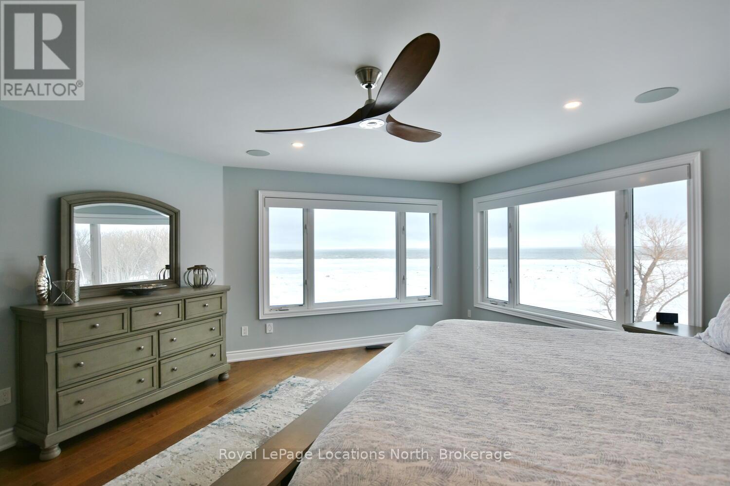 Wake up every day to breathtaking Georgian Bay views in this exceptional waterfront home, where thoughtful design, luxury finishes, & extensive upgrades come together seamlessly! With over $250,000 invested in renovations, this meticulously maintained property offers over 4400 sq ft of refined living space, making it ideal for both everyday living & entertaining. From the moment you step inside, floor-to-ceiling windows frame endless blue-water vistas & fill the home with natural light. The main level features rich built-ins throughout, a stylish den perfect for a home office, & an inviting living area anchored by a dramatic floor-to-ceiling stone gas fireplace. The updated gourmet kitchen is a showstopper with granite countertops, a large center island, stainless steel appliances, & a gas range-perfect for hosting family & friends. The main floor also features a bonus recreation space with a wet bar, pool table area, plus walkout access to the expansive deck & interlock patio overlooking the water. The primary suite is a true retreat, offering panoramic tranquil water views, & an updated spa-inspired ensuite complete with glass walk-in shower, & double vanity. Additional bedrooms are generously sized, providing space & comfort for guests or family. Designed for entertaining, the lower level is fully finished with a gorgeous rec room, bar, built-ins, guest bedroom & bath, as well as a flex space. Car enthusiasts & hobbyists will appreciate the fully finished garage with epoxy floors, custom organization, & a mounted TV-an ideal workspace or hangout. Outdoor living is further enhanced by custom driveway lighting & professionally installed interlock. Additional highlights include main-floor laundry, inside entry from the garage, & access to a private clubhouse with pool, fitness area, & waterfront deck. Located close to beaches, ski hills, & 4-season recreation, this waterfront gem offers luxury, lifestyle, & views that must be seen to be truly appreciated! (41966068)