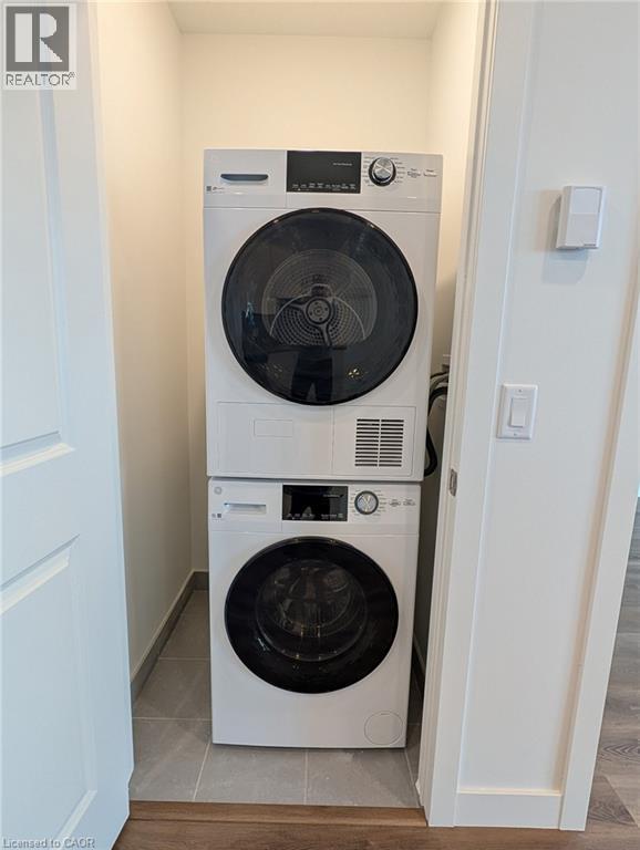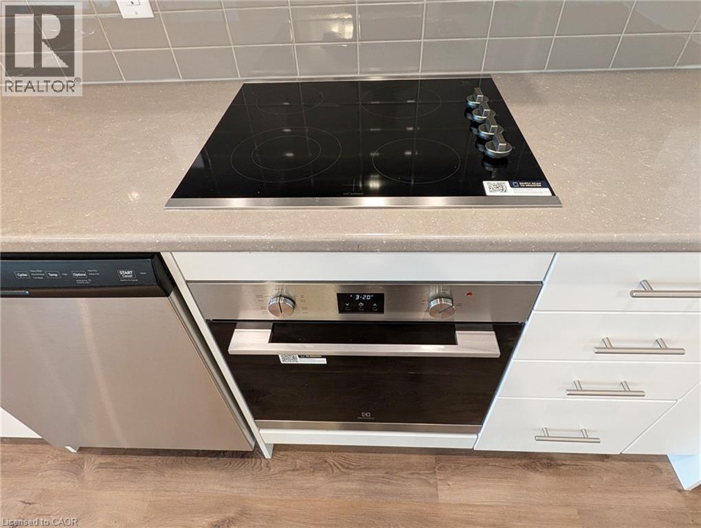 Awesome one-bedroom apartment available at the MUSE Condos, an award-winning development by DeSantis. Ideally located on the sixth floor, steps to many of the building’s amenities: rooftop terrace, community garden, club room, chef’s kitchen with dining area, BBQ dining area, fireside lounge, studio, media lounge and art gallery! The open layout lends itself well to your personal living configuration. Floor-to-ceiling windows provide loads of natural light and the 9 1/2’ ceiling height provides a spacious feel. Upgraded extras include the tile backsplash, built-in over-the-range microwave, tall (100 cm) upper cabinets, upgraded floor and wall tile in the bathroom, quartz niche in bathtub enclosure, silver pot light package. Particularly appealing is the oversized (almost 100 sq ft!) balcony, extending the full width of the unit with lake and Escarpment views! High-tech features of the building include the DeSantis Smart Suite: in-suite digital wall pad (lighting, heating/cooling controls), digital door lock, automated parcel locker. Fibre internet and geo-thermal climate control are included in the rent, you only pay for hydro and water! Also included are one underground parking spot and a locker. Conveniently located steps to the waterfront/beach, Confederation Park and waterfront trails, perfect for walking, jogging and cycling. Excellent access to the QEW and the Confederation GO Train station for commuters. Shopping, dining and entertainment options abound with Eastgate Mall, Winona Crossing, Old Stoney Creek and Centennial/Queenston corridors a short drive away. (70060162)