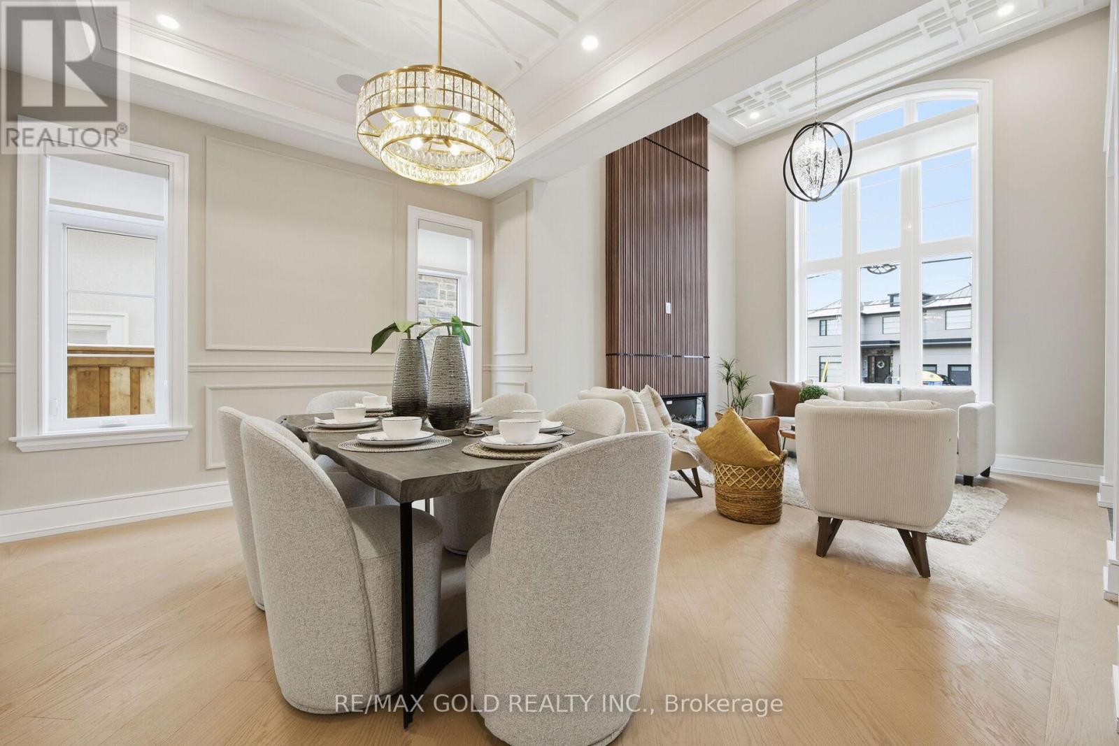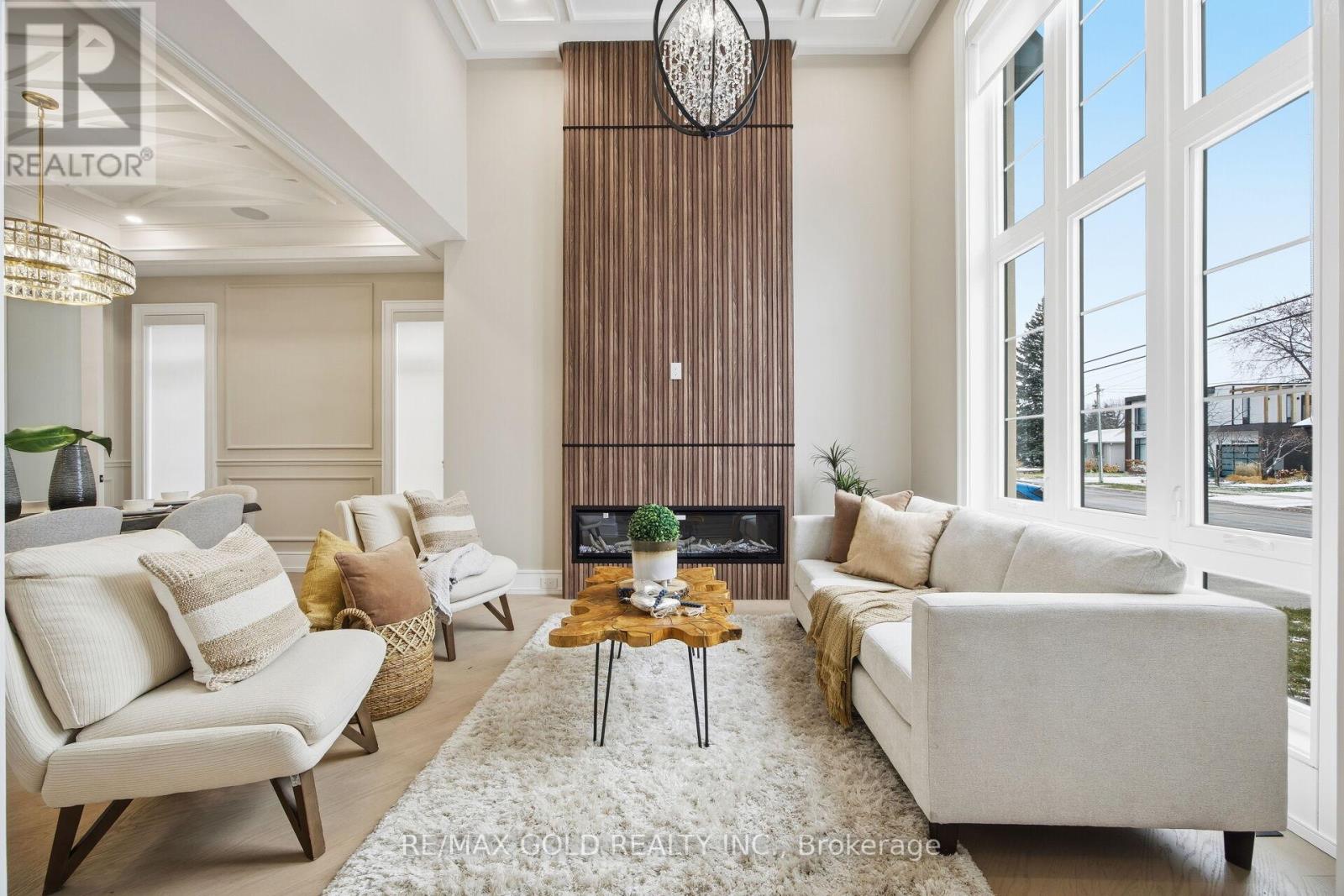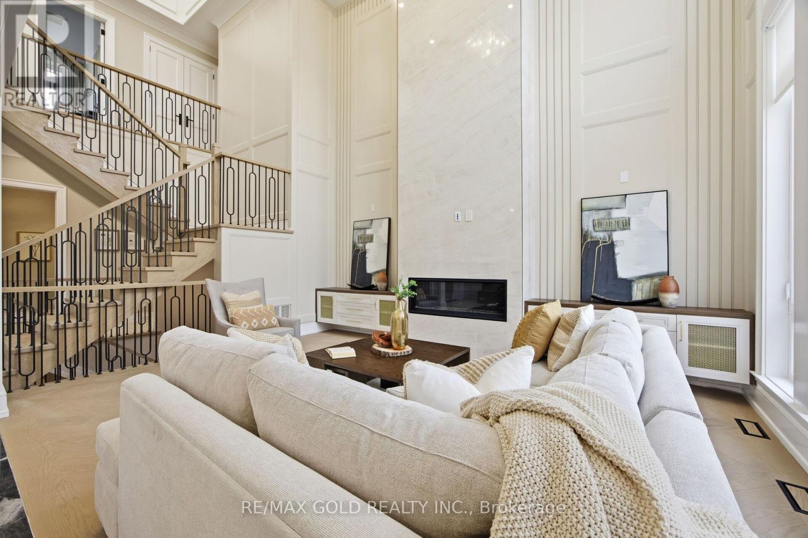 Welcome to an exceptional custom-built luxury residence, where inspired architecture, thoughtful design, and superior craftsmanship come together to create a home that is both elegant and functional. The grand foyer sets the tone, offering an impressive welcome into this truly distinguished home. Light & architectural impact, the interior features a dramatic skylight that fills the home with natural light. The show-stopping 20' family room is highlighted by a stunning floor-to-ceiling porcelain fireplace, sophisticated yet inviting atmosphere. The formal living room features 14' ceilings and expansive front-facing windows. The open-concept main level is enhanced by 10' ceilings, modern pot lighting, and floor-to-ceiling windows, allowing sunlight to pour into every corner. Elegant wainscoting and custom wall panelling throughout the foyer, living room, family room, and staircase showcase the exceptional detail and craftsmanship found throughout the home. At the heart is a chef-inspired kitchen, designed for both everyday living. It features panel-ready Miele appliances, including refrigerators & other appliances, offering a seamless, built-in aesthetic. This well-planned kitchen provides an outstanding layout, premium finishes, and a functional flow that opens to the backyard through sliding doors. Step outside to a covered rear patio, accessed from the kitchen, creating the perfect space for outdoor enjoyment. The fenced backyard ensures privacy, while the beautifully designed interlocked driveway and wrap-around hardscaping enhance curb appeal and durability. Car enthusiasts and active families will appreciate the extra-wide garage, designed to comfortably accommodate larger vehicles. A secondary rear garage door allows convenient access to the backyard-ideal for motorcycles or pets. The fully finished basement continues the luxurious living experience, with large window wells for enhanced natural light, a stylish wet bar & full bath. Extra-wide garage Doors. (41966113)