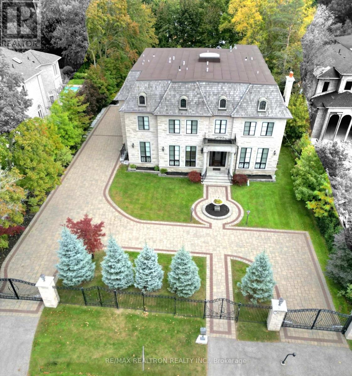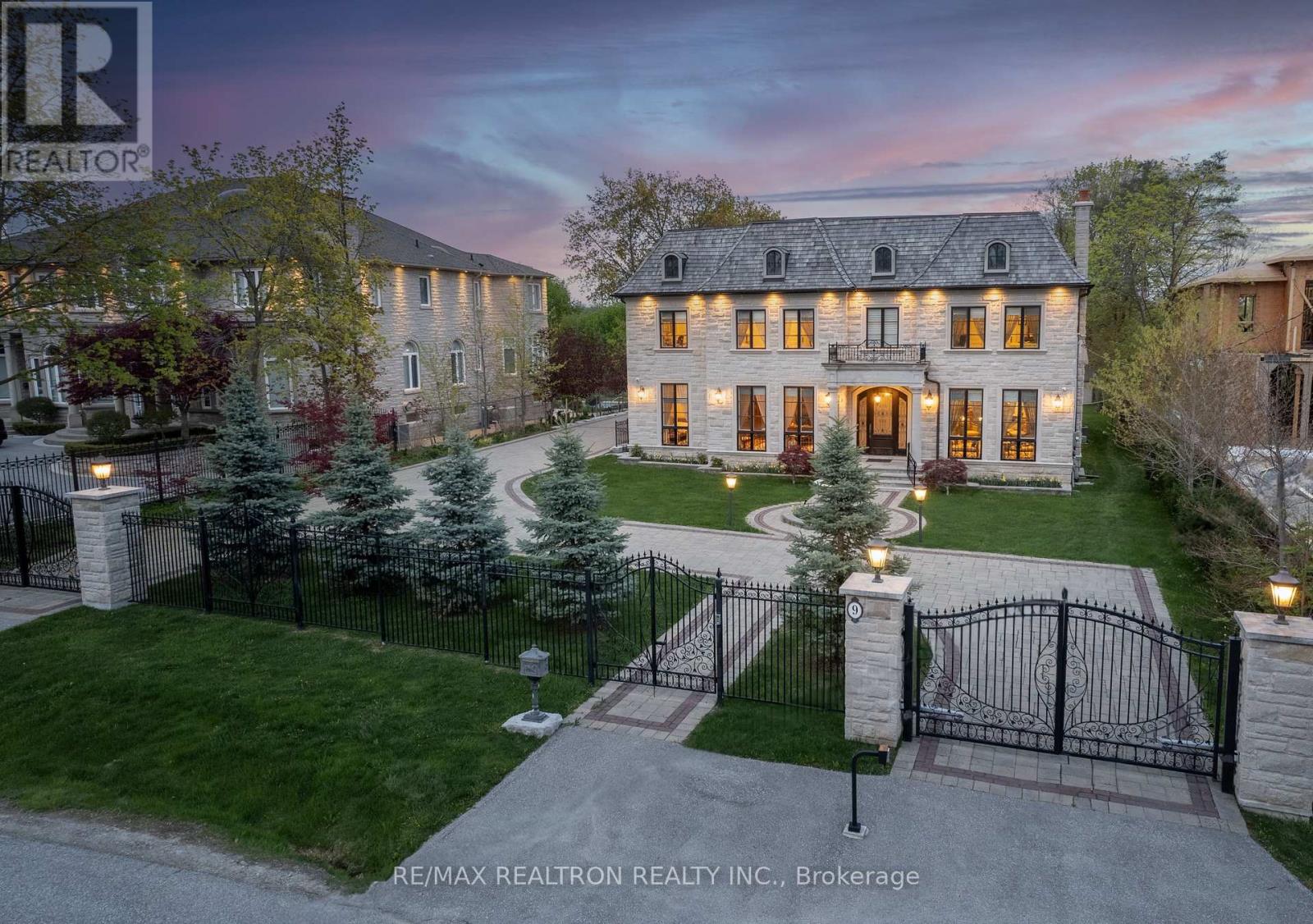 Welcome to Iconic 9 Thornbank Road, a residence of rare distinction set on one of Thornhill's most Prestigeous streets. Situated on a stunning 100 x 270 ft manicured lot, this grand stone and brick estate exemplifies architectural excellence and timeless craftsmanship. Spanning approximately 11,000 sq. ft. of luxurious living space, this custom-built masterpiece has been thoughtfully designed for both grand-scale entertaining and refined family living. Step into the dramatic 22-ft waffled-ceiling Great Room, where natural light, rich millwork, and heated floors create an atmosphere of warmth and elegance. The chef-inspired gourmet kitchen features an expansive pantry, a sunlit breakfast area, and multiple walkouts to private terraces, ideal for seamless indoor-outdoor living. Each bedroom offers private ensuite bathrooms and designer finishes, while the walk-out lower level provides a full lifestyle experience, complete with a home theatre, fitness studio, and private elevator for effortless access throughout the home.This is more than a residence, it's a bold expression of prestige, presence, and perfection. (41966630)