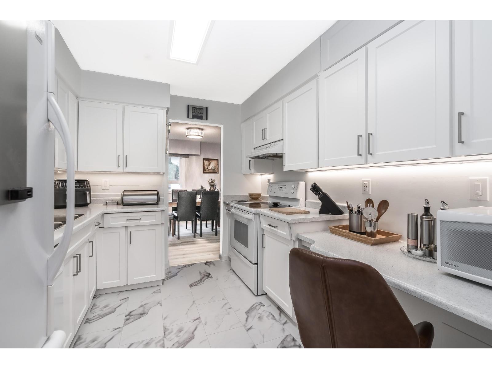 Welcome to Dogwood Manor! This southeast corner 1,300+ sqft unit features three large bedrooms, two full bathrooms, fully renovated not a thing to do! Gorgeous fireplace and a huge private wraparound patio with glass railing. The well run 55+ building has been fully refurbished with new siding and updated common area carpeting. The unit offers marble tile floors, under-cabinet lighting, ample storage, and plenty of parking. Enjoy great amenities, including a fully equipped gym and games room, all in a central location close to shopping and highway access. (32341819)