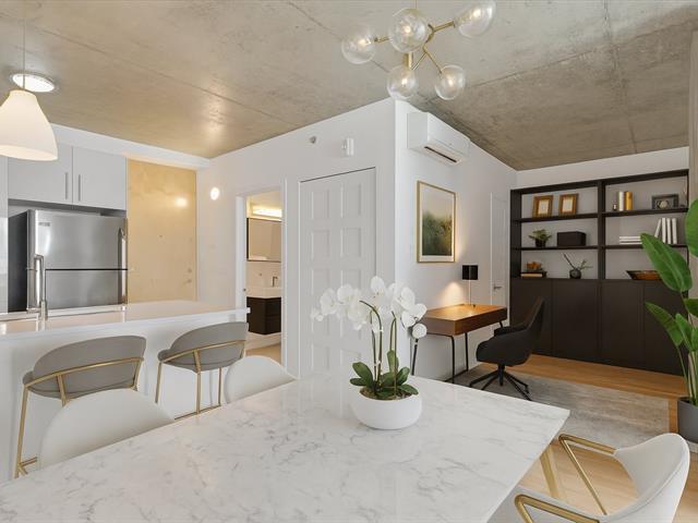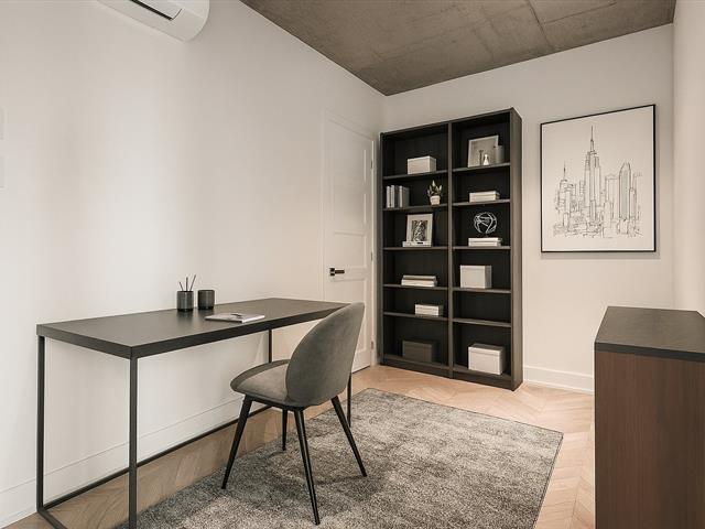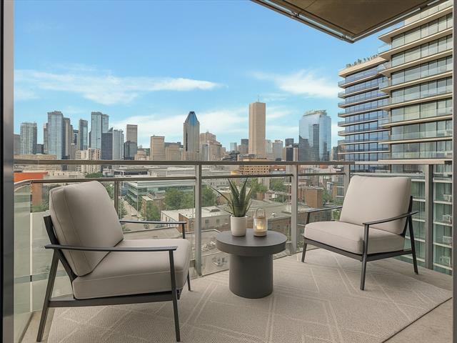 Elegantly appointed and modern unit for rent situated on the 11th floor of the renowned Le Murray project, with possibility to acquire 1 indoor parking space. This unit offers 1 bedroom and a versatile den with a storage closet, a sleek kitchen and dining area, and a spacious balcony with panoramic city views accessible from the living room. The bedroom boasts a generous built-in closet and expansive windows overlooking Ottawa Street. The bathroom is equipped with a modern vanity, integrated washer and dryer.Luxury amenities featuring a rooftop terrace, heated outdoor pool, urban chalet, gym, children's playroom and a guest suite. (41522741)