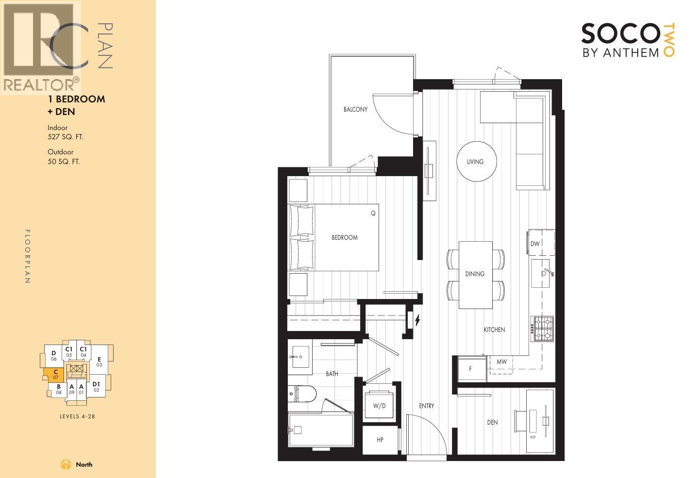 Brand new 1 bedroom + den condo for rent at SOCO 2 by Anthem. This home offers a smart and functional layout with a den ideal for a home office, a sleek modern kitchen with high-end integrated Bosch appliances, quartz countertops, and a full-height backsplash. Enjoy year-round comfort with an energy-efficient heat pump providing both heating and air conditioning, along with in-suite LG washer and dryer, roller blinds throughout, and a private balcony. Residents have access to over 12,000 sq. ft. of premium amenities including a fully equipped gym, yoga and dance studio, infrared sauna, co-working lounge, entertainment areas, theatre and virtual golf, music rooms, outdoor terrace with BBQ and firepits, dog run with pet wash station, secure parcel lockers, and bike wash facilities. (32342186)