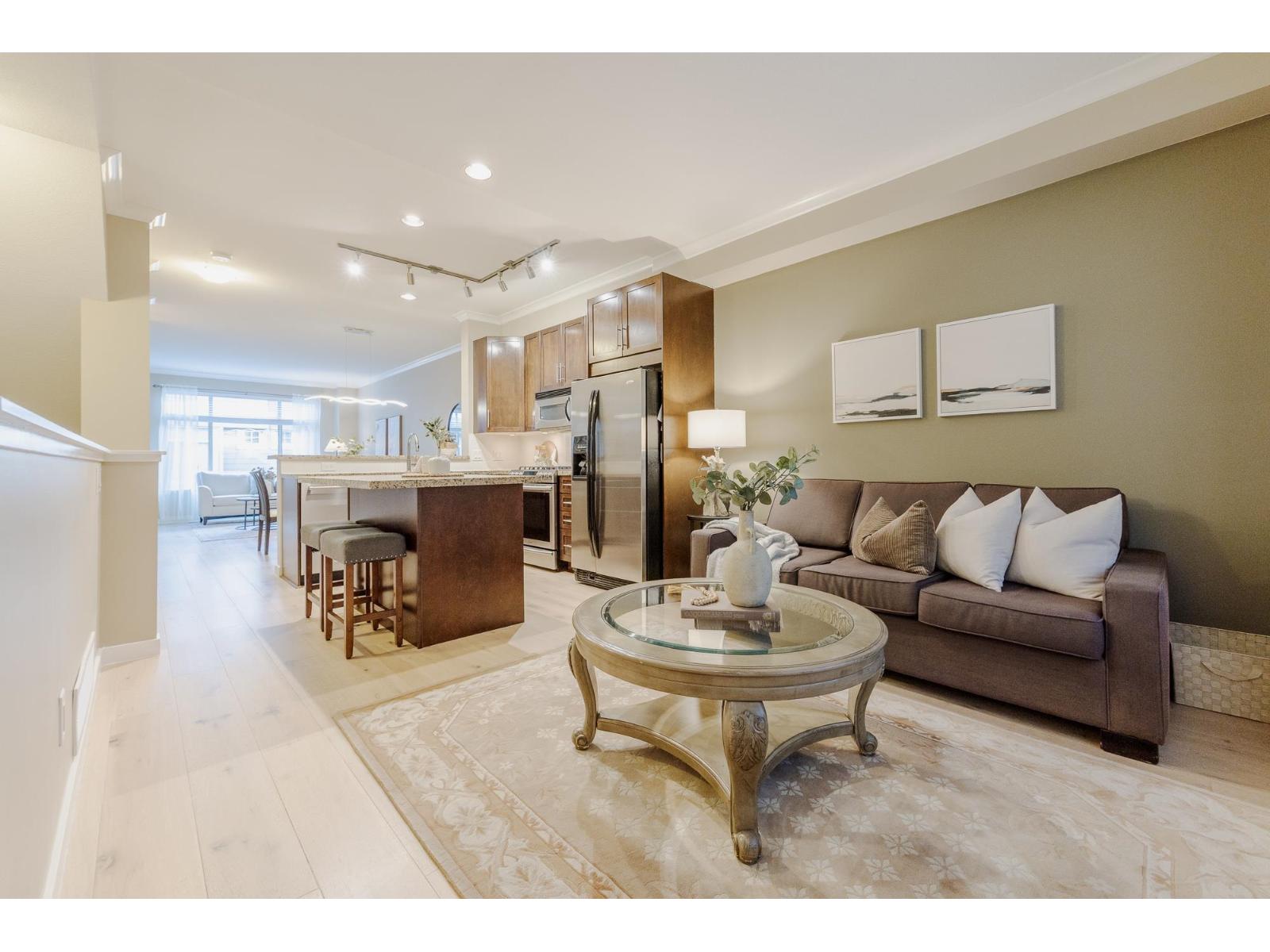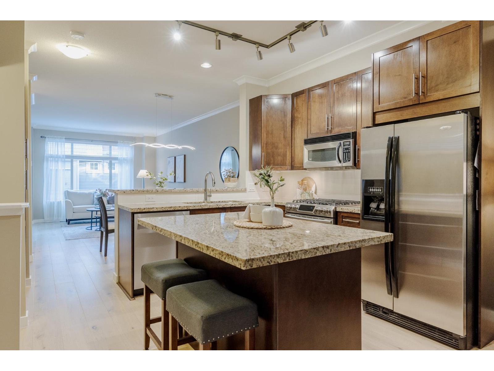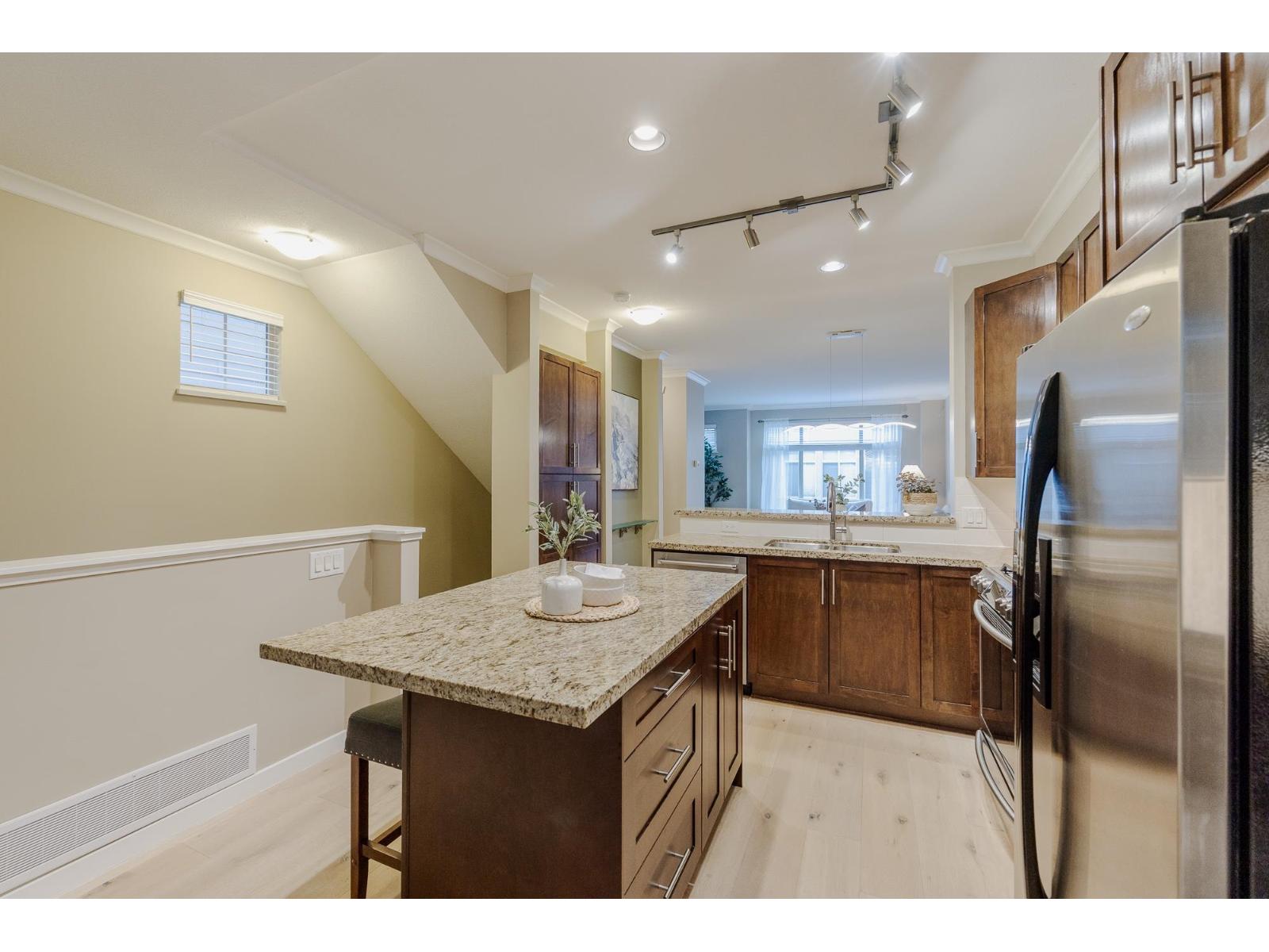 Welcome home to the Georgie Award winning "Sereno" complex by Boffo Developments. This well designed, lovingly maintained and thoughtfully updated end unit is ready for your family to start creating memories. Open concept main floor with updated gleaming wood floors and stone countertops in the chef inspired kitchen which includes a gas range and ample shaker cabinets as well as a large island. You will love the family room with updated gas fireplace and access to sundeck. The upper floor features 3 generous bedrooms including a large primary with adjoining bathroom, and laundry also conveniently located on the upper floor. There's a bonus room in the basement, with access to the private rear yard. Great spot for media room, home gym or office, etc.. Parking for 2 cars and walkable area. (32342472)