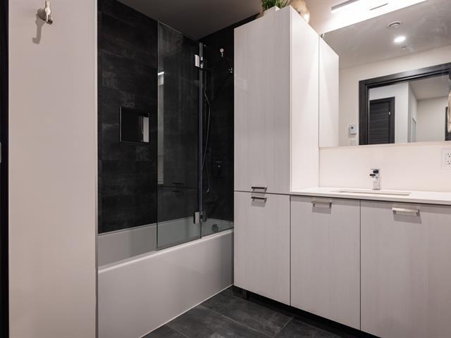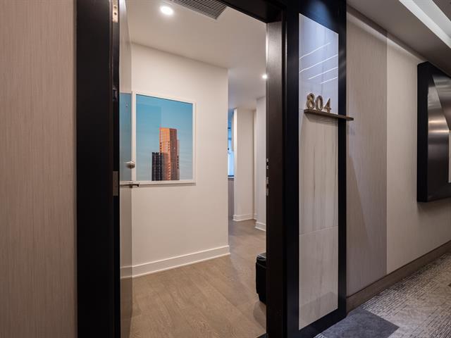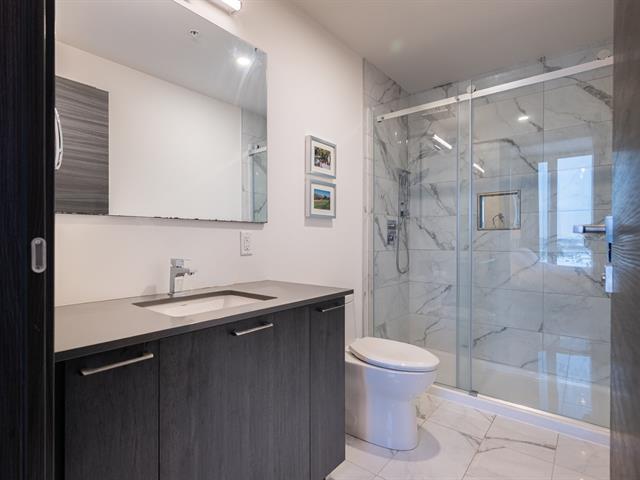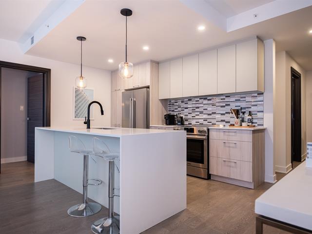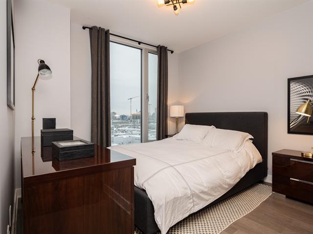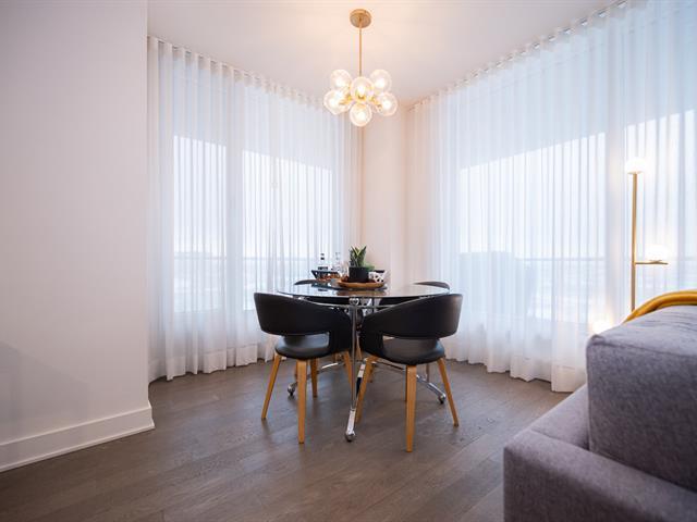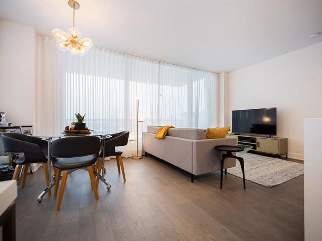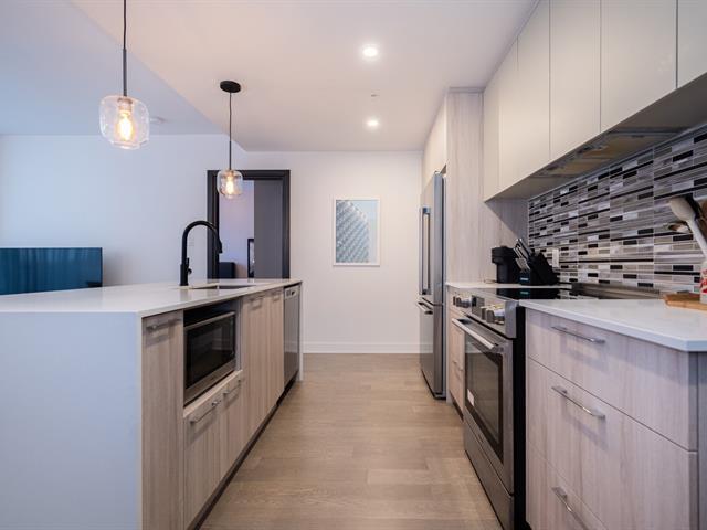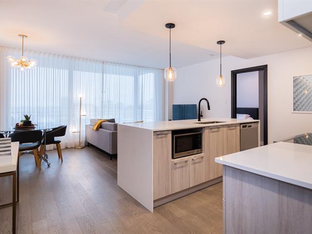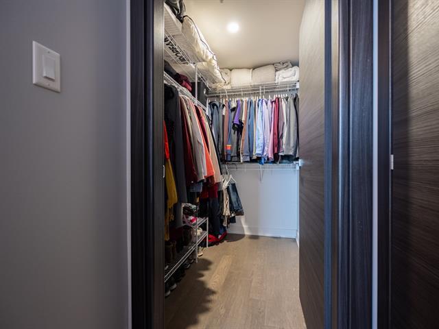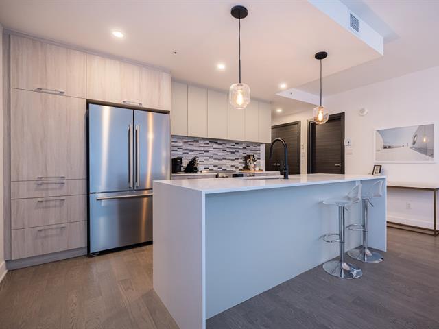 Unit on the 8th floor offering two bedrooms, two bathrooms, and a remarkable open view. The unit features three walk-in closets (one per bedroom and one for coats), a large L-shaped balcony, quality appliances, custom window coverings, indoor storage space, and an indoor garage parking spot. The building offers a well-equipped fitness room with sauna, a large common lounge, an outdoor pool, and a rooftop terrace. (44577365)