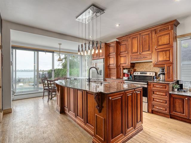 * BORD DE L'EAU *Grande maison située directement au bord du Fleuve Saint-Laurent, à seulement 10 minutes de Montréal. Possible d'avoir VOTRE QUAI directement de VOTRE PROPRIÉTÉ. Elle offre un cadre de vie exceptionnel avec sa piscine creusée et son intérieur spacieux comprenant un plafond de 18 pieds, une mezzanine, et un grand salon avec un foyer majestueux. La cuisine élégante, dotée d'armoires en bois, s'ouvre sur un espace de vie chaleureux avec vue sur le fleuve. Avec 6 chambres et 2 salles de bains, elle est idéale pour une grande famille. (49428962)