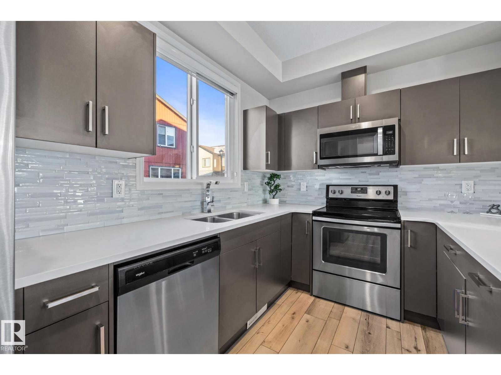 Discover modern industrial living in this stunning 1,544 sq. ft. end-unit townhouse in the beautiful Schonsee neighbourhood. This bright, sun-drenched home features an open-concept layout with 9' ceilings and a thoughtfully upgraded feature wall. The functional floor plan offers three spacious bedrooms plus a versatile den, including a primary retreat with a 3-pc ensuite. Enjoy the convenience of main floor laundry, a large pantry, and a 2-pc powder room. Step outside onto your private east-facing balcony to take in serene pond views. Utilize the double attached garage and nearby visitor parking. Perfectly positioned for ease of living, you are minutes away from major commuter routes, premium shopping, and essential commercial amenities. This 3-storey gem perfectly balances style, comfort, and a prime location. (33732516)