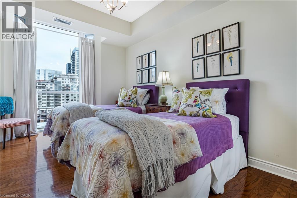 Downtown energy. Lakeside calm. Burlington at its finest. Welcome to Bunton’s Wharf, where refined design and effortless living come together in this bright and beautifully proportioned 2-bedroom, 2-bath residence. Thoughtfully designed to balance light, luxury, and location, this open-concept condo offers a seamless blend of comfort and sophistication. A welcoming foyer leads into a sun-filled living space featuring floor-to-ceiling windows, 9-foot ceilings, and hardwood floors throughout. The kitchen is both stylish and functional, with granite countertops, ample cabinetry, a generous breakfast bar, and a cozy breakfast nook with partial water views—an ideal spot to start the day. The combined living and dining area extends to a private balcony, offering sweeping lake and city views—perfect for relaxing or entertaining. The primary suite is a tranquil retreat with floor-to-ceiling windows, a walk-in closet, and a 4-piece ensuite. A bright and versatile second bedroom easily serves as a guest room, home office, or creative studio. A second full bath, dedicated laundry room, and excellent storage complete the layout. Two underground parking spaces and a locker conveniently located across the hall are included. Residents enjoy exceptional amenities, including a rooftop heated pool with panoramic lake views, rooftop patio, party room, two fitness centres (one featuring a golf simulator), steam room, and concierge service. Ideally located just steps from Spencer Smith Park, the waterfront trail, fine dining, boutique shopping, and the Performing Arts Centre, with quick access to the QEW, 407, and GO Transit. Luxury. Light. Location. Experience downtown Burlington living at its best. (70060507)