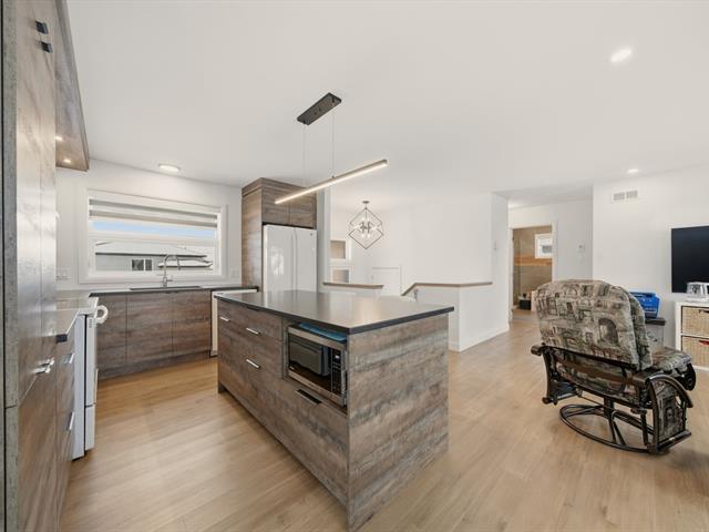Ideal for everyone, including first-time buyers, this 2020-built bungalow offers a modern, low-maintenance lifestyle in the heart of a dynamic, family-friendly neighborhood. It features four bedrooms, a nearly fully finished basement (ceilings to be completed in the family room and bathroom), and a detached 18 x 20 ft garage. You will enjoy high-end finishes, including granite countertops and a section of metal siding that adds durability and reduces maintenance. The property also offers a beautiful fenced and landscaped yard, close to services and Quatre-Vents Elementary School. A must-see! (44697994)