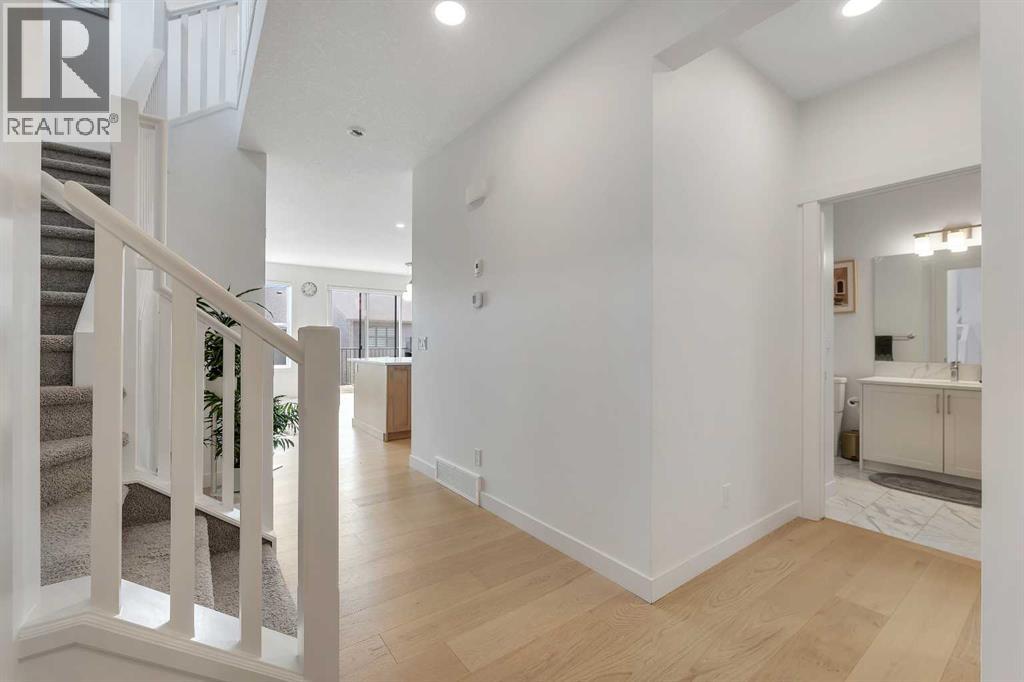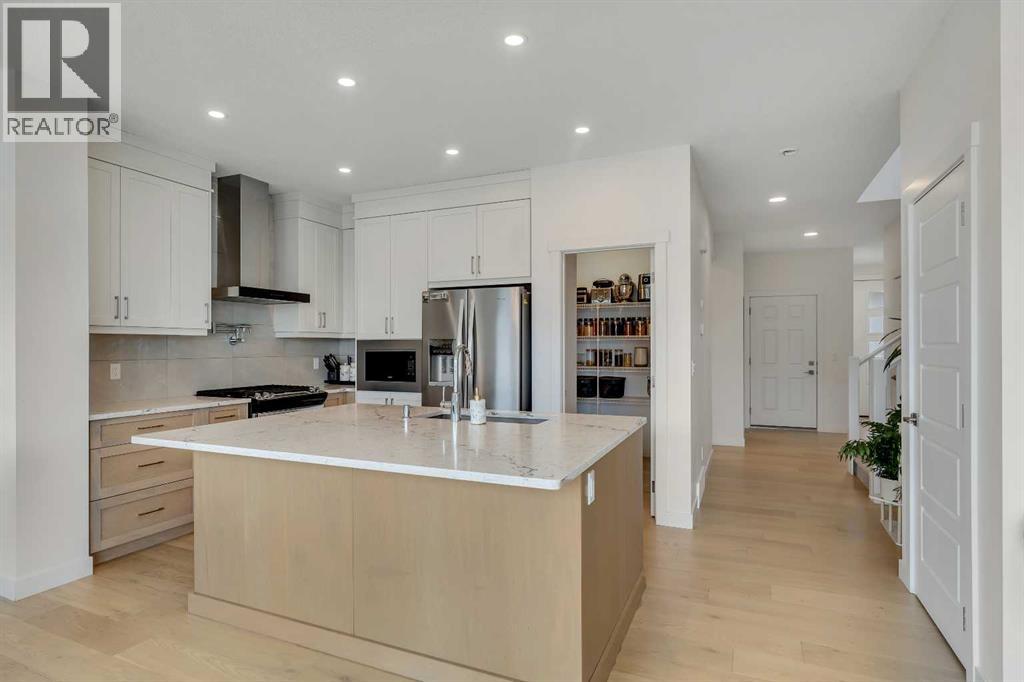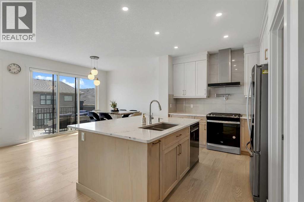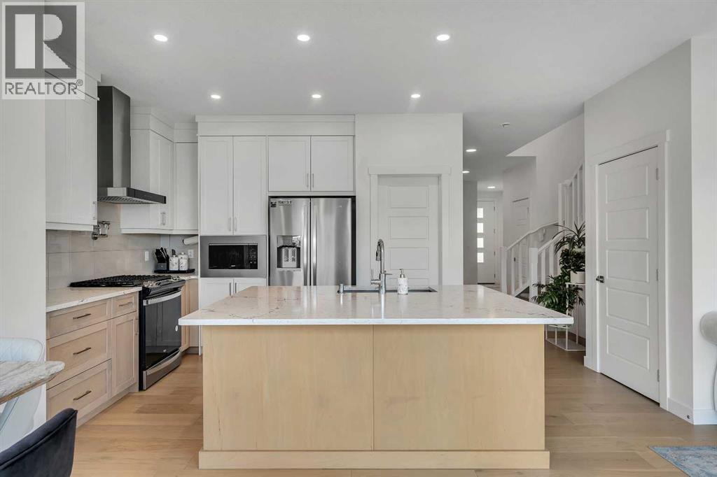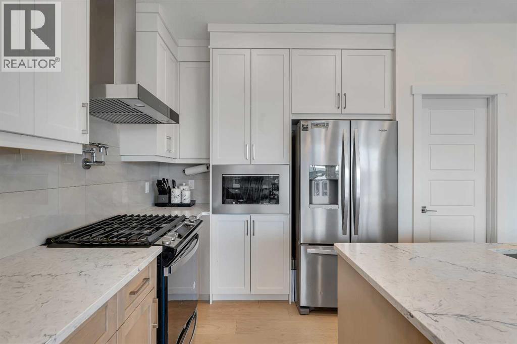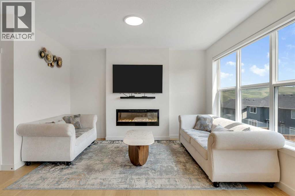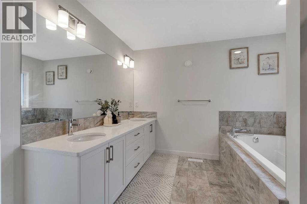 Welcome to this stunning, newly built 2-storey home (2024) in the highly desirable community of Precedence, where breathtaking mountain views and exceptional craftsmanship come together. From the moment you step inside, you’re greeted by an expansive foyer that flows seamlessly into a bright, open-concept main floor featuring 9’ ceilings, engineered hardwood flooring, and elegant tile throughout.Designed with versatility in mind, the main level offers a full bedroom and bathroom—perfect for guests, extended family, or multigenerational living. The chef-inspired kitchen is the heart of the home, showcasing sleek quartz countertops, a large central island with breakfast bar, gas range with custom hood fan, built-in microwave, and a convenient walk-through pantry for added storage and functionality.The adjacent living room is filled with natural light and anchored by a modern electric fireplace, creating a warm and inviting space while framing spectacular mountain views. The dining area flows effortlessly from the living room and opens onto the rear deck through patio doors—ideal for entertaining or enjoying peaceful outdoor moments.Upstairs, a cozy bonus room provides the perfect space for relaxation or a home media area, along with a full 4-piece bathroom and three spacious bedrooms. The primary suite is a true retreat, offering panoramic views, a luxurious 5-piece ensuite with dual vanities, a standalone soaker tub, a glass-enclosed tiled shower, and a walk-in closet with custom built-in shelving.The unfinished walk-out basement presents endless opportunities to create a space tailored to your lifestyle—whether it’s a home gym, additional living space, or entertainment area. Ideally located near scenic walking trails, a dog park along the Bow River, and just minutes from Spray Lakes Recreation Centre, this home is perfectly suited for active families and outdoor enthusiasts alike.Combining modern luxury, thoughtful design, and an unbeatable location, this exceptional home is one you won’t want to miss. (31542305)