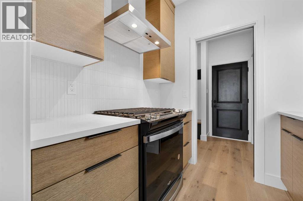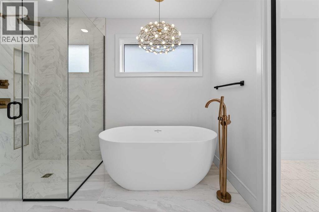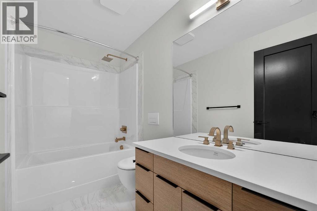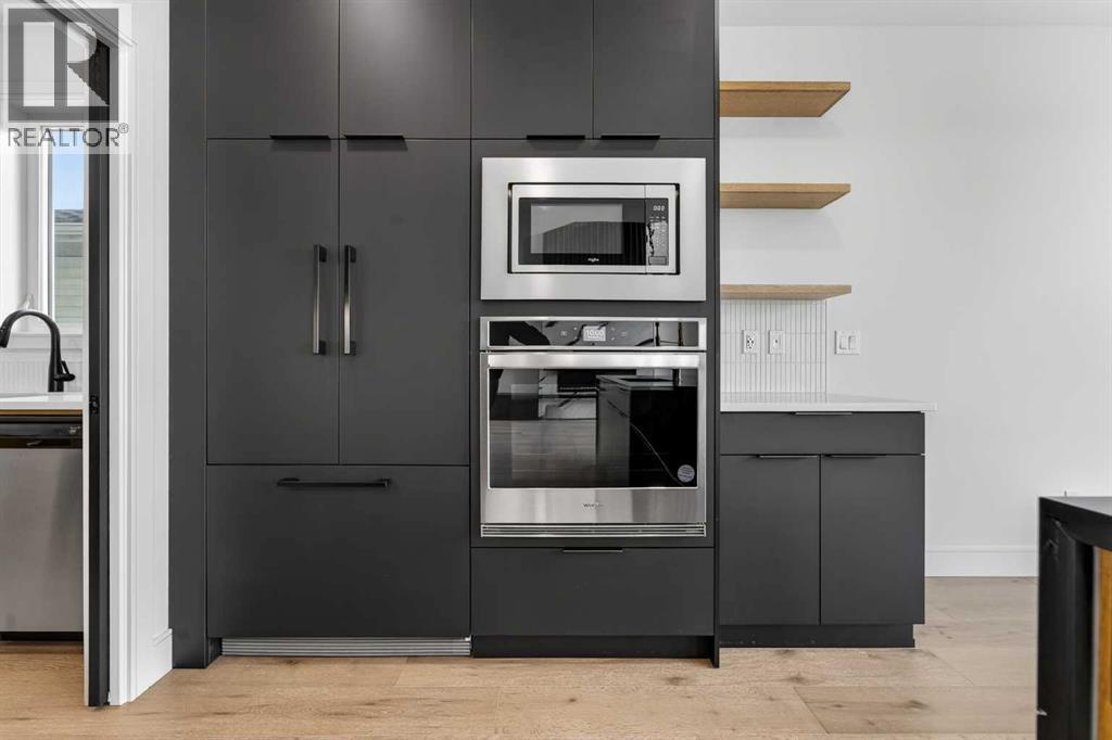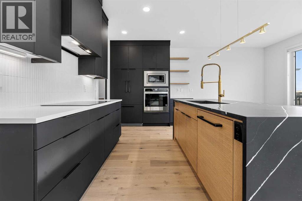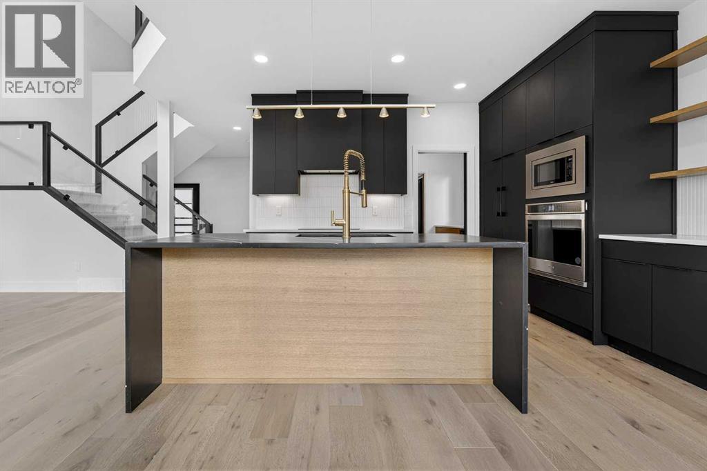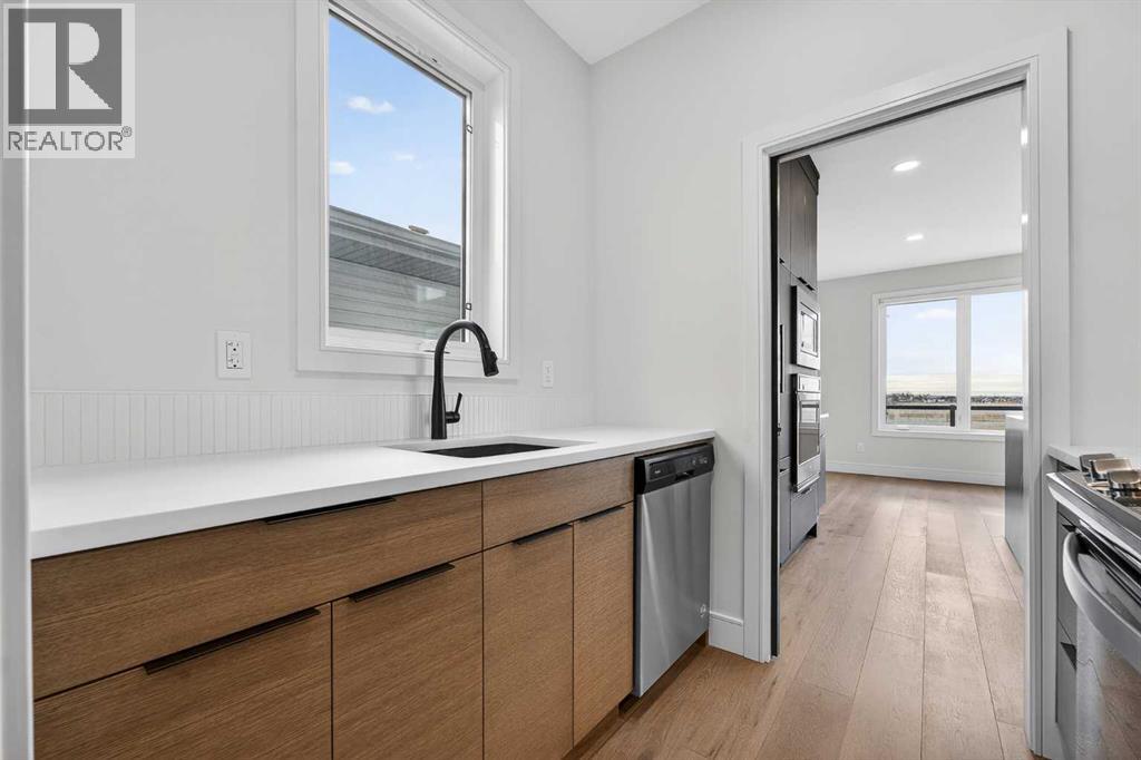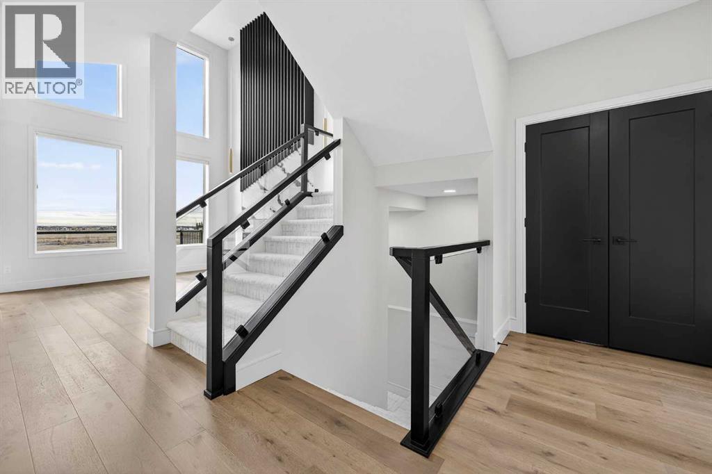 This brand new Stranville Living Master Builder showhome showcases the highly sought-after Perth 2 floor plan and is perfectly positioned in Southbrook with tranquil pond views and quick access to some of Lethbridge’s best amenities. Fully developed with a walkout basement, this home was designed to impress from the moment you step inside, blending bold architectural choices with everyday functionality in a way only a true showhome can.The main floor is anchored by a stunning open-to-above living room, where oversized windows frame the pond behind the home and flood the space with natural light. The fireplace is a true design feature here, set against dramatic vertical detailing and sleek modern finishes that instantly draw your eye upward and emphasize the home’s scale. The kitchen is equally striking, featuring a waterfall matte black island that grounds the space, paired with contrasting cabinetry, statement lighting, and a butler’s pantry complete with a gas range—ideal for both entertaining and keeping the main kitchen pristine. Step out back onto the full-length deck and enjoy uninterrupted pond views, making this space as functional as it is scenic.Upstairs, the second level offers three spacious bedrooms and a large bonus room that works perfectly as a family lounge, media space, or kids’ retreat. The primary bedroom is a standout, with expansive pond views that feel calm and private, and an ensuite that rivals a luxury hotel. Here you’ll find a floating vanity with undermount lighting, a skylight that fills the room with natural light, a standalone soaker tub, and a beautifully finished curbless shower. The walk-in closet is thoughtfully designed to connect directly through to the main floor laundry room, adding a level of convenience that’s both smart and intentional.The fully developed walkout basement continues the home’s versatility, offering two additional bedrooms, a four-piece bathroom, and direct access to the backyard and pond beyond. Whether you’re looking for space for family, guests, or simply want a home that showcases premium design from top to bottom, this Southbrook showhome delivers on every level with views, layout, and finishes that truly set it apart. (31542641)