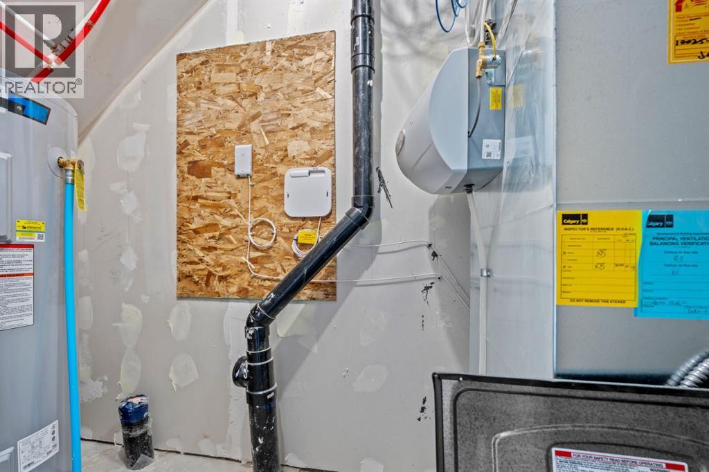 This elegant modern 3-storey townhouse stands out with a thoughtful balance of privacy, smart use of space, featuring three generously sized bedrooms—each with its own ensuite bathroom, making it an excellent fit for families, working professionals, or shared and multigenerational living.The ground level offers a welcoming foyer and a versatile bedroom complete with a private ensuite, ideal as a guest suite, home office, or quiet personal space. The main living level is filled with natural light and designed for everyday comfort and entertaining, showcasing an open-concept layout, oversized windows, and a contemporary kitchen outfitted with stainless steel appliances, modern lighting, and a practical breakfast counter. A convenient powder room and access to a private balcony complete this floor.The upper level features two spacious primary-style bedrooms, both with their own ensuites for added convenience. One of the suites includes a walk-in closet and double vanity, creating a comfortable retreat. A stacked laundry closet on the top floor adds everyday ease.Additional features include a single attached garage, low condo fees, visitor parking, and planned nearby green space. Located with quick access to Stoney Trail, this home offers effortless commuting and easy access to daily amenities. Stylish, functional, and move-in ready—this townhome delivers comfort and flexibility in a highly accessible location. **Photos with furniture are virtually staged. (31542506)