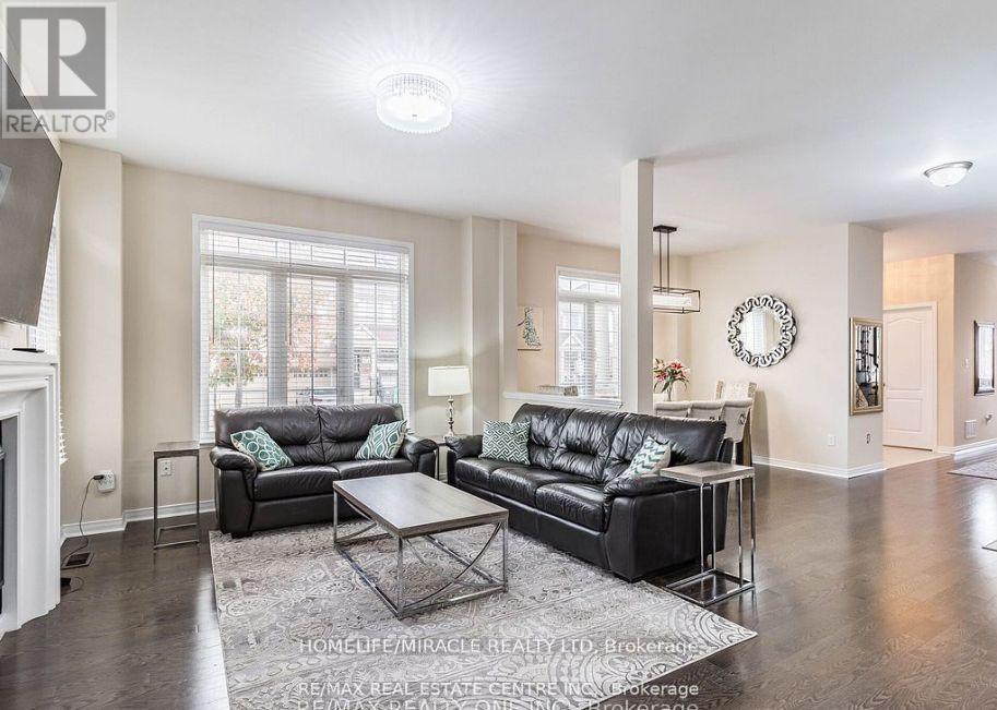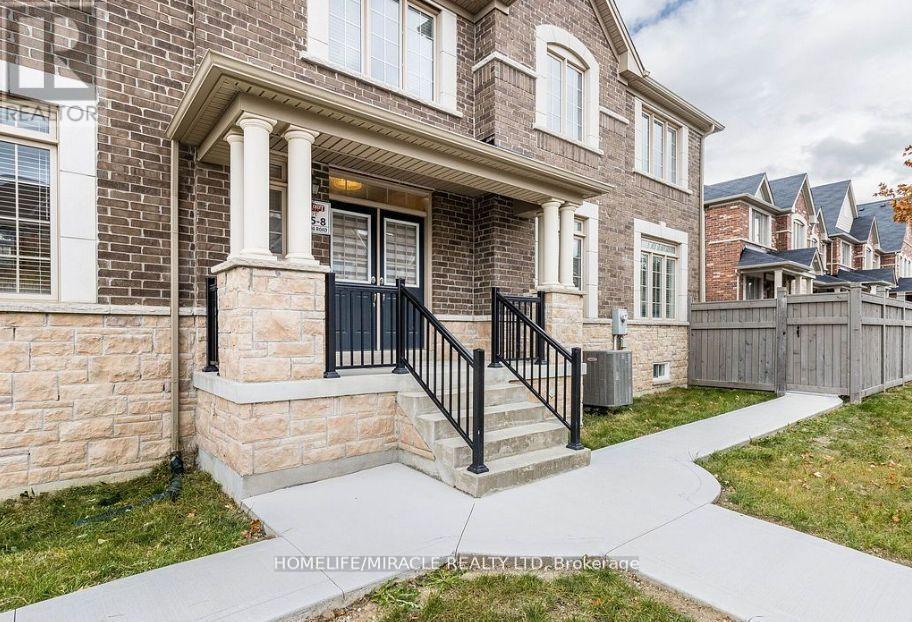 Beautiful 2 Story Freehold Bright Corner Townhouse in Brampton's Prestige neighborhood. Rare Elevation with 4 Bedrooms + Loft makes it feels like a Detached home. Corner Unit So Lots of Natural light and generous Living space! Double Door Entry! Freshly painted! Hardwood Floors! Open Concept Design! 9' ceilings on the main floor with a spacious Living, Family and dining room for entertaining. Executive kitchen layout upgraded with quartz countertops, extended with cabinetry and upgraded tiles ,stainless steel appliances, custom backsplash, spacious eating area with walk out wooden deck. Wood staircase with metal picket railing, gas fireplace in Family Room. Extended driveway with concrete all the way through to backyard. Main floor laundry access from the garage. Master bedroom has generous size walk-in closet. 2 minute walk to parks and schools. Central location close to Schools, Parks, HWY, Bus route, Grocery Stores, Shops and much more! (41969974)