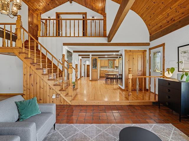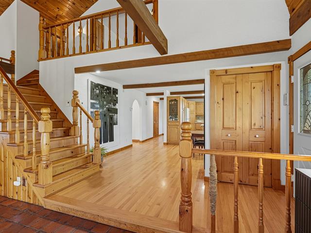 Along the majestic St. Lawrence River, this Canadian-style house reveals a rare art of living. A sandy beach on the river, a direct view of the shipping lane and its impressive passing vessels, a private entrance gate, a newly built workshop, and over 36 acres of agricultural land--all evoke freedom and authenticity. A dense forest, animal enclosures, a pond, fruit trees, and farm buildings create an ideal setting for a self-sufficiency project or simply to enjoy the beauty of nature. An exceptional place--both inspiring, intimate, and peaceful. (44417187)