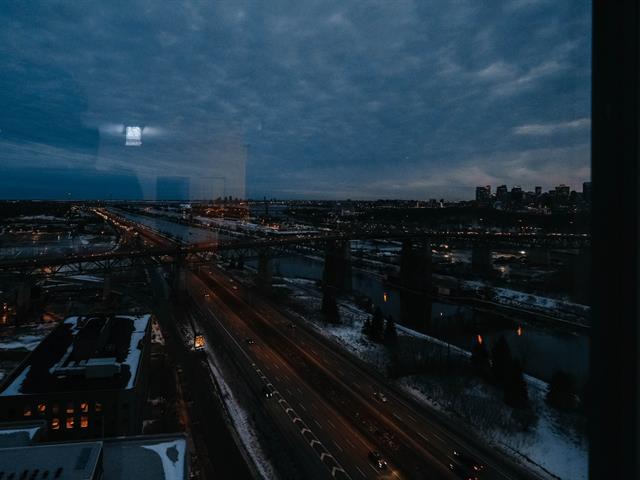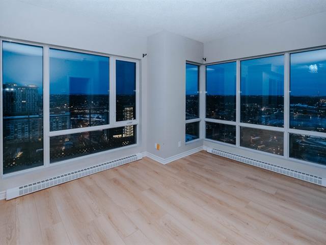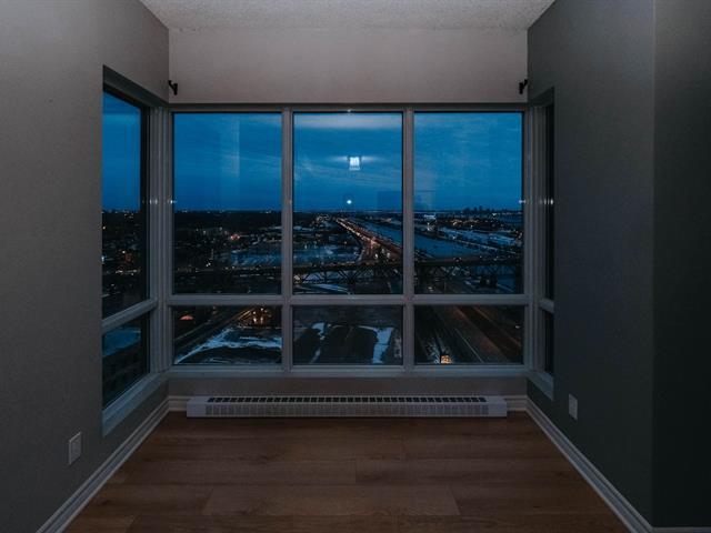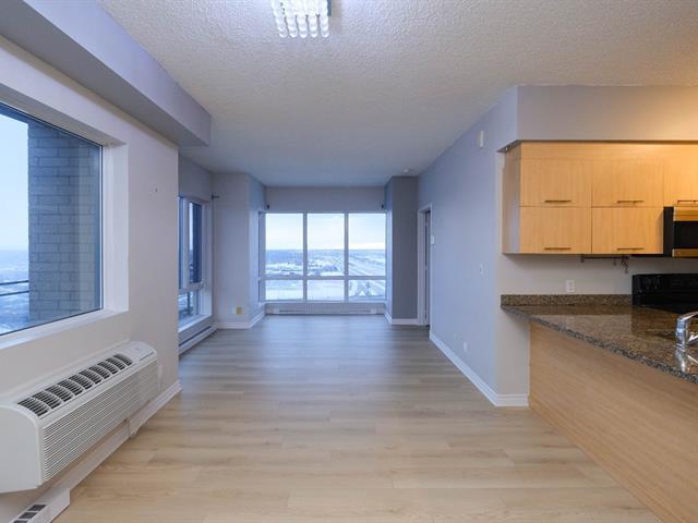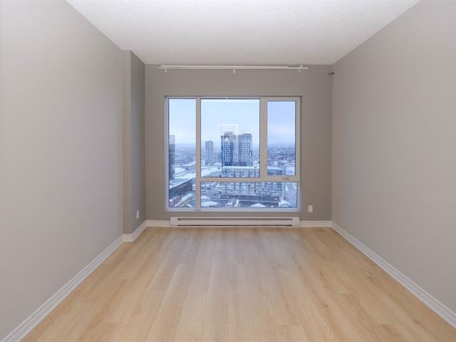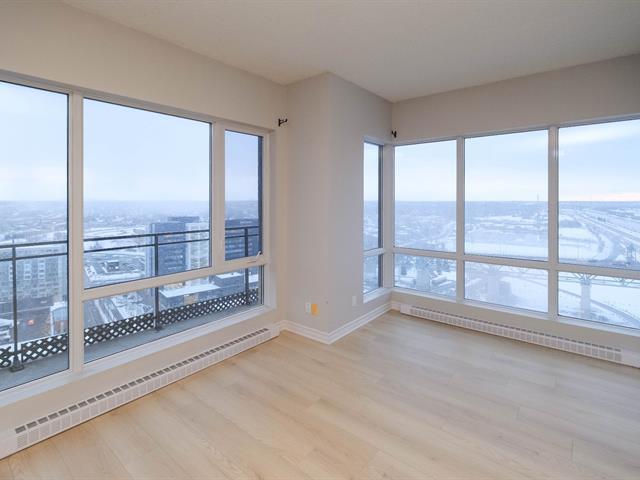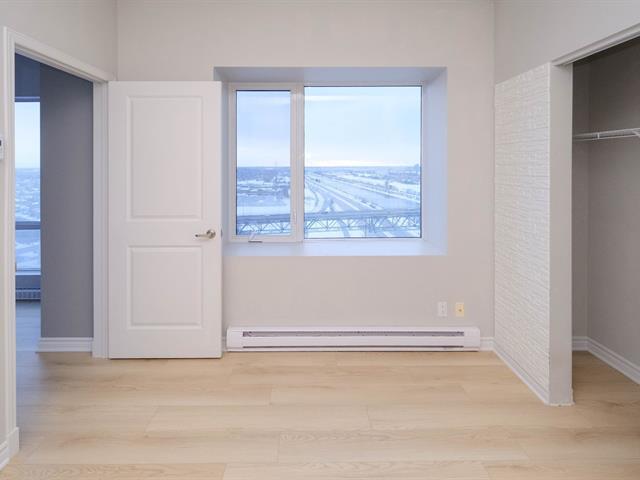 Welcome to Blu Rivage, a prestigious condominium just one minute from Longueuil Metro. Immediate occupancy available. This exceptional south-west facing penthouse corner unit offers spectacular views and abundant natural light. Enjoy a private south-facing terrace overlooking the South Shore, Jacques-Cartier Bridge, and downtown Montréal. Concrete construction ensures superior soundproofing. Includes indoor heated parking and a large storage locker. The 25-storey building features a gym, rooftop landscaped terrace, reception room, guest suite, elevators, and security cameras. (51003763)