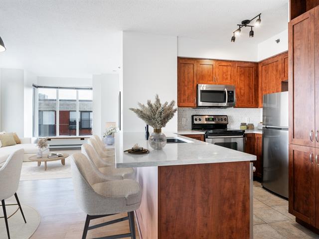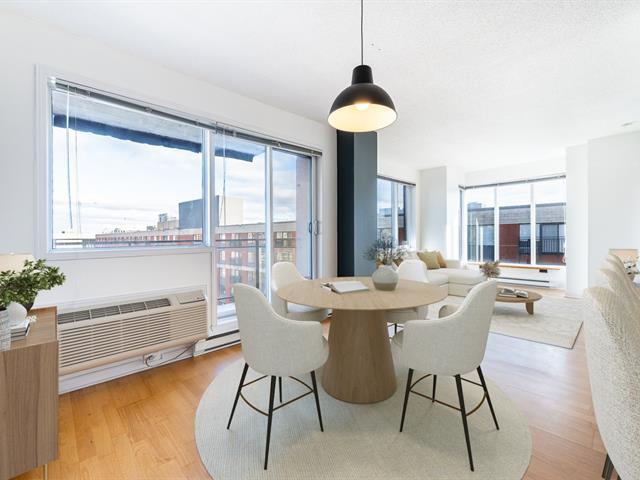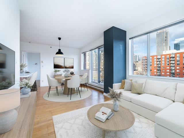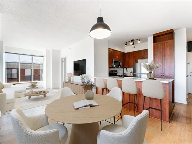 In the heart of downtown, discover this bright corner unit on the 8th floor, filled with natural light and offering a peaceful view of the landscaped inner courtyard. The open living area, extended by a renovated and elegant kitchen, is enhanced by large windows and a warm atmosphere. The two bedrooms, located on opposite sides of the condo, ensure comfort and privacy. Despite its central location, the unit stands out for its remarkable tranquility. Indoor parking available for rent. Close to shops, restaurants, services, and public transit. (52223617)