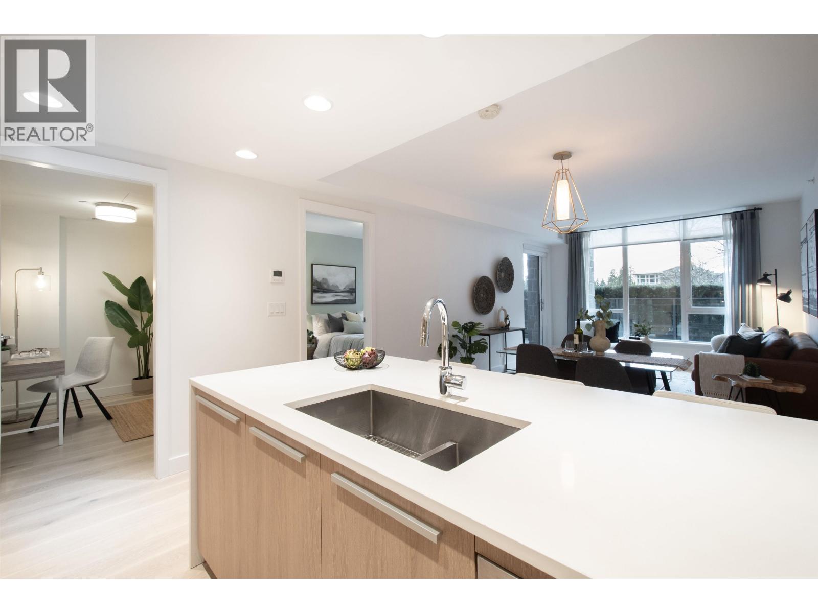 A rare ground-level home designed for everyday living in the heart of Lynn Valley! This 2 bed + den, 2 bath home at the Residences by Bosa offers nearly 1,100 sqft of bright, open-concept living with generous living and dining areas and a well-appointed kitchen featuring a breakfast bar, stainless steel appliances, and gas stove-ideal for entertaining. The primary bedroom is complemented by a spacious ensuite, while the second bedroom and full bathroom are thoughtfully positioned for guests or family. A separate den provides flexibility for a home office or creative use. Enjoy a large, private patio, partially covered and well suited for indoor-outdoor living. Concrete construction delivers radiant in-floor heating and air conditioning for year-round comfort. Includes 2 parking stalls, storage locker, gym access, and a pet friendly community. Perfect for downsizers, professionals, or young families. Walk to Lynn Valley Village shops, cafés, services, parks, trails, and schools. Book your private viewing today. (32345512)
