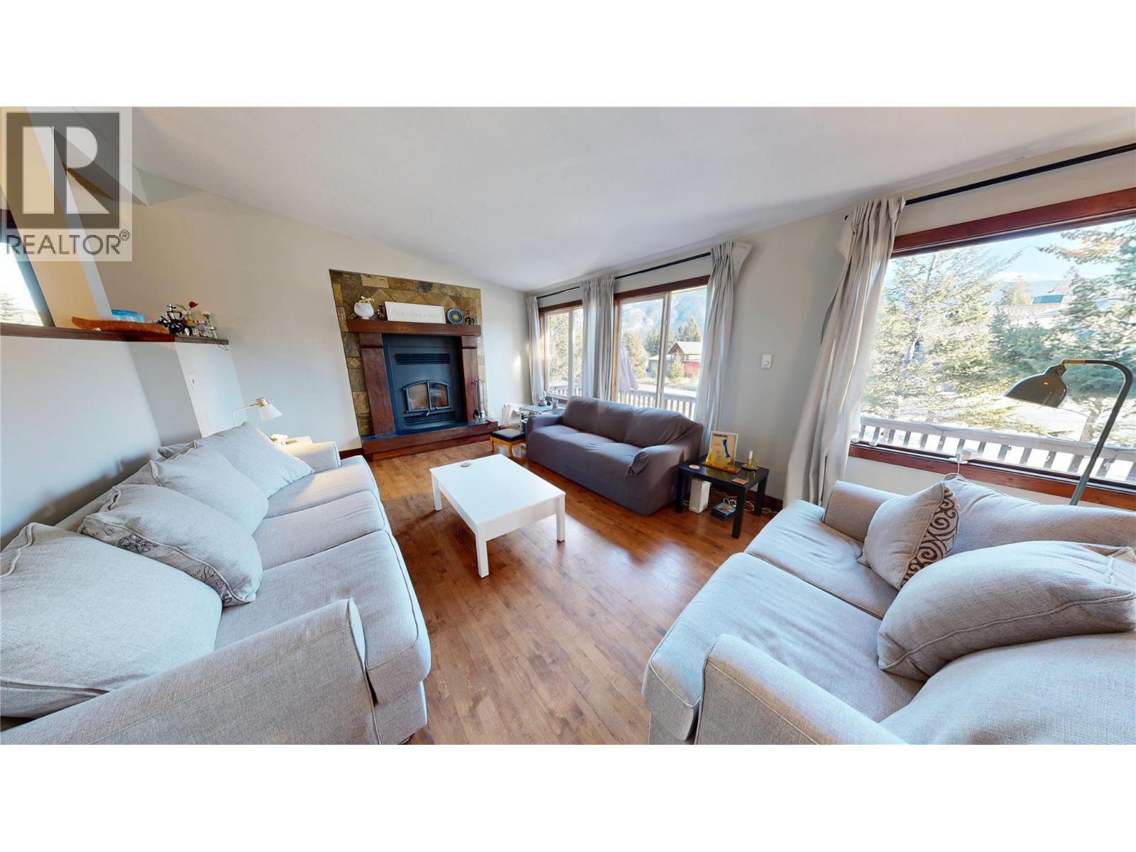 This beautiful residence, located at 6891 Columbia Ridge, offers a harmonious blend of space and comfort across two floors. The home features four bedrooms and two bathrooms and boasts an open-concept design, seamlessly integrating the kitchen, dining and living rooms. The kitchen showcases warm wood cabinetry with lots of counter space that creates a functional and inviting cooking space. The living area is characterized by hardwood flooring, exposed wooden beams, a wood burning fireplace and a half-wall that maintains an open feel while defining separate spaces. All the bedrooms are thoughtfully designed, with two featuring space-saving bunk beds, ideal for children or guests. A standout feature is the expansive wrap around decking and the custom built post and beam covered area, offering breathtaking views of snow-capped mountains and surrounding forests. This outdoor space is perfect for relaxation and entertainment. The property also includes a large two-car garage, providing ample storage or potential for a workshop. The home's location in a serene, mountainous area offers a perfect balance of natural beauty and modern living, making it an ideal retreat for those seeking a harmonious blend of comfort and scenic surroundings. Being located in Columbia Ridge Estates offers community amenities including private beach, dock/community boat moorage, community center, tennis court, soccer pitch, and playground. Call your REALTOR today! (39638383)