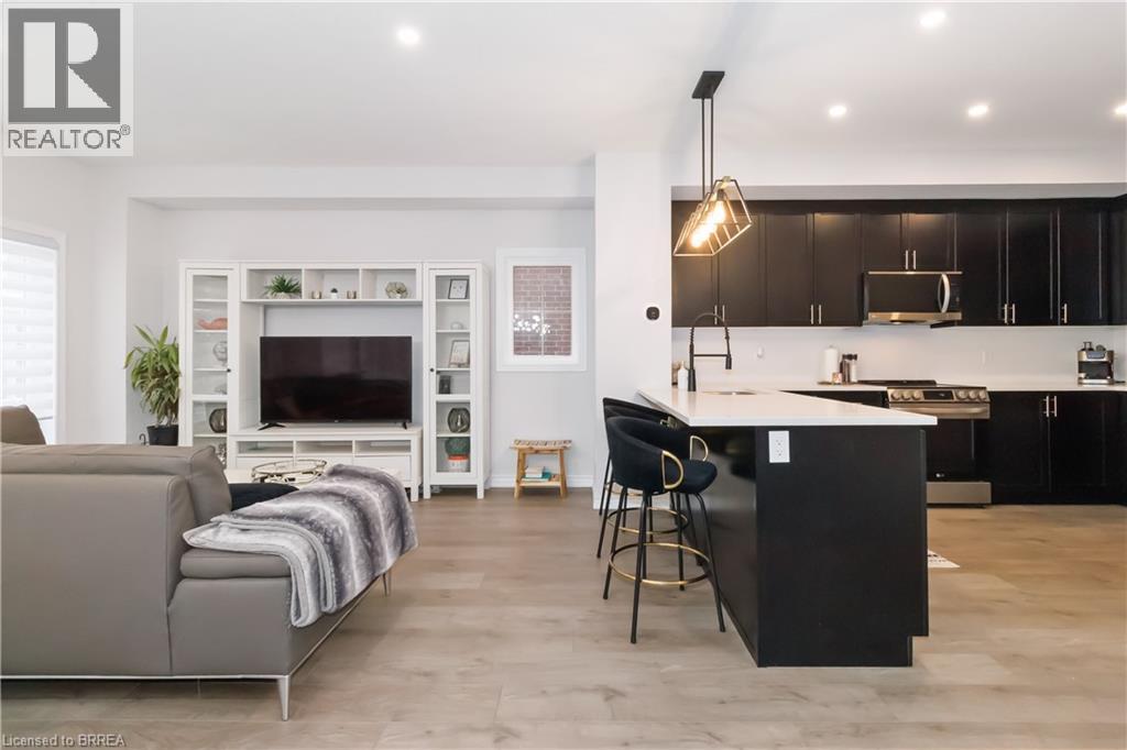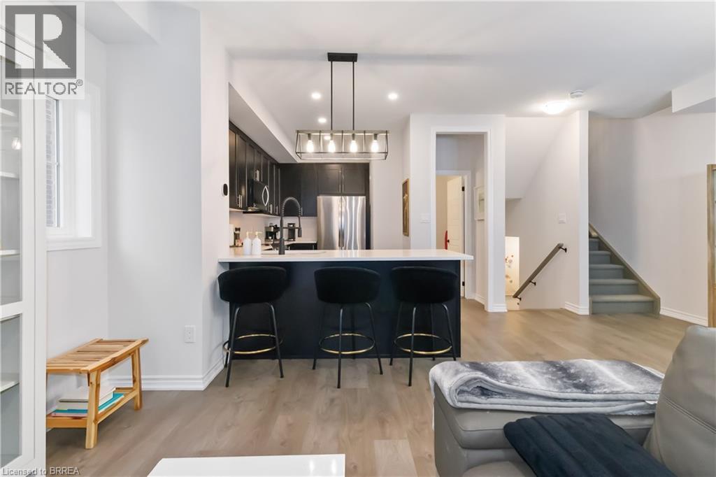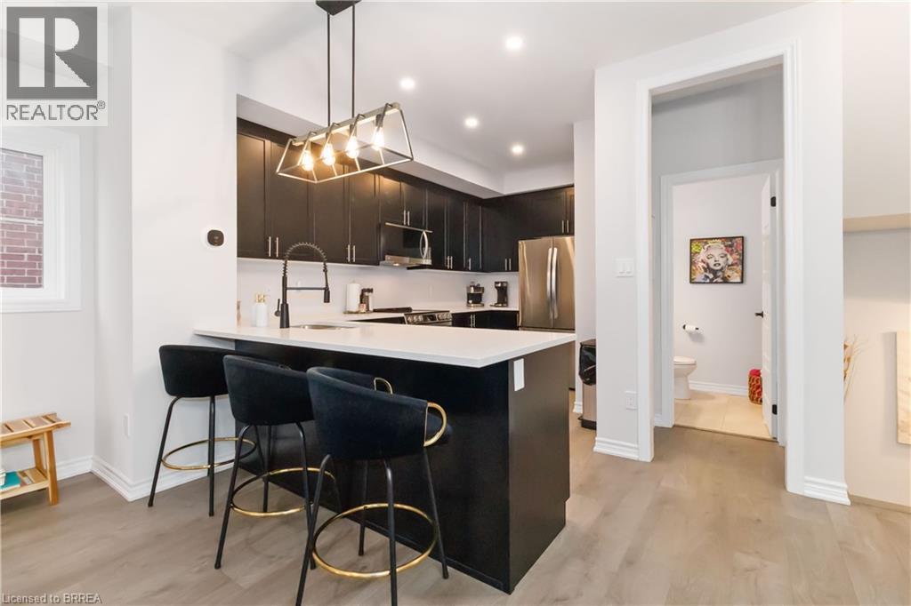 Welcome to this beautifully upgraded end-unit townhome in Brantford’s highly sought-after North End. Offering one of the largest floor plans in the complex, this home features a bright foyer leading to a spacious open-concept main level with seamless living, dining, and kitchen areas—perfect for everyday living and entertaining. The modern kitchen boasts granite countertops, stainless steel appliances, and a large peninsula with seating. Step out through the garden door to a fully covered balcony, ideal for year-round enjoyment. A convenient powder room completes the main floor. Upstairs, you’ll find three generous bedrooms, including a primary suite with walk-in closet and private ensuite, plus an additional full bath and second-floor laundry. Ideally located close to schools, parks, shopping, and amenities, with a new park currently being developed behind the property. A move-in-ready home offering space, comfort, and an excellent North End location. (70059973)
