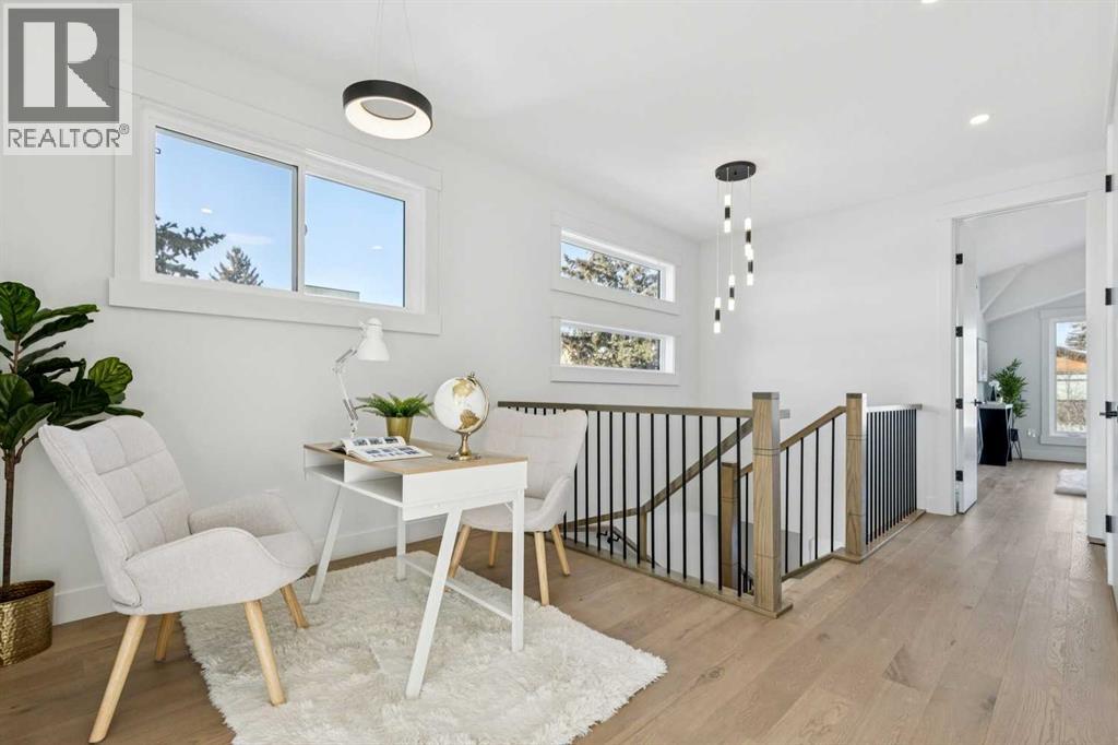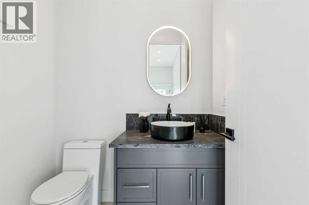 *** SEE THE VIRTUAL TOUR *** Welcome to this stunning brand-new side-by-side duplex located in the desirable community of Banff Trail. With its stylish mixture of Stucco and Hardie board exterior , a concrete walkway leading to the house, along with concrete stairs at both the front and back, a spacious concrete patio in the backyard and composite WPC fence between the two houses. For safe and easy access to the basement through side door, the side of the house is all concrete without any window well on the way. Step inside to find a welcoming foyer that opens into a large dining area. The modern kitchen is equipped with sleek cabinetry, stainless steel Bosch appliances, and a luxurious granite leather island and countertops. The large and spacious living area with a large window overlooking the sunny backyard. The main floor also includes a beautiful powder room and a convenient mudroom leading to the backyard. Upstairs, you'll discover a generously sized master bedroom complete with a walk-in closet and a stunning modern ensuite bathroom featuring a double vanity, standalone tub, tiled floors, quartz countertops, and a beautifully tiled shower. Additionally, the second floor hosts two other spacious bedrooms and a cozy loft, perfect for an office space or a play area for the kids. The laundry room is conveniently located upstairs, alongside the main bathroom, which also boasts a double vanity, tiled floors, and quartz countertops. Hardwood flooring graces the main floor and the hallway of the second floor and the master bedroom. The basement features a separate entrance leading to a legal suite with two bedrooms, a separate furnace, and LVP flooring throughout. This suite includes a full kitchen with quartz countertops and stainless steel appliances, as well as a complete laundry setup, making it an ideal income generator while you enjoy luxurious living upstairs. . In all vanities, LED mirrors are installed with 3 color temperatures selection (3000-4000 and 5000) , all dimmable to 10% of the normal light and anti fog functionality. Some of the ceiling lights such as master bedroom have 3 color temperature option. Additional highlights include a double detached garage, 10-foot ceilings on the main floor and 9-foot ceilings on the second floor and basement, two furnaces, a 75-gallon hot water tank, rough-ins for AC and central vacuum, soundproof insulation, soundbar and fire rated drywall on the basement ceiling and a soundbar in the party wall. (31540362)