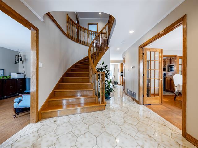 A beautiful single-family detached home filled with natural light, set in a green and peaceful environment, ideally located in the prestigious R-section of Brossard. Numerous recent renovations have been completed . The property is situated in a quiet and relaxing neighborhood, with immediate access to bike paths and public transportation. Conveniently located close to all amenities, schools, highways, and shopping centers. Just 2 minutes from the Champlain Bridge and approximately 10 minutes from downtown Montréal. (55160237)