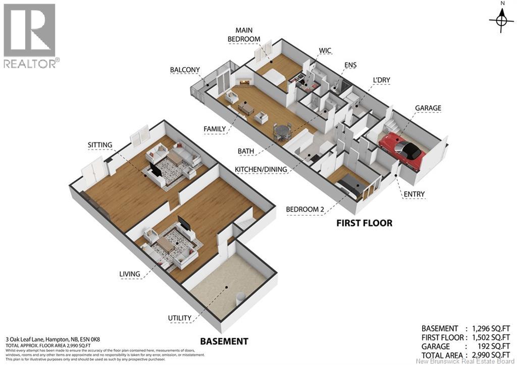 Welcome to 3 Oak Leaf Lane, a beautifully maintained 2-bedroom, 2-bath garden home with a single attached garage, located in the desirable and friendly community of Hampton, NB. This spacious home offers stunning sunset and horizon views, an inviting open concept kitchen, dining and living room, gleaming hardwood floors, warm maple cabinetry, and the comfort of two owned heat pumps. The generous primary bedroom also features a glorious view, a large ensuite and walk in closet, while a second bedroom or home office, full bath, and laundry add everyday convenience on the main level. The walk-out basement is partially finished and already plumbed for an additional bathroom, making it easy to customize to your needs. Ideally located 2 minutes from the golf course and all amenities, and with a monthly fee of $160 covering snow removal, lawn maintenance, and water, this is low-maintenance living at its finest. (29401860)