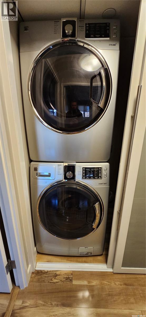Convenient, luxurious downtown living in The Terrace condo building. Walk to the river, the U of S, & downtown amenities. This immaculate 2 bedroom / 2 bath 1076 sq ft condo is light and bright with a wall of floor to ceiling east facing windows. The new kitchen is sure to impress with quality white cabinetry, granite countertops, undermount double sinks, stainless steel appliances, updated lighting, and a huge island for food prep or entertaining. Attention paid throughout with customized closets, pantry, and storage room to maximize storage space. Boiler & forced air heat & central air conditioning keep you comfortable. Indoor heated parking. The Terrace building amenities include a swimming pool, hot tub, sauna, 4th floor community room & outdoor patio/BBQ area, a guest suite + a roof top patio for 22nd floor panoramic views. This unit and building are definitely worth a look! (29296893)