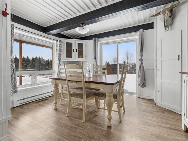 Charmante propriété située dans un environnement paisible et boisé, offrant un vaste terrain de plus de 11 800 m². La maison propose une aire de vie conviviale, une cuisine fonctionnelle avec îlot central, une salle à manger lumineuse et un salon chaleureux. Le sous-sol pleine hauteur offre un grand espace de rangement et d'atelier. Une grange sur le terrain ajoute un potentiel intéressant pour l'entreposage ou des projets personnels. Idéal pour les amateurs de tranquillité et de nature, tout en demeurant accessible. (40611660)