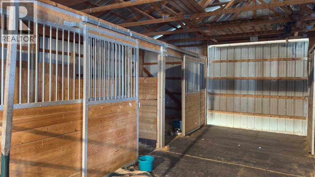 Prairie Panorama. Stunning sunrise and sunset views from a gentle rise on 50.92 acres bordered by an irrigation canal. The 1284 sq ft bright open concept bungalow offers 3 bedrooms and 2 bathrooms upstairs, including an ensuite with a two-person jetted tub. A gas-fireplace living room and a combined kitchen/dining area open to both front and back decks. The fully finished walk out basement adds a large family room, an additional bedroom, an office, a full bathroom, and a generous storage room. The landscaped yard features an irrigation system, mature fruit tress and berry bushes, terraced beds, and a water feature. Outbuildings include a 30 X 40 sq ft Quonset with water hydrant, 4 box stalls with mats, and a concrete-front shop area. The land is fenced and cross fenced with two automatic waterers, two corrals, a round pen, three horse shelters, and three storage sheds, one used as a tack shed beside the hitching post. Annual lease income of approximately $4075. An additional 5.67 WID acres are part of the fenced pasture. The pasture includes a fenced dugout suitable for stocking trout, and parts are on hand to repair the aerating windmill. A man- gate connects the front pasture to the installed culvert under the canal road, with a trenched hose leading to the yard for future irrigation expansion. Ride, hike, bike out along the canal. A natural gas Kohler generator automatically provides whole-property back up power. Subdivision potential exists. Location advantages: 10 minutes to Strathmore, 13 minutes to De Havilland field, 30 minutes to Calgary. (31551504)