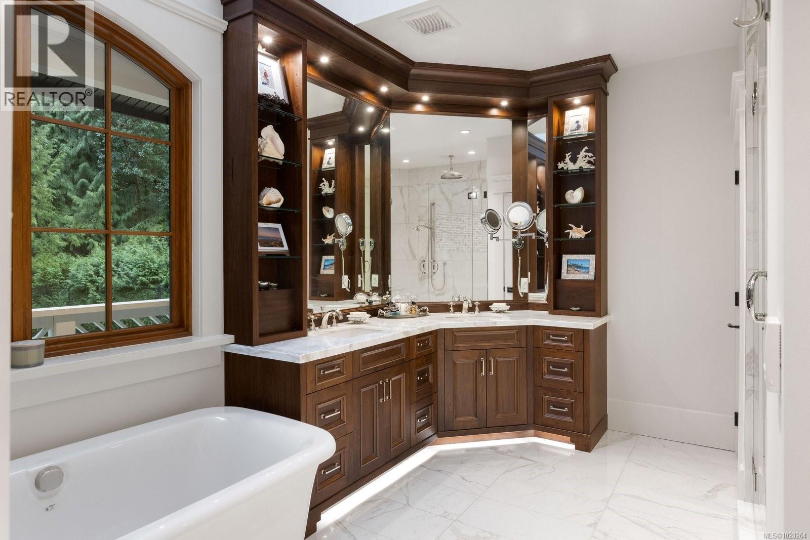Private 3.31-acre Highlands estate offering rare privacy, flexibility, and income just 25 minutes from downtown Victoria and only 10 minutes to major shopping, restaurants, and everyday amenities. Built in 2018 to an exceptional standard, this nearly 7,600 sq ft custom home features walnut hardwood floors, heated floors, multiple fireplaces, and a chef’s kitchen with Wolf, Sub-Zero, and Miele appliances. Designed for multi-generational living or hosting, the property includes three fully self-contained suites (1bd in the main home, 1bd over the workshop, and a 2bd carriage suite) generating approximately $72,000 annually—ideal for extended family, guests, or offsetting ownership costs. Parking for 20+ vehicles, remaining new home warranty, and zoning flexibility complete this private, turn-key estate where lifestyle, land, and long-term value align (30296893)