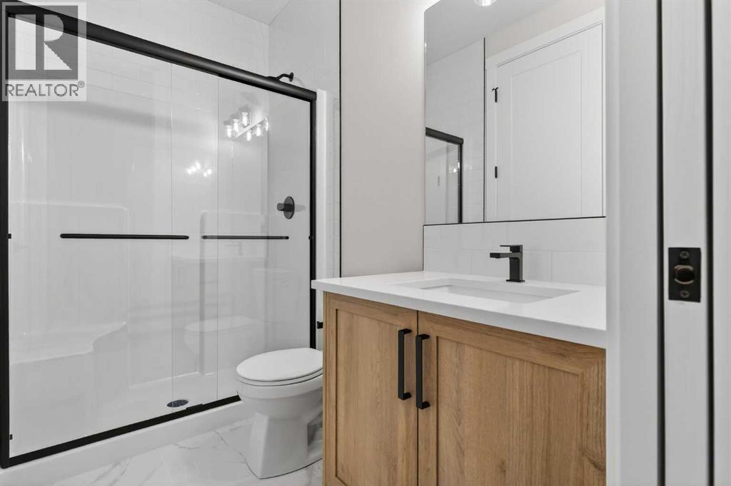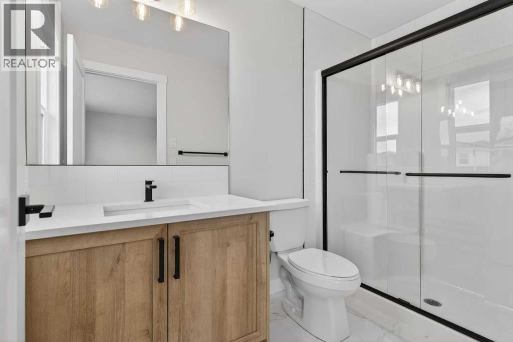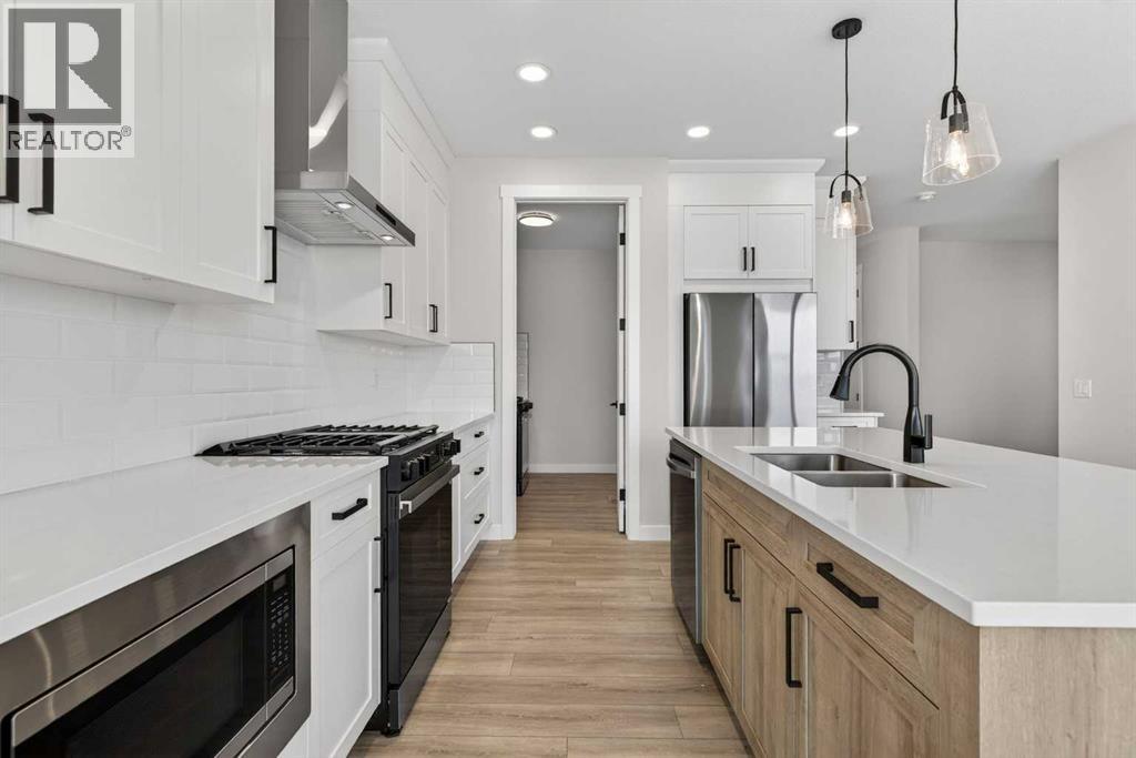 Welcome to 298 Kinniburgh Loop – 3,807 SQFT of living space on a beautiful walkout lot with incredible mountain views. This Golden Homes masterpiece offers 6–7 bedrooms, 5 full bathrooms, double primary, finished basement, wet bar, side entrance, spice kitchen, and exceptional craftsmanship throughout.As you enter, you’re greeted by a grand open-to-below foyer, setting the tone for the luxury and spaciousness found in every corner of this home. The main floor features a full bedroom with direct access to a 3-piece bathroom with a standing shower — perfect for guests or multigenerational living. You’ll also find a office, which can easily serve as another bedroom if needed.At the rear of the home, the layout opens into a bright and inviting living space, featuring a large living room with an electric fireplace and oversized triple-pane windows that flood the space with natural light. The gourmet kitchen is a showstopper, equipped with high-end Samsung stainless steel appliances, quartz countertops, full-height custom cabinets, black hardware, an oversized island, and premium finishes throughout. For everyday convenience, the home also includes a fully equipped spice kitchen.Upstairs, you’ll find two primary bedrooms, each with its own ensuite and walk-in closet. The main primary suite offers a large 5-piece ensuite with an enclosed toilet, full wall tile, and a spacious walk-in closet with upgraded MDF shelving. The second primary bedroom includes a 3-piece ensuite with a standing shower and its own walk-in closet. A third generously sized bedroom also features a walk-in closet and easy access to a nearby 4-piece bathroom. The upper floor is completed with a large bonus room and a full laundry room, finished with quartz countertops, a sink, and tiled flooring.In the fully finished basement, you will find two additional bedrooms, a 3-piece bathroom with a standing shower, a large rec room, and a wet bar with plenty of cabinets, a sink, and a fridge. Walk out of yo ur basement to a concrete patio, with an already built deck above, to enjoy the yard and mountain views. This home backs onto a pond with lots of green space and a wide range of walking and bike paths.As with all Golden Homes builds, this home comes fully loaded with premium standards, including landscaping with full lot grading and loaming, sod to the side entry, and a front-yard tree; true 9' ceilings on both the main floor and basement; tall 8' doors on the main floor; a side entrance; a mosaic tile shower base; oversized triple-pane windows; matte black iron spindle railings and hardware; upgraded MDF shelving; upgraded carpet underlay; tankless hot water heater; smart home features and appliances; oversized quartz kitchen island; gas line to the deck; full-height painted kitchen cabinets; a complete HRV system; an electric fireplace; full-height wall tile in the ensuite shower; metal soft-close drawers; solar panel rough-in; tile flooring in all full bathrooms and laundry room; and gas line to deck. (31554904)
